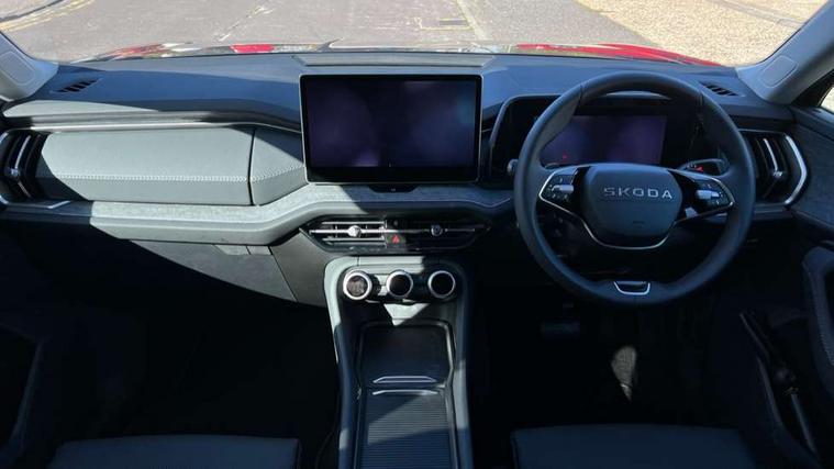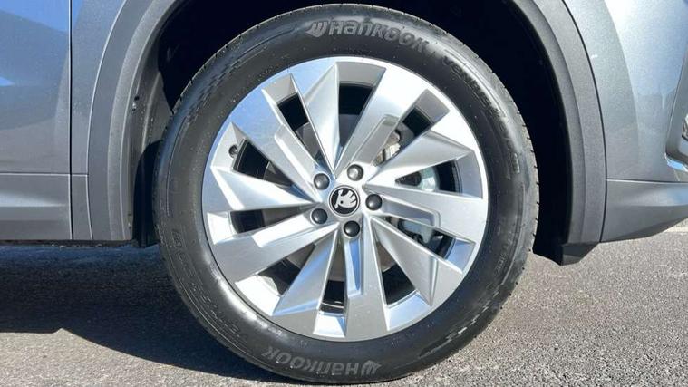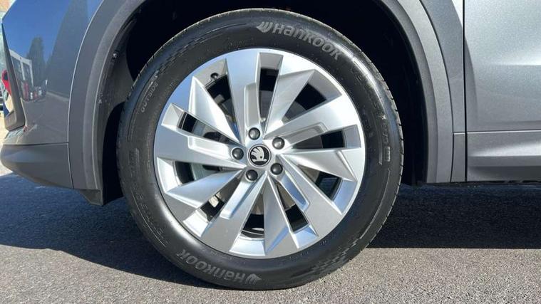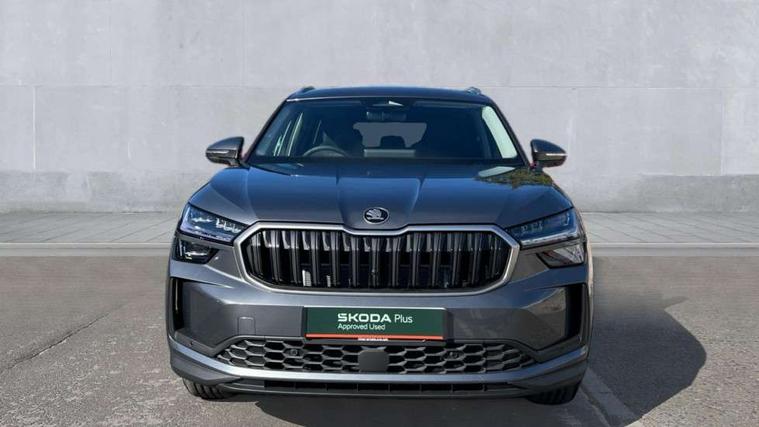13" satellite navigation touchscreen display, Blind spot detection with door exit warning, Bluetooth system, ChatGPT functionality, Driver alert - Fatigue and drowsiness monitor, Dry display cleaner, Emergency call, Front and rear parking sensors, Front cross traffic assist, Lane assist, PAS, Rear traffic assist, Tailgate unlocking from outside, Traffic sign recognition, USB C Port x 2 in front centre console, Virtual Cockpit - 10.25" digital display, Voice control system, Wireless charging for two smartphones (15W) with cooling function, Wireless SmartLink for Apple CarPlay and Android Auto, Stop/start function, 2x USB-C in the rear, DAB Digital radio, Aero front windscreen wipers with intermittent function, Auto dimming rear view mirror, AWL (all weather lighting) and all weather light with cornering function, Black wheel arch surrounds, Body colour bumpers, Body colour door mirrors and handles, Cornering light and poor weather light, Electric folding /adjustable/separted heated/folding door mirrors, auto dimming with boarding sports and memory function, Electric front and rear windows, Exterior black decorative trims, Heat insulating glass in windshield, Heated rear window, Ice scraper in fuel tank cap, Invisible tailpipe, LED daytime running lights, LED third brake light in rear spoiler, Light assistant with automatic headlight control and coming home feature, Logo projection in door mirrors, Privacy glass, Rear roof spoiler, Rear side wing doors, Rear window wiper, Red decorative strip between rear LED lights, Safety reflectors on front and rear doors, Unique dark chrome design logo on alloy wheels, Window control switches with black trim, Windscreen wipers with rain sensor, Without engine designation, 1.5l bottle holder points in all door, 1x centre rear reading light, 2 seat bench in 3rd row, 3 configurable smart dials with 32mm coloured display, 3 seat bench in 2nd row, 4 foldable roof handles with rear coat hooks, Ambient interior lighting - Dashboard, front-door stowage compartments, front and rear door panels and footwell lighting, Automatic gear selector on steering column, Chrome interior door handles, Driver/front passenger reading lights, Fabric headlining, Fixed bench 40:60:40 split folding backrests, Front and rear floor mats, Front centre armrest with jumbo box storage compartment, cup holder and 12V socket, Height adjustable front headrests, Isofix child seat fittings in outer middle row rear seats and front passenger with top tether, Manually adjustable steering column, Pollen filter, Rear centre armrest with cupholders, Rear seat boot backrest release, Single front passenger seat, Skoda lettering on steering wheel, Storage pocket including mobile phone pockets on the backs of the front seats, Sunvisors with illuminated vanity mirrors, Three rear height adjustable headrests, Ticket holder on A Pillar, Tri zone climate control, Umbrella in door panel x1 made from sustainable materials, Upper and lower glovebox with card holder and coin compartment, USB C port by rear view mirror for charging only (15W), Exterior styling pack - Kodiaq, Auto door release and activation of warning lights in the event of an accident, Driver and front passenger airbag with knee airbag and front passenger airbag deactivation, Electric child locks, Electronic parking brake, ESC (incl. ABS+EMD+MSR+ASR+EDL+HBA+DSR+RBS+ESBS+MCB+TSA+XDS), Front assist with braking reaction to vehicles, pedestrians and cyclists, Front disc brakes, Fuel cut off safety device, Height adjustable front 3 point seatbelts + pretensioners, Hill hold assist, Junction assist with automatic emergency braking, Rear disc brakes, Safety vest holder in door, Seat belt reminder for all seats, Three point rear seat belts, Two tone horn, Tyre pressure monitor, Anti-theft wheel bolts, Immobiliser, Remote central locking with 2 keys,