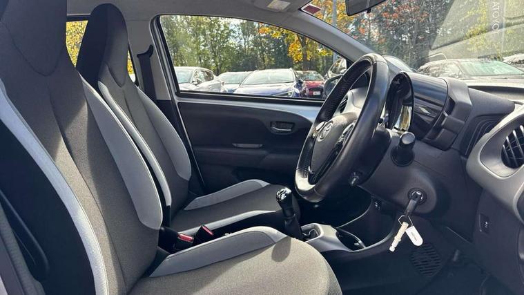 Bluetooth system, Digital clock, Electric power steering, Fuel indicator with low level warning, Lights on warning, Speed limiter, Tachometer, Vehicle Stability Control (VSC), 4 speakers, Auxiliary input socket, DAB Digital radio, Stereo radio, USB connection, 2 speed wipers/variable intermittent/mist function, Black front X, Body colour bumpers, Body colour door handles, Body colour door mirrors, Carbon rear diffuser, Electric adjustable door mirrors, Electric front windows, Green tinted glass, Headlamp levelling, Heated door mirrors, Heated rear windscreen, LED daytime running lights, Rear spoiler, Rear window demister, Rear wiper, Roof mounted aerial, 12V Accessory socket, 3 spoke leather steering wheel, 50/50 split folding rear seat, Air conditioning, Air recirculation system, Centre console storage, Chrome insert to gearknob, Chrome interior door handles, Driver and passenger sunvisors, Driver's seat height adjuster, Driver/passenger seat recline/slide adjust, Driver/passenger vanity mirrors with covers, Front and rear door pockets, Front cupholder, Front map reading lights, Gleam cloth upholstery, Glovebox, Height adjustable front head restraints, Isofix system on outer rear seats, Leather gear knob, Pollen filter, Rear cupholders, Rear headrests, Steering wheel mounted radio/phone controls, Stepless tilt adjustable steering column, Storage bins on all doors, Tonneau cover, ABS, Driver and passenger airbags, ESP, Fasten seatbelt reminder, Front side airbags, Height adjustable front seatbelts with pre-tensioners and load limiters, Hill start assist, Passenger airbag deactivate switch, Rear child proof door locks, Side curtain airbags, Tyre pressure warning, Engine immobiliser, Lockable fuel cap, Remote central locking, Grey dashboard trim, Tyre repair kit,