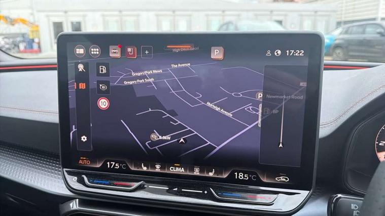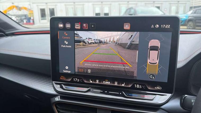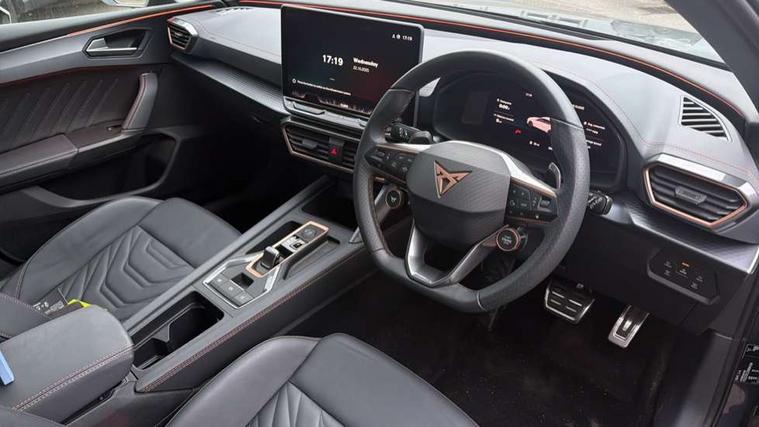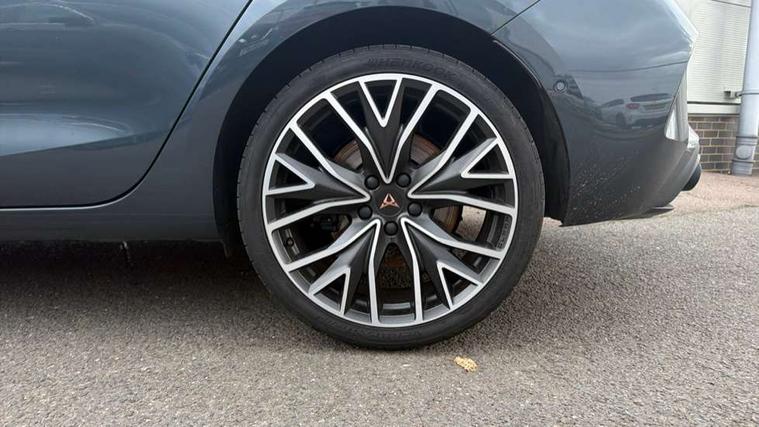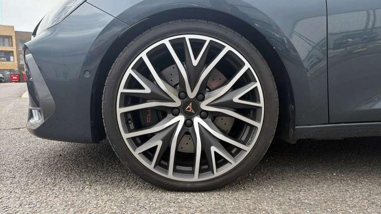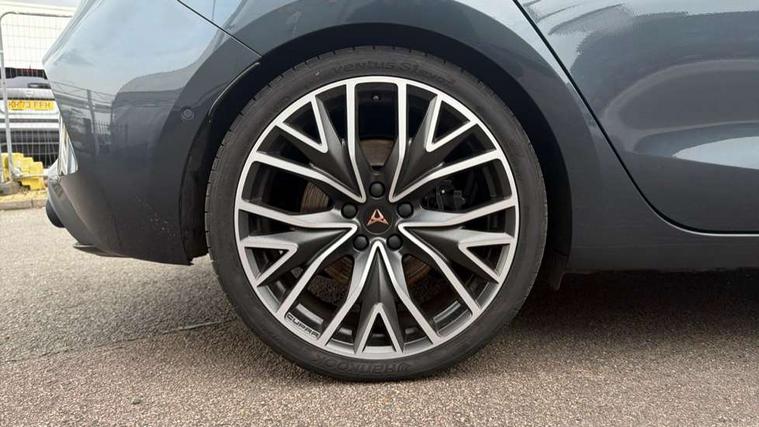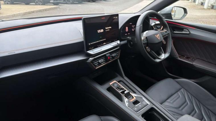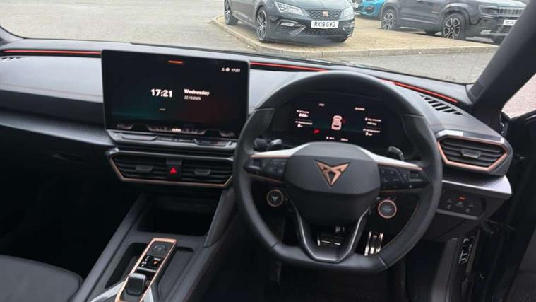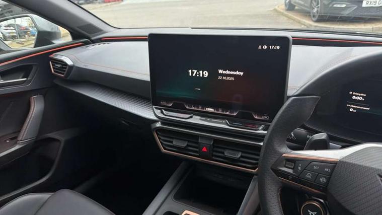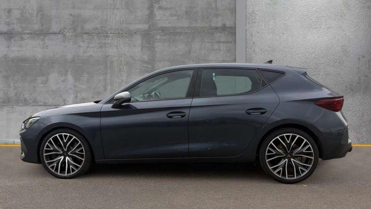 Adaptive cruise control with follow-to-stop and speed limiter, CUPRA drive profile selection with (Comfort/Sport/Individual), throttle response and gearshift mode, Digital cockpit, Dynamic road sign display, E-call, Four x USB Type C ports (2 in front and 2 in rear), Front and rear parking sensors, Front assist with forward collision warning braking reaction to vehicles, pedestrians and cyclists, Full link smartphone integration with Mirror Link, wireless Apple CarPlay and wired Google Android Auto, Intelligent park assist, Lane change assist with emergency assist, Lockable tailgate, Rear view camera, RPM, trip computer, outside temp gauge, instrument light brightness, low fuel warning light, lights on reminder, gearshift indicator, Service interval indicator, Side and exit assist, Start/stop system with regenerative braking, Wireless phone charger, Auxiliary input socket, Auto dimming rear view mirror, Body colour door handles, Body coloured bumpers, Cupra sports bumpers, Dark tinted rear windows, Electric front/rear windows, Electrically adjustable, heated and folding door mirrors, High beam assist, LED front fog lamps with cornering function, LED rear fog lamp, Matrix LED Headlights with variable light distribution, Matrix Beam and Dynamic headlight range control, Rain sensing wipers, Rear side wing doors, Rear wash/wipe, Separate daytime running light with automatic headlight control and coming home feature, Third brake light, Welcome light with logo projector in door mirrors, 12v power supply in centre console, 3 seat bench in 2nd row, 5 headrests, 60/40 split rear bench seat with armrest, Ambient lighting (glovebox, footwell, ambient lighting multicoloured), Black headlining, Cupra sports pedals, CUPRA Supersports, heated steering wheel with satellite buttons, Electrically adjustable driver seat and lumbar support with memory function + manually adjustable passenger seat, Folding boot cover, Front and rear reading lights X 4, Front centre armrest, Heated front seats, Height/reach adjust steering wheel, Illuminated interior front door sills, Interior wraparound lighting, ISOFIX points in outer rear seats with top tether anchorage points, Leather upholstery, Single front passenger seat, Storage pockets on rear of front seats, Sunvisors with illuminated mirror, Three zone climate control, Dynamic and comfort pack - Leon Cupra, Media system plus with 12.9" display + navigation pack - Leon Cupra, 3 point seatbelts on all rear seats, ABS, Brake control system - ESC and brake booster, Child proof door locks, Cupra black brake calipers, Driver and front passenger airbags with front passenger airbag de-activation, front side and curtain airbags, Electronic parking brake, Hill hold control, Pre-crash front and rear seat belt tensioner, window closure and hazard lights, Rear disc brakes, Seat belt reminder for front and rear seats, Tiredness recognition system, Tyre pressure monitoring system, Anti theft alarm system with interior monitoring in cab, backup horn and towing protection, KESSY Advanced - Keyless start, keyless entry, Locking wheel bolts, Chrome and copper interior detailing, 19" Mistral machined R black and silver alloy wheel with 91Y tyres, Breakdown kit, Tool kit,