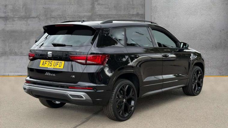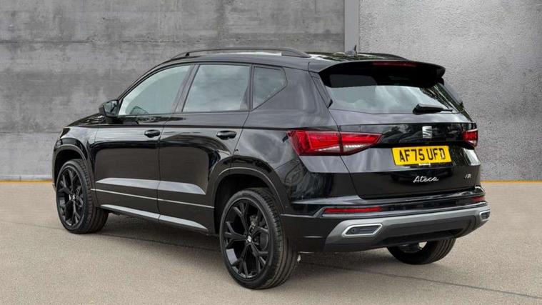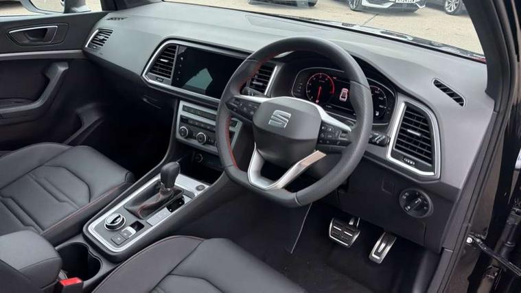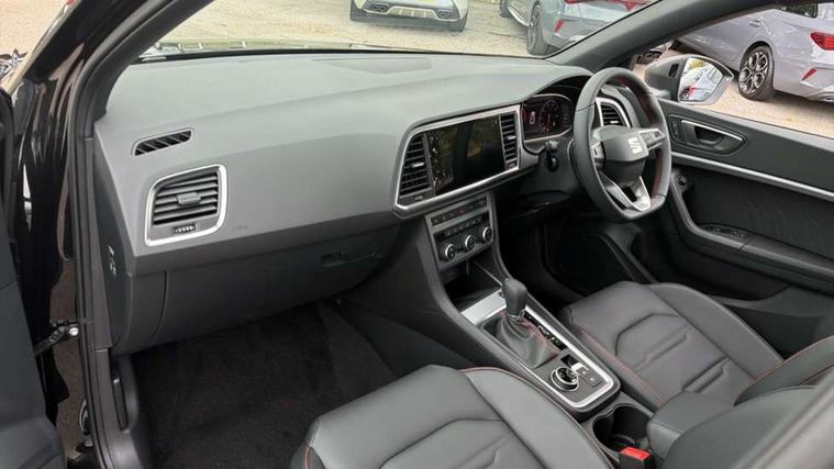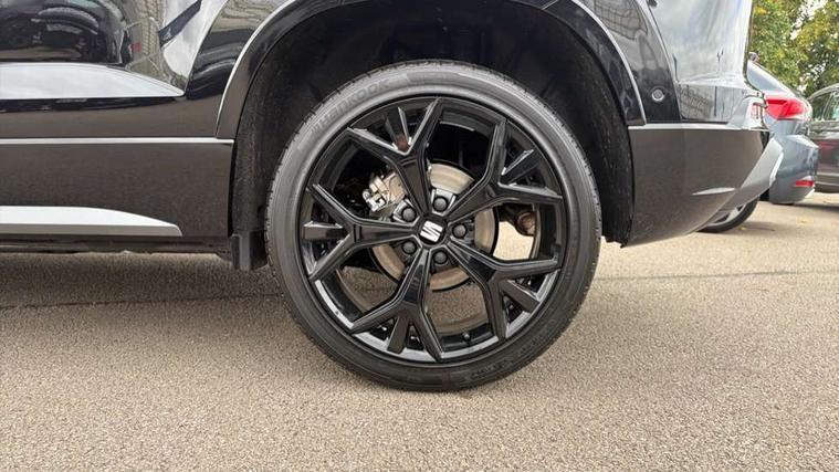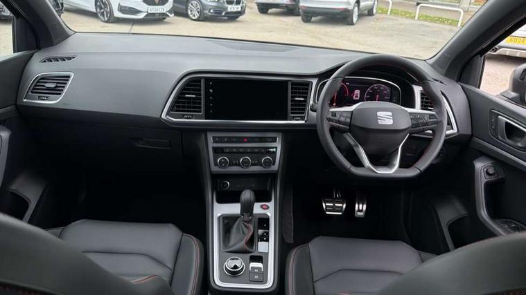 10" Digital cockpit, Bluetooth audio streaming with handsfree system, E-call, Electric tailgate with virtual pedal, Outside temperature gauge, Progressive power assisted steering, SEAT drive profile with driving experience button - Normal, Sport, Eco and Individual mode, gearshift, steering and throttle response, Self parking functionality (includes front and rear parking sensors), Speed limiter, Start/stop system, Top view camera with rear view camera, Trip computer, wired and wireless full link smartphone integration, Wireless phone charger, Steering wheel mounted audio/phone controls, Black roof rails, Black side window trim, Body colour bumpers, Body coloured wheel arch surrounds, Chrome front grille frame, Dark tinted rear windows, Daytime running lights, Door mirrors with welcome light silhouette, Dynamic headlight range control with self adjusting whilst driving, Electric adjustable/heated/folding door mirrors, Front and rear electric windows, Illuminated aluminium front door sill, LED 3rd brake light, LED headlamps with lens and LED front fog lamps with cornering function, LED rear tail lights with dynamic indicators, Rear exhaust tailpipe, Rear fog lights, Rear side wing doors, Rear spoiler, Rear wash/wipe, Variable front intermittent wipers, 12v socket in front, 3 seat bench in 2nd row, 60/40 split folding rear seat, Aluminium pedals, Black greenhouse interior roof, Dual zone climate control, Electric adjustable driver seat with memory function, Front and rear head restraints, Front centre armrest, Front seat back storage pockets, Heated front seats, Height adjustable passenger seats with lumbar adjustment, ISOFIX points in outer rear seats with top tether anchorage points, Leather sports steering wheel and gear knob, Leather upholstery with front comfort seats, Rear armrest and easy back seat release mechanism from boot, Single front passenger seat, Steering wheel mounted gearshift paddles, Convenience pack - Ateca, Interior lighting pack - Ateca, Navigation system pack with DAB - Ateca, Safety and driving pack (L) - Ateca, Safety and driving pack with attention and drowsiness assist - Ateca, 3x3 point rear seatbelts, ABS, Traction control system (TCS), Electronic stability control (ESC) and Electronic differential lock system (XDS), Airbags - Driver and front passenger airbag with deactivation, front side, two curtain and driver's knee airbags, Electric parking brake with auto hold function, Front and rear seatbelt reminder, Hill hold control, Manual rear child locks, Single tone horn, Tyre pressure monitoring system, Alarm, Keyless entry, Locking wheel bolts, Remote central locking, Chrome interior detailing, 19" Exclusive alloy whelels 36/10 in glossy black, Tool kit,