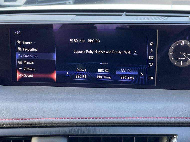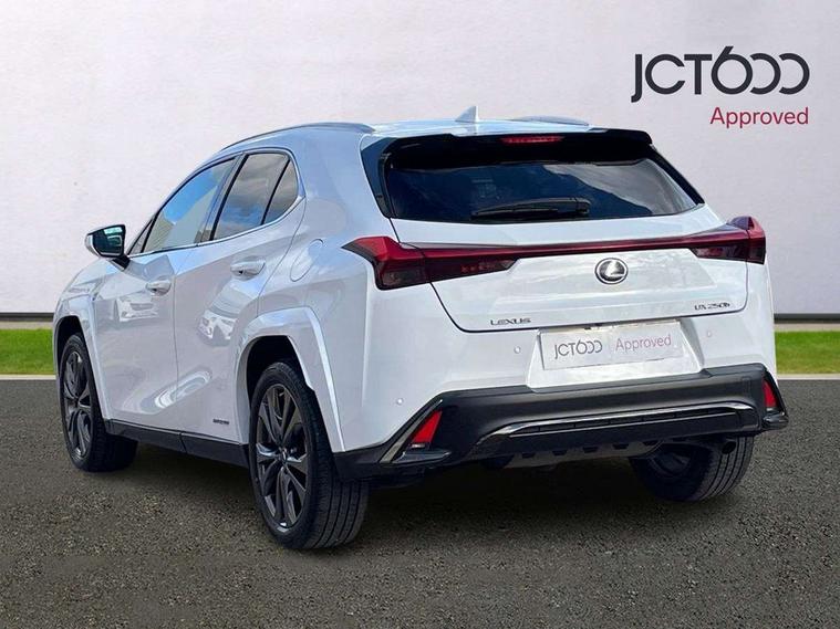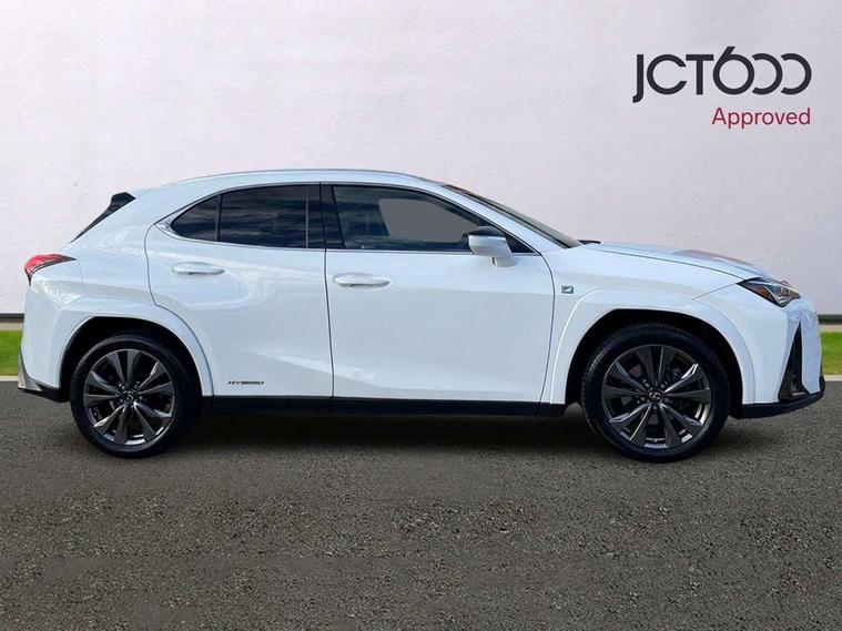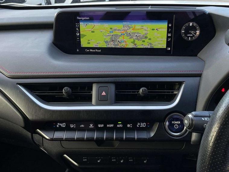 4 driving modes EV/Eco/Normal/Sport, 7" Lexus media display, 8" LFA inspired TFT meters with movable meter ring, Analogue clock with GPS function, Apple car play/Android Auto, Compatible mobile phone bluetooth with audio streaming, E-call, Electric power steering (EPS) with speed sensitive features, Front and rear parking sensor with intelligent clearance sonar, Lane change flasher function, Lexus link connected services, Lexus navigation system, Lexus safety systems + includes dynamic radar cruise control, pre collision system day and night, lane tracing assist, road sign assist, Push button start, Remote touch interface, Reversing camera with back guide lines, Trip computer, F Sport suspension tuning and rear performance dampers, Vehicle Dynamics Integrated Management (VDIM), Vehicle Stability Control (VSC), 2 front USB and 2 rear USB charging points, 6 speakers, AM/FM and DAB radio, AUX socket with VTR compatibility, CD player, Acoustic windscreen, Aero stabilising arch mouldings, Aero stabilising rear lights, Aero ventilated wheels, Aluminium roof rails, Auto dimming interior rear view mirror, Bi-LED (low and high beam) headlights with Auto High Beam (AHB), Black roof drip mouldings, Body adhesive, laser screw welding and laser brazed roof structure, Body coloured bumpers, Colour coded wheel arches, Electric adjustable/heated door mirrors, F SPORT exterior styling consists of black Mesh front grille, enhanced side rockers, metallic coated front bumper and F SPORT badging, Front and rear one touch power windows, with anti-jam protection, Headlight cleaners, LED cornering headlights, LED daytime running lights, LED front and rear fog lights, LED tail lights, LED third brake light, Privacy glass, rear doors and tailgate, Rain sensor windscreen wipers, Rear side wing doors, Rear wiper, Shark fin roof aerial, Single hidden exhaust pipe, Towing preparation, Variable front intermittent wipers, 12V accessory port centre console and luggage compartment, 2 cup holders in the front and rear centre console, 2 way electrical lumbar adjustment for driver, 2 x folding shopping bag hooks in boot, 2 x sun visors with vanity mirror and lamp, 3 seat bench in 2nd row, 4 x tie down hooks in the boot, 5 headrests, 60/40 split folding rear seat, 8 way driver/passenger electrically adjustable front seats, Active sound control, Card holder installed in driver and passengers sun visors, Centre armrest with storage, Driver and passenger door pocket, Dual zone electronic climate control + Nano-E humidity sensor, F Sport aluminium sports pedals, F SPORT dimpled leather gear lever, F SPORT front seat headrest adjustable forwards and backwards, F Sport interior styling, F Sport leather steering wheel with paddle shifts, Fabric/Tahara leather upholstery, Glovebox, Heated steering wheel, Illuminated entry system, LED interior illumination, Map pockets in the rear of passenger's front seat, Rear air vents with 2 USB chargers, Rear armrest with 2 cupholders, Single front passenger seat, Storage tray under audio panel, Textile carpet mats, Tilt/reach adjustable steering column, Under deck storage, Under desk side storage, 2 x Isofix child rear seat restraints, 3x3 point rear seatbelts, Anti-lock braking system (ABS), BAS (Brake Assist System), Driver and front passenger 2 stage airbag, Driver and front passenger knee airbag, Driver/front passenger side airbags, EBD - Electronic brakeforce distribution, ECB (Electronically Controlled Brake System), Electric child locks, Electric parking brake, Front adjustable seatbelt anchor points, Front and rear curtain shield airbags, Front outer seatbelt+pre-tensioners, force limiter+tension reduction: 3-point with active safety link to PCS, Hill start assist control (HAC), Passenger airbag cut-off device, Rear outer seatbelt+pre-tensioners, force limiter+tension reduction: 3-point with active safety link to PCS, Centre belt w/o pre tensioner+force limiter, Secondary Collision Brake (SCB), TRC (Traction Control), Tyre pressure warning, 2 x remote key fobs, Anti theft system : Alarm instruction sensor, glass breakage sensor and engine immobiliser, Locking wheel nuts, Remote central door locking, Speed sensitive auto door locking, Two motion door lock with double lock, VIN Window etching, 18" F Sport alloy wheels with run flat tyres,
