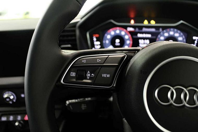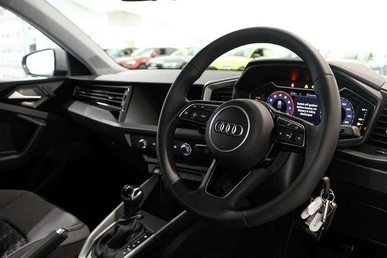 10.25" Digital instrument cluster display classis style instrument dials + speed, odometer, time, outside temperature, telephone menu + fuel level warning, Advanced driver attention and drowsiness monitor, Audi connect emergency call and service, Audi drive select, Audi remote connect and control, Audi smartphone interface, Bluetooth interface, Camera based traffic sign recognition, Cruise control, Driver's information system, Electromechanical power steering, Lane departure warning system, Rear parking sensor, Service interval indicator, Speed limiter, Start stop system with recuperation, Voice control system, Washer fluid level indicator, Dynamic suspension, 2 x USB type C connection points, 6 loudspeakers, DAB Digital radio, MMI radio plus with 10.1" colour MMI display screen and MMI touch, Auto dimming rear view mirror, Body coloured bumpers, Body coloured door mirrors, Electric front and rear windows, Electrically adjustable, heated, folding door mirrors with integrated LED side indicator, Front side air inlets in grained matt black and C frame in anthracite black, Headlight cleaning system, Heat insulating glass windscreen and side windows, Heated rear windscreen, High level LED brake light, LED daytime running lights, LED headlights with range control LED rear lights + dynamic rear indicators, Light and rain sensors, Radiator grille and rear diffuser in matt anthracite black, Radiator protective grille frame in matt aluminium silver, Rear fog lights, Rear side wing doors, Rear wiper, Side front spoiler lips in grained matt black, 12V socket in centre console with two cup holders, 3 rear seats with headrests, 3 seat bench in 2nd row, 3 spoke leather multifunction plus steering wheel, 40:60 Split folding rear seat or fully collapsed, Black velour floor mats, Front door sill trims with aluminium inlay, Front head restraints, Front passenger seat, Grey cloth headlining, Height and reach adjustable steering wheel, Interior lighting includes roof module, front and rear reading lights and right luggage compartment lighting, ISOFIX child seat mounting for front passenger and outer rear seats including top tether attachment point of outer rear seats, Leather gear knob with aluminium trim, Leather handbrake grip, Manual air conditioning, Manual height adjustable for driver and front passenger seat, Manually adjustable lumbar support in front seats, Novum cloth upholstery with front sport seats, Luggage compartment pack - A1, 3x3 point rear seatbelts, Audi pre-sense front with pedestrain and cyclist recognition, Brake assist function, Driver and front passenger airbag with front side and head airbags, Electronic Stability Control including ABS, EBD, ASR and EDL, Front passenger airbag deactivation switch, Hill hold assist, Manual rear child locks, Seatbelt height adjustment for front seats, Seatbelt monitoring, Tyre pressure loss indicator, Warning triangle and first aid kit, Anti theft alarm, Anti theft wheel bolts, Immobiliser, Remote control key with safelock, Aluminium trim for control switches, air vents and digital instrument cluster, Black dashboard, Silver grey accent surfaces insert of air vents, interior door handle recesses and centre console in diamond paint finish, Slate grey inlays polygon structure in fine paint finish,