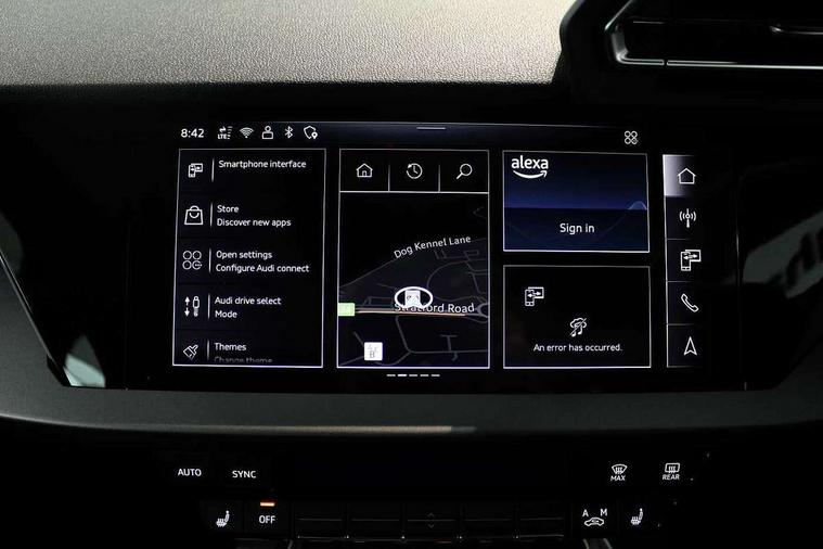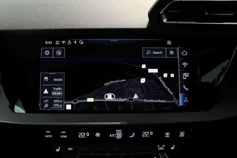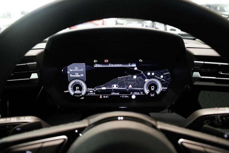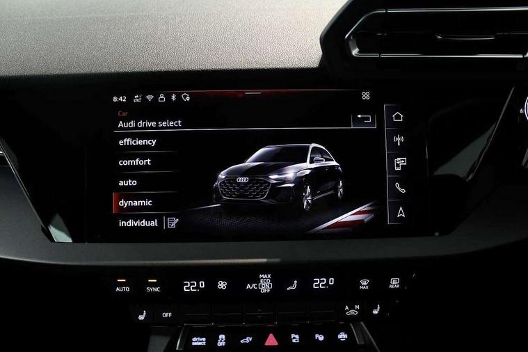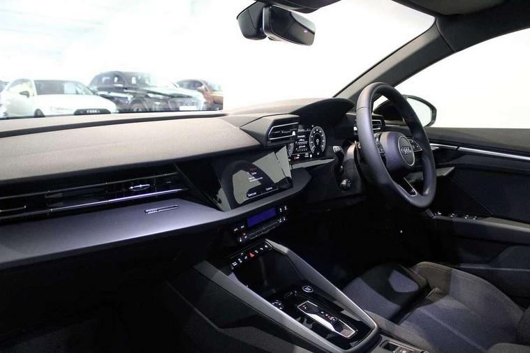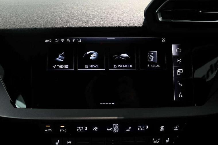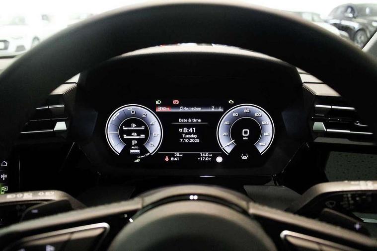 Adaptive cruise control (ACC), Adjustable speed limiter, Audi drive select (Auto, Comfort, Dynamic, Efficiency and Individual), Audi virtual cockpit plus - 12.3" full HD resolution dynamic digital instrument cluster, Automatic start/stop system with recuperation, Bluetooth interface, Camera based traffic sign recognition, Collision avoidance assistant, Driver attention and fatigue detection, e-Call (emergency call), Electromechanical power speed sensitive steering, Emergency assist, Intersection assist, Lane departure warning system, MMI Navigation Plus with high resolution 10.1" colour touch screen display, Park Assist with parking system Plus, Reversing camera, Service indicator, Smartphone interface with app store includes wireless Apple carplay, Android auto and Amazon alexa integration, Trip computer, Voice control system with natural language interaction, 3 pin 10 amp domestic charging cable, CCS socket for DC charging, Charging cable for public charging, mode 3 (type 2), 32 A, Compact charging system, Industrial connector CEE 32 A, 230 V, length 1.6 m, Standard suspension, Type 2 socket for AC charging, Audi Phonebox light with wireless charging, Audi sound system - 10 loudspeakers including centre loudspeaker and subwoofer, DAB Digital radio, USB ports with charging function in the rear, 3rd brake light, Acoustic glass windscreen, Aluminium window trim, Auto dimming frameless rear view mirror, Body colour exterior mirrors, Body colour roof spoiler, Electrically adjustable/heated/folding/auto dimming door mirrors with integrated LED indications + kerb view function for passenger side, Exterior model badging, Front electric windows, Front radiator grill in high gloss dark chrome, Front side air inlets in grained matt black with silver frame, Heat insulating glass windscreen, LED daytime running lights, LED headlights and halogen rear lights, Light and rain sensors, Rear diffuser and grill in grained matt black with silver frame, Rear electric windows, Rear side wing doors, Rear window, rear door windows and rear side windows in clear glass, Rear wiper, 12V socket and storage compartment in front centre console, 3 seat bench in 2nd row, 3 spoke leather multifunction steering wheel with gear shift paddles, 3-zone deluxe automatic air conditioning, 4 way electrically adjustable lumbar support for driver and front passenger, 60/40 split folding rear seat bench, Black front and rear floor mats, Convenience auxiliary air conditioning, Front and rear headrests, Front centre armrest, Front door sill trims with aluminium inlay, Heated front seats, Height and reach adjustable steering wheel, i-Size child seat mounting on the front passenger side and outer rear seats, i-Size and top tether on the outer rear seats, Manual boot compartment lid, Manually adjustable front seats, Routine cloth upholstery with front sports seats, Seat side bolsters, Single front passenger seat, Steel grey cloth headlining, Aluminium interior elements pack - A3, LED interior lighting pack -A3, 3x3 point rear seat belts, Acoustic vehicle alerting system, Driver and front passenger airbag with passenger airbag deactivation, Electronic Stabilisation Control (ESC) including ABS, ASR and EDL, First aid kit with warning triangle and 2 safety vests, Front side airbags with head airbags and interaction airbag, Hill hold assist, Pre-sense front with pedestrian and cyclist detection, Seatbelt monitoring, Tyre pressure loss indicator, Anti theft alarm, Anti-theft wheel bolts, Electronically operated child locks, Immobiliser, Black dashboard, Inlays in volcano grey fine paint finish, Tyre repair kit,