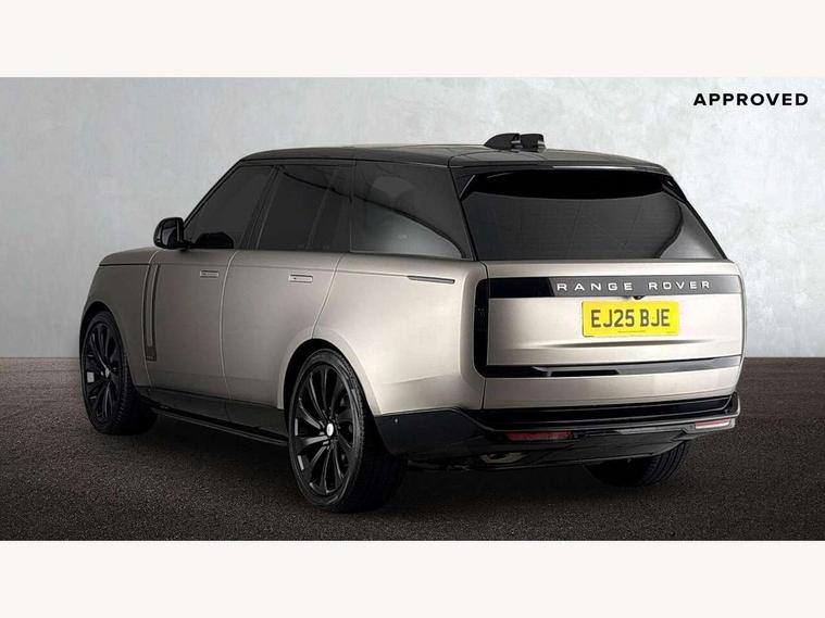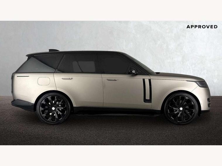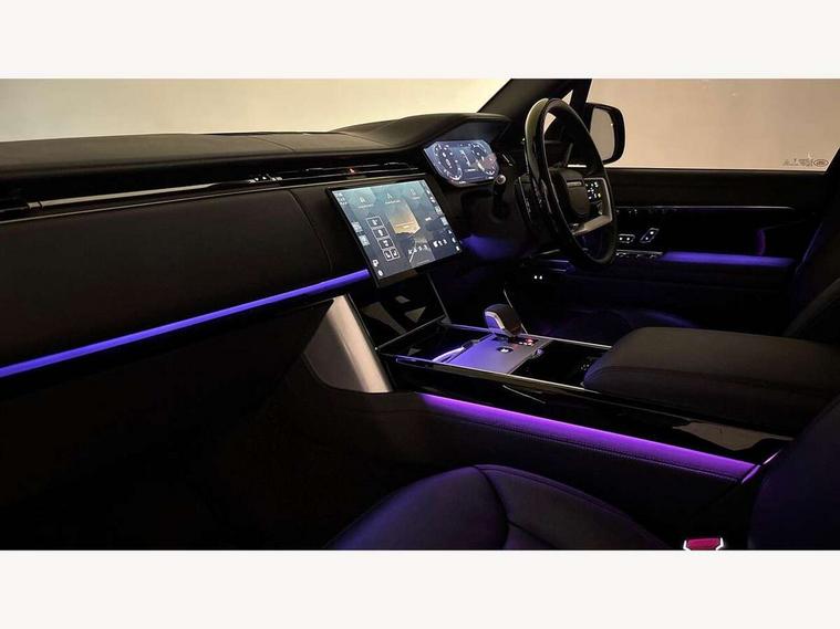 13.1" Touchscreen, 3D surround camera inc frwd traffic detection, vehicle clearance guidance, 3D view, clearsight ground view, manoevure light, 360 parking aid, wade sensing, All Terrain Info Centre, All wheel steering, Android Auto, Apple car play, Blind spot assist, Bluetooth connectivity streaming, Configurable programs, Driver condition response, Eco mode, Electric power assisted steering (EPAS), Emergency call service, Front and rear parking aid, Head up Display, Interactive driver display, Lane keep assist, Rear collision monitor, Rear traffic monitor, Remote, Traffic sign recognition with adaptive speed limiter, Wi-Fi Enabled with data plan, Wireless device charging with phone signal booster, 8 speed automatic transmission, Active damper technology system, Adaptive dynamics, All terrain progress control, All Wheel Drive (AWD), Automatic access height, Terrain Response 2 Auto, Twin speed transfer box, Digital Audio Broadcast radio-DAB, Pivi pro including smart settings, Connected navigation pro, nuance speech, USB socket, Acoustic laminated windscreen, Animated directional indicators, Automatic headlights, Automatic levelling headlights, Centre high mounted stop light, ClearSight interior rear view mirror, Electric windows with one touch open/close and anti trap, Engine cover, Flush deployable exterior door handles, Front and rear recovery eyes, Front fog lights, Headlamp power wash, Heated rear window, Heated washer jets, Illuminated metal treadplates with Autobiography script, Laminated front and rear side glass, LED tail lights, Power fold, auto-dimming, heated door mirrors with approach lights, Rain sensing windscreen wipers, Rear boot, Rear fog lights, Rear side wing doors, Side repeater indicators in mirror, Solar attenuating windscreen, Trailer stability assist, Winter wiper park position, 12V power sockets, 3 seat bench in 2nd row, Air quality sensor, Auto folding loadspace cover, Bright metal pedals, Cabin air purification pro, Cabin lighting, Customer configurable single point entry, Driver and passenger front seat armrests, Easy boot loading, Ebony Carpet, Electric rear side window sunblinds, Four zone climate control, Front and rear cupholders, Front and rear grab handles, Front head restraints, Gearshift paddles, Heated steering wheel, Hook in load space, Loadspace light, Luggage tie down in loadspace, Multifunction steering wheel, Rear centre armrest, Rear head restraints, Rear ISOFIX, Single front passenger seat, SV bespoke carpet mats, Twin blade sunvisors with Illuminated vanity mirrors, Upper and lower glovebox, Versatile loadspace floor in tailgate, Online pack with data plan - Range Rover, 3x3 point rear seat belts, Anti-lock braking system (ABS), Black brake calipers, Brake hold function, Cornering brake control (CBC), Customer configurable autolock, DSC - Dynamic Stability Control, Electronic brake force distribution, Electronic parking brake, Electronic traction control, Emergency brake assist, Emergency braking, Front airbags with passenger seat occupant detector, Front side airbags, Hill descent control, Hill launch assist, Illuminated seat belt buckles, Low traction launch, Occupant protection assist, Power operated child locks, Roll stability control, Tyre pressure monitoring system (TPMS), Immobiliser, Intrusion sensor and alarm, Keyless entry, Locking wheel nuts, Remote central locking, Noble chrome controls,