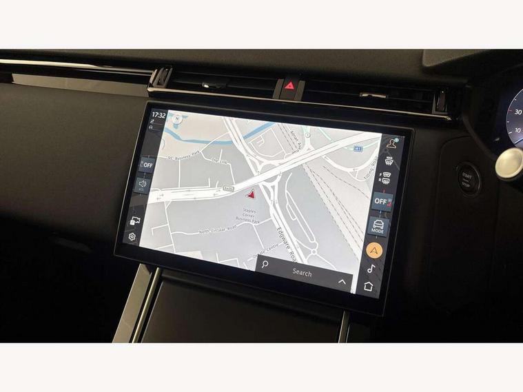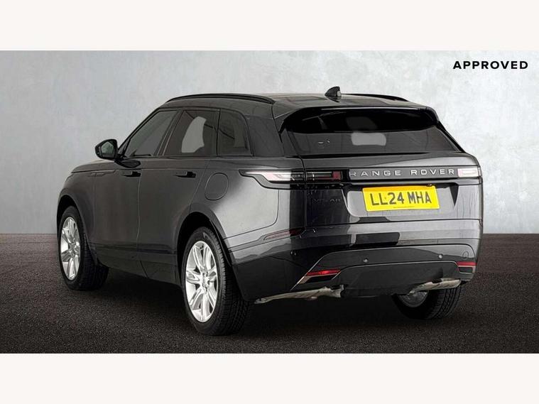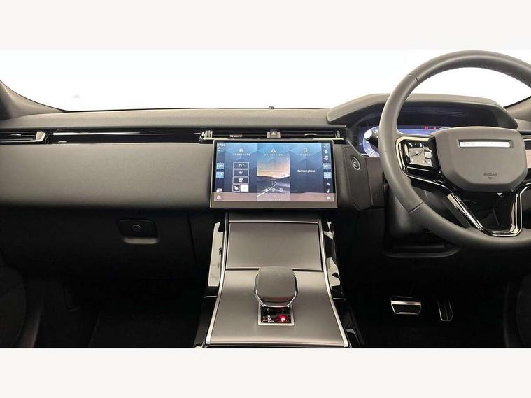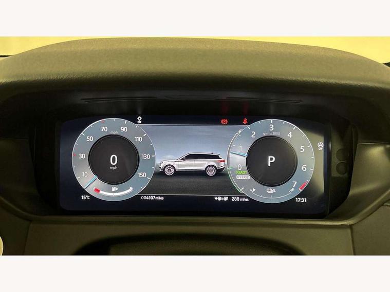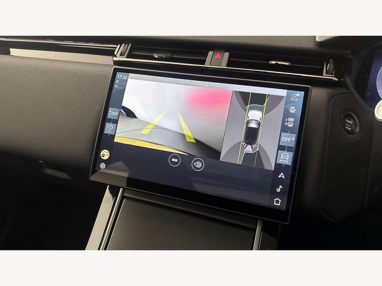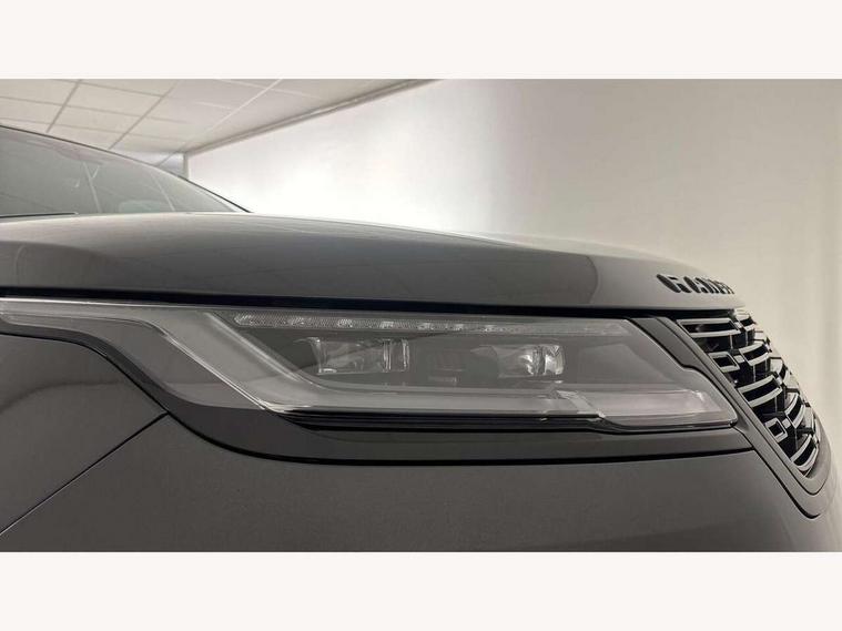 Android Auto, Apple CarPlay, Blind spot assist, Bluetooth connectivity, Brake pad wear indicator warning light, Driver condition monitor, eCall emergency call system, Front and rear parking aid, InControl remote, Land Rover InControl apps, Lane keep assist, Pivi pro with connected navigation, Rear traffic monitor, Service indicator, Speed proportional electronic power assisted steering (EPAS), Traffic sign recognition with adaptive speed limiter, Trip computer, Voice control system, Wireless device charging, 7kw on board charger, 8 speed automatic transmission, AC/DC charging, Adaptive dynamics, All terrain progress control, Coil suspension system, Home charging cable, Open differential with torque vectoring by braking, Public charging cable, Single speed transfer box, DAB radio, Steering wheel mounted controls, 3rd brake light, Acoustic laminated windscreen, Auto dimming interior rear view mirror, Auto high beam assist, Automatic headlamp levelling, Automatic headlights, Body coloured bumpers, Boot protection plate, Electric windows with one touch open/close and anti trap, Flush deployable exterior door handles, Follow me home headlights, Heated rear window with timer, Heated washer jets, Heated windscreen, LED headlights with signature DRL, Metal front tread plates, Metal load space scuff plates, Power fold, auto-dimming, heated door mirrors with memory and approach lights, Rain sensor windscreen wipers, Rear animated directional indicators, Rear fog lights, Rear side wing doors, Rear wash/wipe, Tailgate/boot lid spoiler, Trailer stability assist, Velar badge, 14 way electrically adjustable front seats with driver's memory function, 3 seat bench in 2nd row, Ambient lighting, Bright metal pedals, Carpet mats, Driver/passenger sunvisors with illuminated vanity mirrors, Ebony morzine headlining, Electrically adjustable steering column, Heated steering wheel, Isofix system on outer rear seats, Loadspace cover, Overhead lighting console, Overhead stowage for sunglasses, Passive front headrests, Rear air vents, Rear centre headrest, Single front passenger seat, Twin front cupholders, Twin sliding front centre armrest, Online pack with data plan - Velar, Power socket pack 2 - Velar, 380mm front brakes and 325mm rear brakes, 3x3 point rear seatbelts, Anti-lock braking system (ABS), Cornering brake control, Curtain airbags, Customer configurable autolock, Door side intrusion beams, Driver airbag, DSC - Dynamic Stability Control, Electronic brake force distribution, Electronic parking brake, Electronic traction control, Emergency braking, Front and rear seatbelt reminder, Hill descent control, Hill launch assist, Low traction launch, Passenger airbag, Power operated child locks, Rear airbags, Roll stability control, Side airbags, Tyre pressure monitoring system (TPMS), Unpainted brake calipers, Global lock and unlock switch on driver door, Immobiliser, Intrusion sensor, Keyless entry, Lock only switch on front passenger door, Locking wheel nuts, Perimetric alarm, Remote central locking, All season tyres,