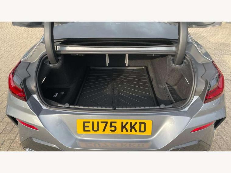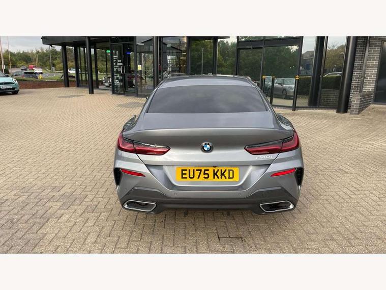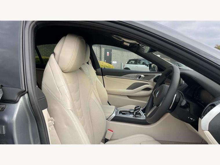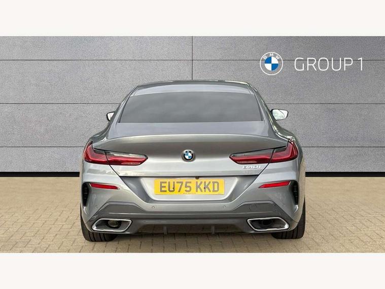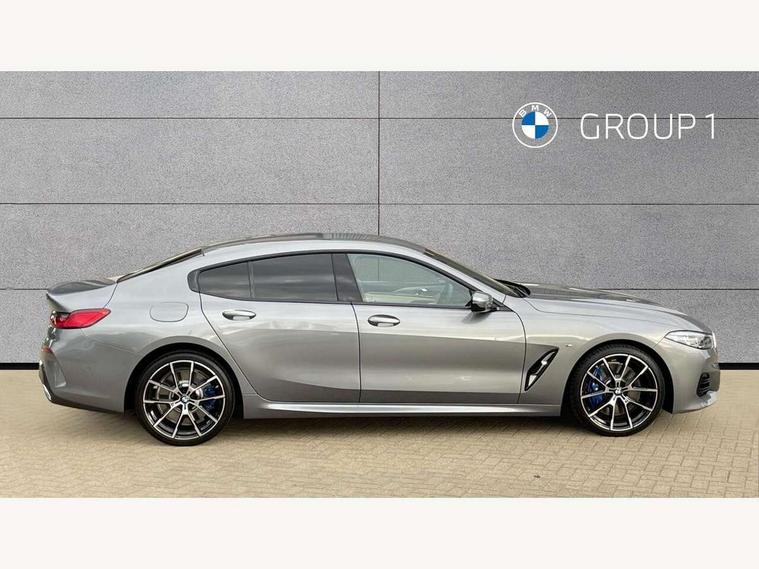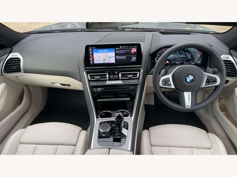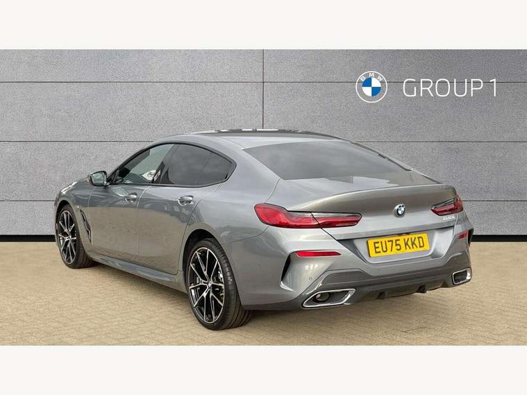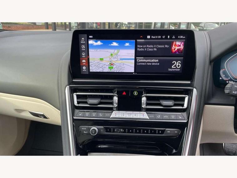 Automatic tailgate operation, remote opening with key, closing by tailgate button or remote control including tailgate in LED technology, Bluetooth hands free facility with USB audio interface, voice control and enhanced bluetooth + Wireless charging, BMW ConnectedDrive online services, BMW legal emergency call, BMW Live cockpit professional with 12.3" instrument display, BMW Teleservices, Brake pad wear indicator, Check control system, Condition based service, Drive experience control with Sport, Comfort, Eco Pro and Adaptive modes, Electric bootlid, Engine start/stop button, Head up Display, iDrive controller with shortcut buttons, Integrated owners handbook, Light on warning, Oil sensor for level and grade, On board computer, Outside temperature display, Service interval indicator, Servotronic system, Wi-Fi hotspot, Adaptive M suspension, Double wishbone front axle, Dynamic Damper Control, Eight speed sport automatic transmission, M Sport differential, Petrol Particulate Filter, Sport exhaust system, DAB Digital radio, Favourite buttons, Automatic windscreen wipers and automatic headlight, Carbon core, Climate comfort windscreen, Daytime driving lights front and rear active, Dynamic brake lights, Exterior mirrors - Floating design mirror, electric adjust/heated/folding, aspherical, Follow me home headlight function, Frameless interior mirror, Front and rear bumper system with replaceable deformation elements, Front electric windows, Front ornamental grille with kidney grille bars, Heat protection, sun protection glazing, Heated rear window, glass, Heated windscreen washer jets, High beam assistant, Illuminated door handles, Illuminated radiator grille iconic glow, LED rear lights, Model logo - right tailgate in chrome, M emblem on side panel in light chrome, badge on bonnet and tailgate, Rain sensor and automatic driving lights control, Rear boot, Rear side wing doors, Side window graphic in black high gloss, Sun protection glass, Thermally insulated windscreen, Third LED technology brake light in rear window, Welcome lights in interior and door handle area, 1 x 12V power socket in front centre console, 2 cup holders in front, 2 rear head restraints, 3 spoke M sport leather multifunction steering wheel with shift paddle, 4 zone control automatic air conditioning, 5 seats, 50/50 split folding rear seat, Ambient light with dynamic interior light, BMW ID, Front and rear seat heating, Front door pockets, Front entry lights doors, Front reading lights, Front sun visors with ticket holder and illuminated mirror, Interior lighting - Interior light front centre above interior mirror, luggage compartment light, automatic interior light system soft on/soft off, Lashing eyelets, Lockable glove compartment with light, Microfilter and active carbon filter, Steering column with adjustable height and length and activation via control on the steering column, Storage compartment under front centre armrest with light, 1 x 12V power socket and USB, Through loading function, Connected professional pack - 8 Series, M sport exterior styling aerodynamics pack - 8 Series, 3x3 point rear seatbelts, ABS/EBD, Active protection, Airbags - Driver and front passenger airbag with seat occupancy detection, knee, side and front passenger seat airbag deactivation, Brake discs, compound structure, Child locks on rear doors, Cornering brake control (CBC), Crash sensor activating central locking release, hazard warning lights, fuel cut off, interior lighting, safety battery terminal clamp and airbags, DSC - Dynamic Stability Control, Dynamic brake control, Dynamic Traction Control - DTC, Electromechanical parking brake with automatic drive away release and auto hold function, Front three point with pyrotechnical belt latch tensioner seat belts, belt force limiter and belt stopper, Head airbags for 1st and 2nd seat row, Hill start assist, Integrated brake system, ISOFIX child seat mounting for the two outer rear seats, Rear three point with pyrotechnical belt latch tensioner seat belts and belt force limiter, Side impact protection, Tyre pressure monitoring system (TPMS), Warning triangle and first aid kit, Alarm system (Thatcham 1) with electronic engine immobiliser, Centre lock switch, Closing system with central locking, Comfort access system, Locking wheel bolts, Vehicle key with exclusive M designation, Instrument and upper door panel in black walknappa leather with contrast stitching,