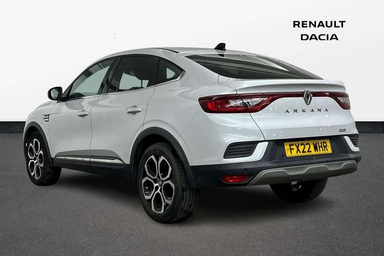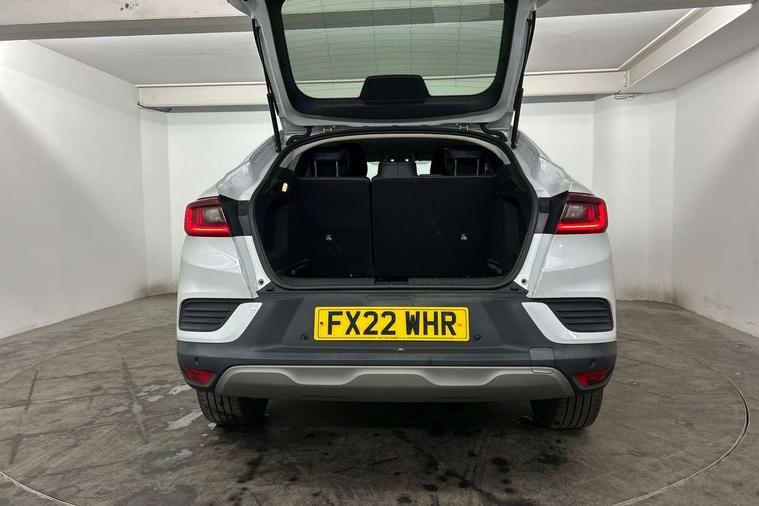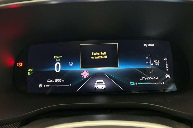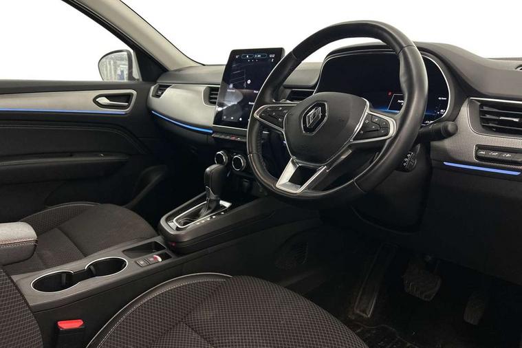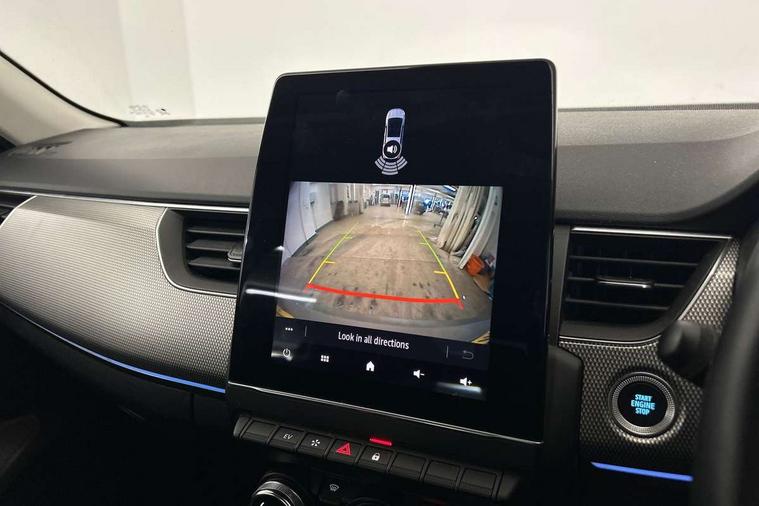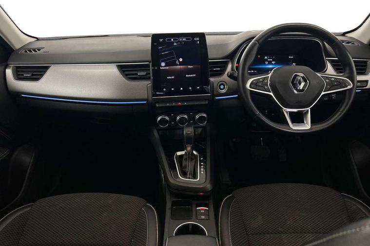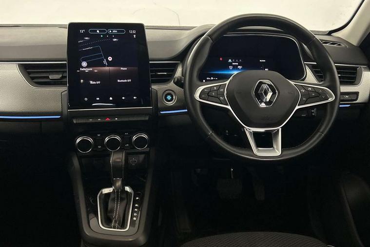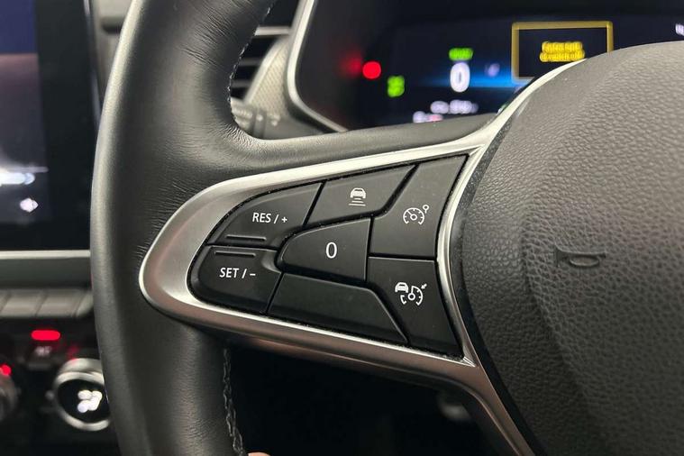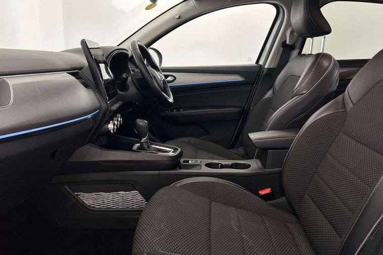 7" TFT Driver information display, Blind spot warning, Bluetooth system, EASY LINK 9.3" portrait touchscreen with navigation, Google search and traffic information, eCall emergency call system, Eco mode, EV button to activate pure mode, Front and rear parking sensors, Gear change indicator, Lane departure warning, Lane keep assist, Multi-sense - 3 driving modes and 8 ambient lighting, Rear cross traffic alert, Rear view camera, Renault automatic emergency assist, Smartphone integration compatible with Apple CarPlay and Android Auto, Traffic sign recognition with over speed prevention, Trip computer, Variable assistance electric power steering, Arkamys classic sound system with 6 speakers, DAB radio, USB port, 3rd brake light, Auto dimming rear view mirror, Automatic headlights, Automatic high / low beam, Automatic windscreen wipers with rain sensor, Black side door protection with chrome insert, Body coloured bumpers, C-shaped LED front signature lighting, Chrome decopart on wing (fender molding), Chrome window lower lining, Extra tinted rear windows and tailgate, Front and rear electric windows, Front driver window with one touch facility and anti-pinch function, Front grille with chrome on upper part, Full LED headlights, Grey front and rear skid plates, Heated rear window, Rain sensor, Rear windscreen wiper, Shiny black shark fin antenna, Side mirrors adjustable electrically, electrically foldable, with defrosting and temperature sensor, automatically foldable at vehicle closure, 3 seat bench in 2nd row, 60:40 split and fixed base rear seats, Automatic climate control with combined filter, humidity sensor and AQS, Central console with storage, Front and rear head restraints, Height and reach adjustable steering wheel, ISOFIX child seat fixing points on rear outermost seats, Leather steering wheel, LED front and rear roof lights, Rear air vents, Single front passenger seat, 3x3 point rear seat belts, ABS+EBA, Active emergency braking system, B Brake Mode - One pedal driving with increased regenerative braking, Distance warning alert, Driver airbag, Driver and passenger front and side airbag deactivation, Driver and passenger side airbags, Driver height adjustable seat belt, Electronic parking brake with auto hold, ESC (Electronic Stability Control), Front and rear no seatbelt warning sound, Front curtain airbags, Front head airbags, Hill start assist, Passenger airbag, Tyre pressure warning light, Anti drill door locks and locking fuel cap, Central door locking, Deadlocking system, Hands free keycard with Keyless access and start, RAID (Renault Anti-Intruder Device) automatic door locking, Rear side wing door and window child locking function (front driver door control panel), Superlocking, Thatcham alarm, 18" Pasadena diamond cut alloy wheels with grey inserts,