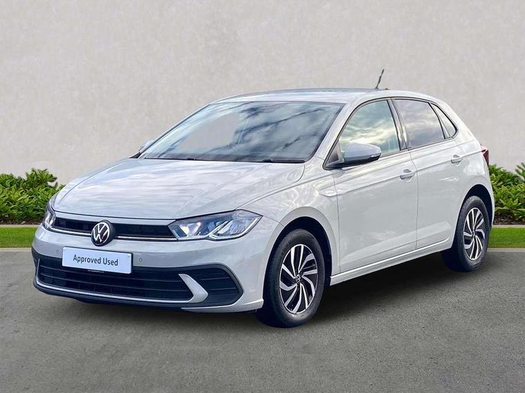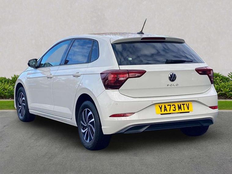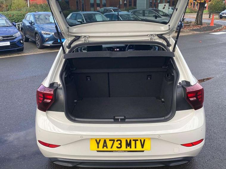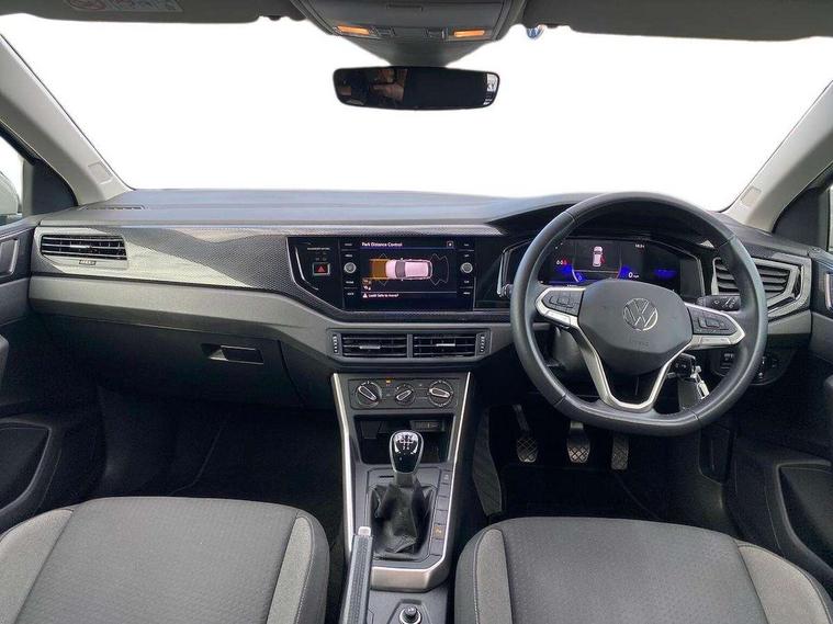 Adaptive cruise control without follow-to-stop and speed limiter, Advanced driver attention and drowsiness monitor, Bluetooth mobile phone interface, Driver alert system, Dynamic road sign display, Emergency call service, Front assist system, Power assisted speed sensitive steering, Preparation for We connect and We connect plus, Speedo and rev counter, electronic odometer, trip, service interval display and fuel gauge, Standard rear axle, Travel Assist - Lane keeping system and traffic jam assist, Travel assist including emergency assist, Trip computer, Warning signal and warning light for front and rear seatbelts not fastened, Washer fluid level indicator, Wireless app connect, Front wheel drive, Rear shock absorpion, Start-stop system with battery regeneration (recuperation - energy recovery during braking), DAB Digital radio, Diversity antenna for FM reception, Front and rear 6 speakers, Automatic dimming interior rear view mirror, Body colour bumpers, Body colour door handles, Body colour door mirrors, Electric front windows, Heat insulating darkened glass in side and rear windows, Heat insulating glass windscreen, Power folding adjustable/heated exterior mirrors and front passenger exterior mirror lowering function, Rain sensor, Rear electric windows, Rear fog light, Rear side wing doors, Rear windscreen washer and wiper with interval delay, Third brake light, 12V power socket in centre console, 2 front and 2 rear reading lights, 2 USB-C ports in the front, 2 USB-C charging sockets on the center console in the rear, 3 rear head restraints, 60/40 split folding rear seat and rear seat bench not split, Chrome plated radiator grille inserts, air vent surrounds and light switch surrounds, Door and side trim panel, Driver and front passenger seat height adjustment, Driver/passenger sunvisors with illuminated vanity mirrors, Front centre armrest, Front seat backrest storage pockets, Front standard seats, Handbrake lever handle in leather, Hartley/Thomas cloth upholstery, Headliner in recycled material, Isofix child seat preparation easy-fit (for two outer rear seats, and front passenger seat) compatible with I-size, Leather trimmed gear knob, Luggage compartment cover, Luggage compartment floor, Luggage compartment lighting, Multifunction steering wheel, Single front passenger seat, Standard pedal cluster, Light and vision pack - Polo, 3 point height adj front seatbelts + pretensioners, 3x3 point rear seatbelts, ABS, Driver and front passenger airbag with front passenger airbag deactivation, Drivers and front passengers safety optimised head restraints, ESC (Electronic stability control) + EDL (Electronic Differntial lock) and ASR (Traction control), Extended and predictive pedestrian/ cyclist protection, Front curtain and side airbags with center airbag, Front disc brakes, Hill hold control, Manual child lock in rear doors, Rear drum brakes, Single tone horn, Tyre pressure loss indicator, Alarm with interior protection, Anti-theft alarm system with interior monitoring, backup horn, and towing protection, Anti-theft wheel bolts, Electronic engine immobiliser, Lava stone black gloss/matt decorative inserts in dash and front door panels, Low rolling resistance tyres,