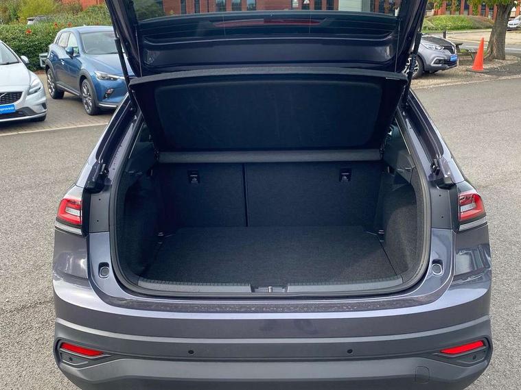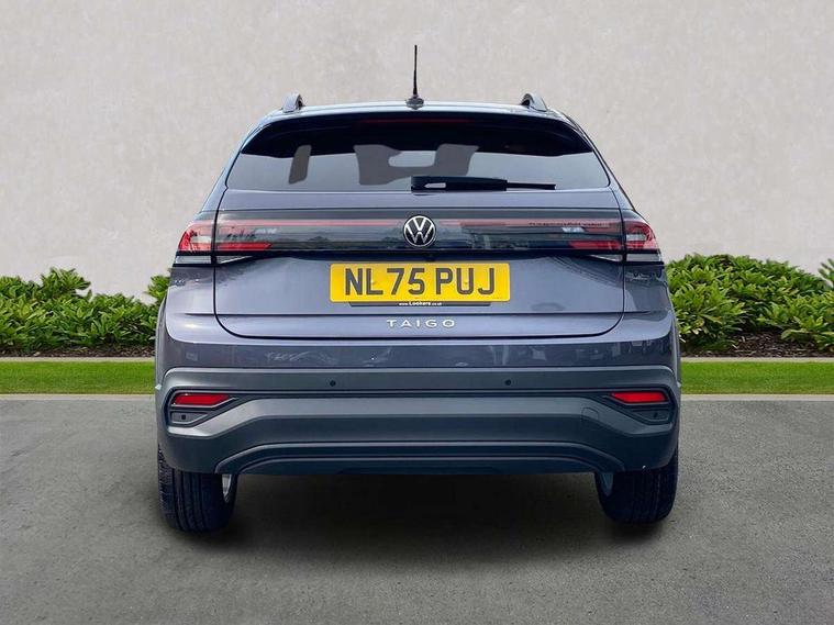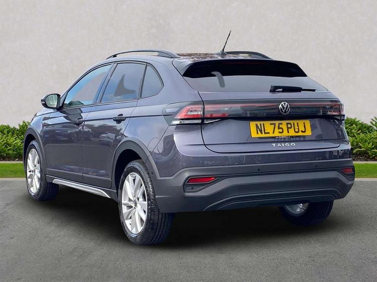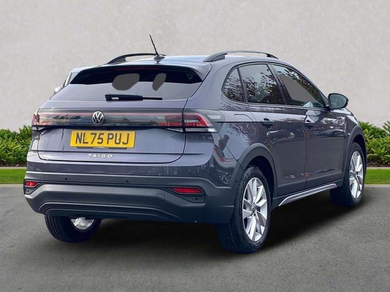 8" Digital cockpit basic display, Advanced driver attention and drowsiness monitor, Dynamic road sign display, e-Call (emergency call), Power Steering, Predictive adaptive cruise control, Rear view camera, Travel assist including emergency assist, Washer fluid level indicator, Wireless Charging including Bluetooth, Start-stop system with battery regeneration (recuperation - energy recovery during braking), Digital radio reception (DAB+), WeConnect plus, Ambient lighting with logo projection, Aspherical driver's exterior mirror, Body coloured bumpers, Body coloured exterior mirror housings and door handles, Electric windows, External USB type C socket and charging sockets, Heat insulating glass windscreen, LED rear combination lamp, LED third brake light, Left convex exterior mirror, Power folding adjustable/heated exterior mirrors and front passenger exterior mirror lowering function, Rear fog light on one side, reversing light on both sides, Rear side wing doors, Rear wash/wipe with intermittent wipe setting, Side windows in heat-insulating glass, from B-pillar and rear window dark tinted, 'Slash/ Austin' Cloth upholstery, 12V socket in centre console, 2 front reading lights, 3 rear head restraints, 3 seat bench in 2nd row, Black carpets, Ceramique headliner, Child seat anchor for child seat system i-Size, 2x top tether and child seat anchor in front on front passenger side, Door and side trim panels in titan black, Driver and front passenger seat height adjustment, Front centre armrest, Handbrake lever handle in leather, Height and reach adjustable steering wheel, Leather trimmed gear knob, Leather wrapped multifunction steering wheel, Luggage compartment floor, Luggage compartment light, Lumbar support for driver's and front passengers seat, Seat covers in titanium black, Single front passenger seat, Split folding backrest with centre armrest and unsplit rear seat bench, Storage compartment under front seats, Sun visors with illuminated vanity mirrors, Titanium black instrument panel, Chrome Package - Taigo, Drivers assistance package - Taigo, Light and sight pack - Taigo, 2 x 3-point seatbelts/outer rear seats with ECE label, 3-point seat belts in front with pretensioner and height adjustment, 3-point seatbelt for centre rear seat, Driver and front passenger airbag with front passenger airbag deactivation, Driver and front passenger safety-optimised head restraints, Electronic stability control, Extended and predictive pedestrian/ cyclist protection, Front and rear disc brakes, Front curtain and side airbags with center airbag, Hill start assist, Manual rear child locks, Single tone horn, Tyre pressure loss indicator, Anti-theft alarm system with interior monitoring, backup horn, and towing protection, Keyless locking and starting system keyless access with safelock, Black (slush) Dashboard, Lava stone black gloss/matt decorative inserts in dash and front door panels, Low rolling resistance tyres,