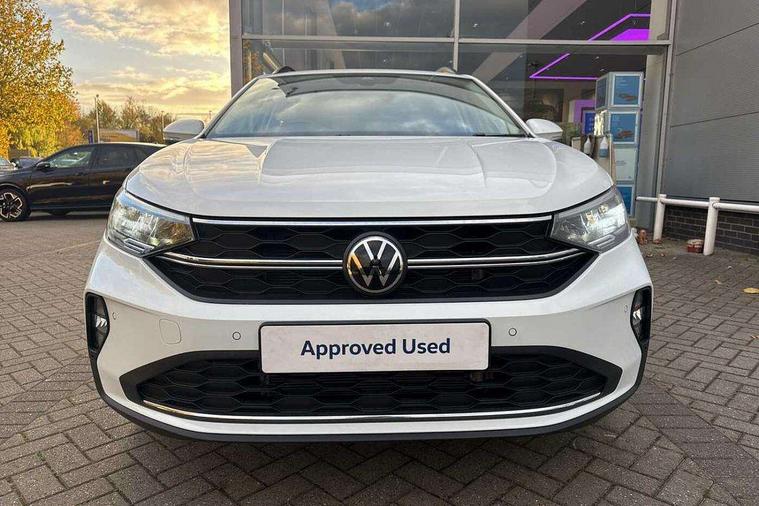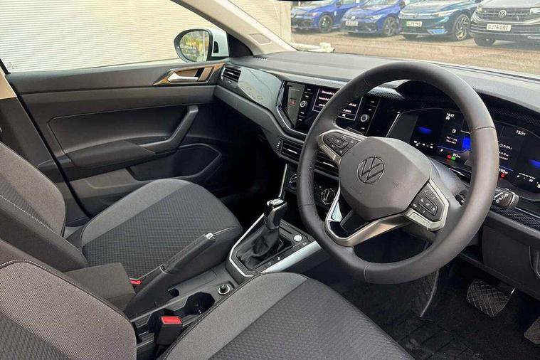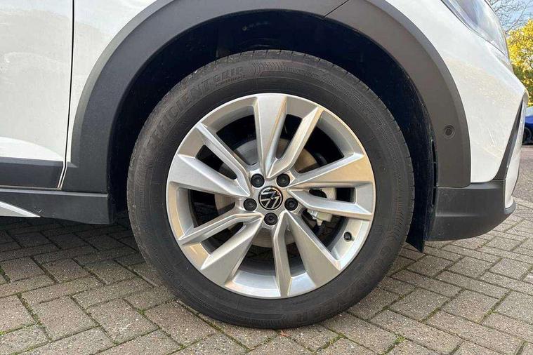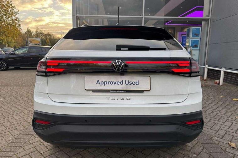 8" Digital cockpit basic display, Adaptive cruise control, Advanced driver attention and drowsiness monitor, Dynamic road sign display, e-Call (emergency call), Power Steering, Rear view camera, Travel assist including emergency assist, Washer fluid level indicator, Wireless Charging including Bluetooth, Start-stop system with battery regeneration (recuperation - energy recovery during braking), Digital radio reception (DAB+), WeConnect plus, Ambient lighting with logo projection, Aspherical driver's exterior mirror, Body coloured bumpers, Body coloured exterior mirror housings and door handles, Electric windows, External USB type C socket and charging sockets, Heat insulating glass windscreen, LED rear combination lamp, LED third brake light, Left convex exterior mirror, Power folding adjustable/heated exterior mirrors and front passenger exterior mirror lowering function, Rear fog light on one side, reversing light on both sides, Rear side wing doors, Rear wash/wipe with intermittent wipe setting, Side windows in heat-insulating glass, from B-pillar and rear window dark tinted, 'Slash/ Austin' Cloth upholstery, 12V socket in centre console, 2 front reading lights, 3 rear head restraints, 3 seat bench in 2nd row, Black carpets, Ceramique headliner, Child seat anchor for child seat system i-Size, 2x top tether and child seat anchor in front on front passenger side, Door and side trim panels in titan black, Driver and front passenger seat height adjustment, Front centre armrest, Handbrake lever handle in leather, Height and reach adjustable steering wheel, Leather trimmed gear knob, Leather wrapped multifunction steering wheel with paddle shift, Luggage compartment floor, Luggage compartment light, Lumbar support for driver's and front passengers seat, Seat covers in titanium black, Single front passenger seat, Split folding backrest with centre armrest and unsplit rear seat bench, Storage compartment under front seats, Sun visors with illuminated vanity mirrors, Titanium black instrument panel, Chrome Package - Taigo, Drivers assistance package - Taigo, Light and sight pack - Taigo, 2 x 3-point seatbelts/outer rear seats with ECE label, 3-point seat belts in front with pretensioner and height adjustment, 3-point seatbelt for centre rear seat, Driver and front passenger airbag with front passenger airbag deactivation, Driver and front passenger safety-optimised head restraints, Electronic stability control, Extended and predictive pedestrian/ cyclist protection, Front and rear disc brakes, Front curtain and side airbags with center airbag, Hill start assist, Manual rear child locks, Single tone horn, Tyre pressure loss indicator, Anti-theft alarm system with interior monitoring, backup horn, and towing protection, Keyless locking and starting system keyless access with safelock, Black (slush) Dashboard, Lava stone black gloss/matt decorative inserts in dash and front door panels, Low rolling resistance tyres,