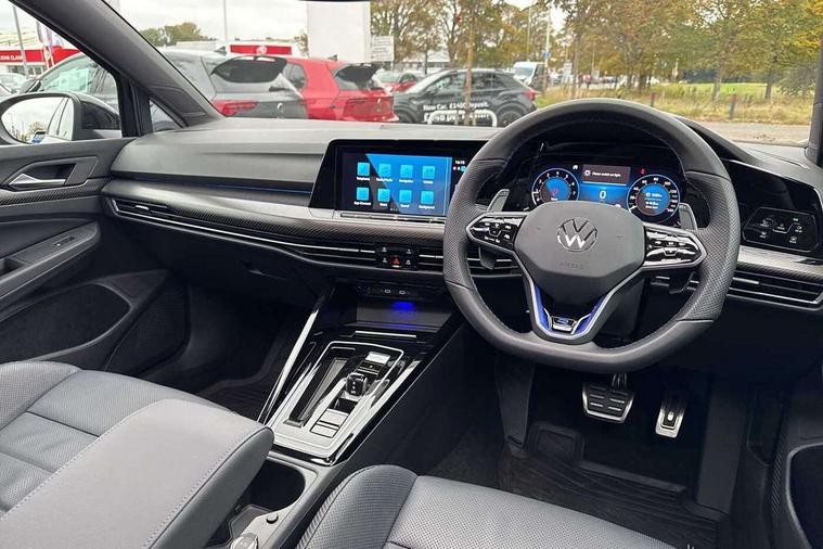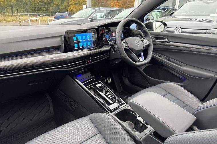 Adaptive cruise control (ACC) with speed limiter and front assist (reacting to vehicles pedestrians and cyclists), Car2X communication, Digital cockpit pro - 10.25" high resolution TFT dash display screen with customizable menus and information, Drive acoustics, Driver alert system, Dynamic road sign display, eCall - Emergency call service for SOS calls to emergency response, Lane assist, Lane change assistant, Mobile phone interface with wireless inductive charging function, Multifunction camera for distance control, PAS, Speedo, rev counter, electronic odometer, trip, service interval display, exterior temperature and fuel gauge, Start/Stop function, Travel assist with emergency side assist with electrically foldable door mirrors, USB-C ports in the front and rear centre console with increased charging performance, Warning buzzer and light for front seatbelts unfastened, Wireless app connect, 4Motion 4 wheel driver, Emotion start function, Front differential lock, Petrol Particulate Filter, XDS electronic differential lock for improved traction and handling, Premium USB cable in choice of either Apple or Android smartphone compatibility, "20" badge on the B-Pillar, Ambient lighting, exterior illuminated styling elements at the sides, Auto dimming rear view mirror, Automatic headlamp activation with Coming home and Leaving home feature, Automatic headlights, Blue 'R' logo on front grille, side fenders and rear tailgate, Body colour bumpers, Body colour door handles, Body colour rear roof spoiler, Front and rear electric windows, Golf 20 years styling - including '20 R' logo projection from door mirrors, Heat insulating glass windscreen, Heated rear windscreen, High level 3rd brake light, Highway light, Illuminated front grille, IQ.Light - LED Matrix headlights, dynamic headlight control with advanced high beam control matrix dipped main beam + LED DRL + 22 LED lights, LED front fog lights with 5 honeycomb design, LED License plate illumination, LED rear combination lamp inlcuding dynamic turn signal, Performance rear spoiler, Rain sensor, Rear fog light on one side and reversing lights on both sides, Rear side wing doors, Rear tinted glass 65% light absorbing from B pillar backwards, Rear windscreen washer and wiper with interval delay, Remote electrically heated, adjustable and foldable door mirrors, including door mirror puddle lights and reverse activated kerb-view adjustment on pa, Welcome light, 12V socket in front centre console, 12V socket in luggage compartment, 3 rear head restraints, 3 seat bench in 2nd row, 3 zone climate with controls in the rear, Aluminium gear knob, Ambient lighting - Customisable 30 colour ambient lighting, Black roof lining, Blue R logo on the multifunction sport steering wheel and on the vehicle key cap, Brushed stainless steel pedals, Chrome plated surround to electric mirror button, window switch and air vent surrounds, Door insert in Artvelours, Drivers and front passengers sun visors with vanity mirrors, Front + rear carpet mats in recycled material, Front centre armrest with storage compartment, Front cupholders x 2, Front passenger seat, Front reading lights x 2 incorporating LED technology, Front seat lumbar support adjuster, Glovebox, Height adjustable front seats, Height and reach adjustable steering wheel, Isofix child seat preparation for 2 rear child seats and front passenger seat, Leatherette door armrests and centre armrest, Luggage compartment lighting, Nappa leather upholstery with heated, active climate control sports comfort seats, electric adjust driver seat, memory, leather door insert, R leather wrapped multi function sports heated steering wheel with extended paddle shift, Removable luggage compartment cover, Split folding backrest with centre armrest and unsplit rear seat bench, Sports seats with integrated headrest in Nappa leather front and outer rear seats with R logo in upper backrest, Woven fabric storage compartments in front and rear doors, R performance pack - Golf R 20 years, R styling pack - Golf, Winter pack - Golf R Line/GTE/GTD/GTI/GTI Clubsport/R/Alltrack, 3 point height adj front seatbelts + pretensioners, 3 rear three point seatbelts, ABS, Blue brake callipers in front with R logo, Child locks on rear doors, Driver and front passenger airbag with front passenger airbag deactivation, Drivers and front passengers safety optimised head restraints, Electronic parking brake with auto hold, ESC (Electronic Stability Control), Extended pedestrian protection measures, Front and rear passengers curtain airbag system including front side airbags, Front centre airbag, Front disc brakes, Front side airbags with curtain airbags, Rear disc brakes, Two tone horn, Tyre pressure monitoring system, Alarm with interior protection and deactivation via infotainment system, Electronic engine immobiliser, Keyless entry with start/stop button on centre console, High gloss black centre console, High quality decorative trim in Genuine Carbon on dash panels and door trims, Soul dashboard, Tyre mobility kit Includes 12V compressor and tyre sealant,