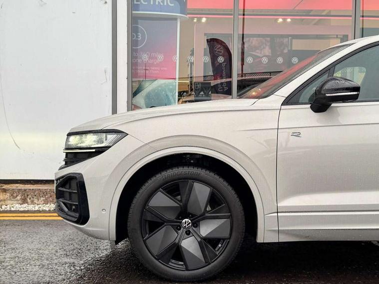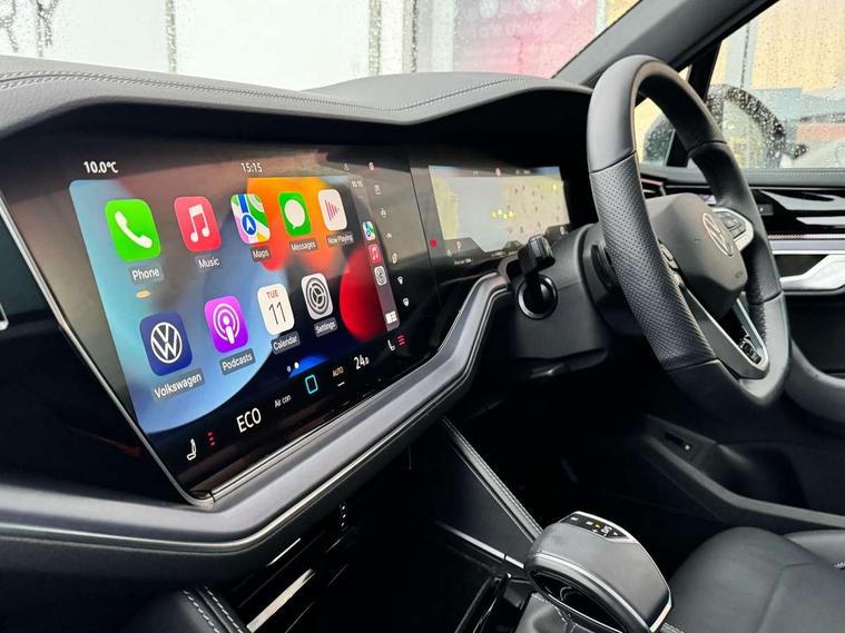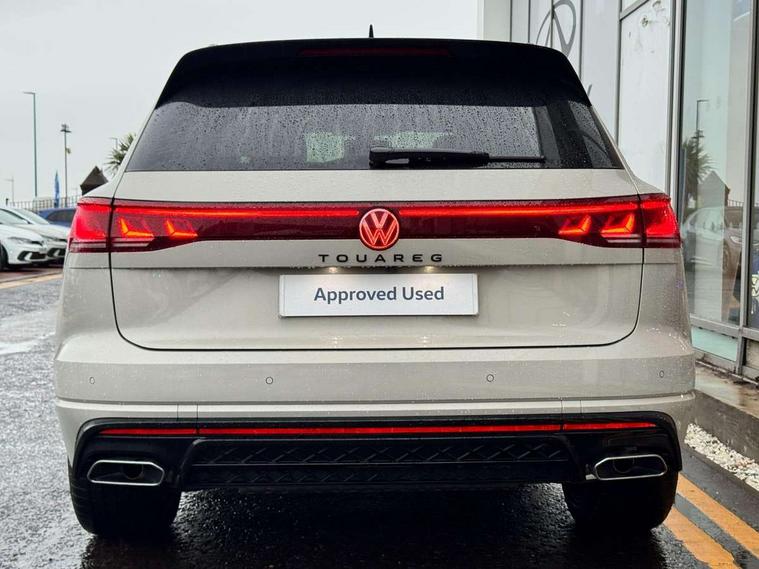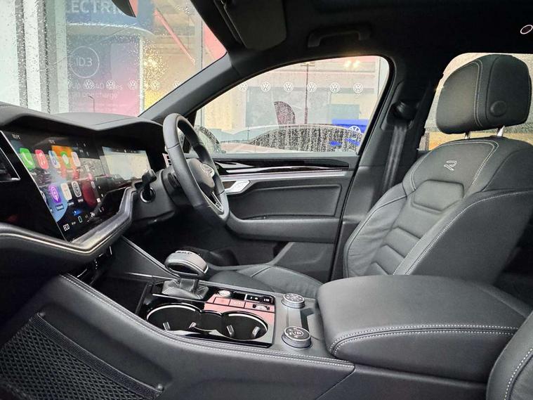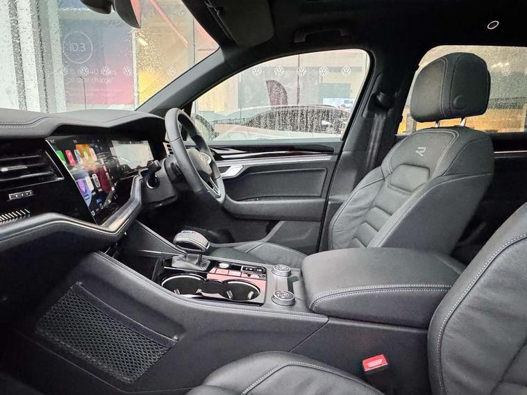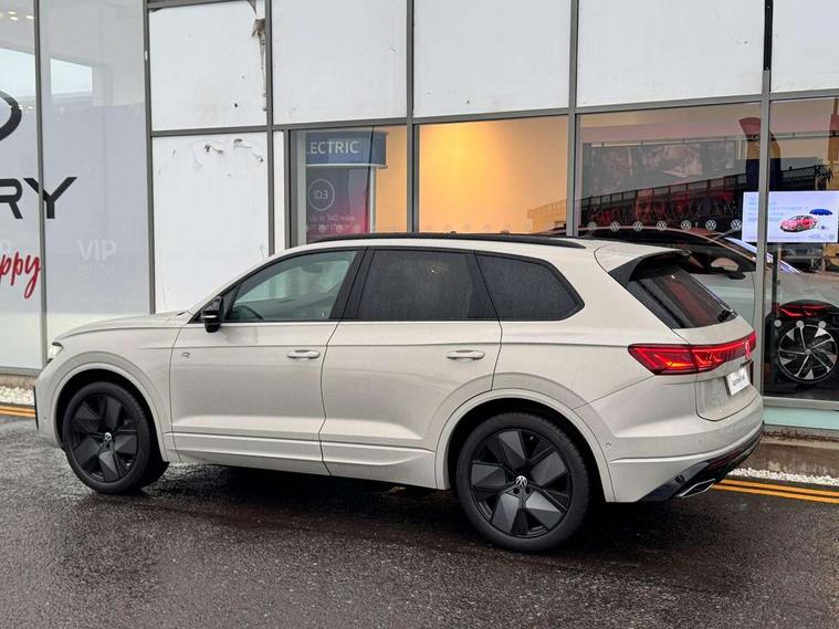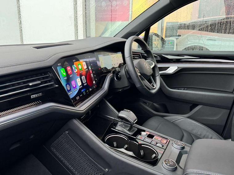 15" Screen Top infotainment system Premium (MIB3), Adaptive cruise control, Advanced driver attention and drowsiness monitor, Driver profile selection, Dynamic road sign display, E-Sim card for online connectivity, eCall emergency system, Innovision cockpit, Intelligent park assist, Mobile phone interface with inductive charging, Multi-colour Active Info display, Park Assist - Sensor controlled steering aid to assist parallel or bay parking, PAS, Warning signal and warning light for front and rear seatbelts not fastened, Wireless app connect, Adaptive chassis control, DAB Digital radio, Diversity antenna for AM/ FM reception, We Connect and We Connect Plus functionality, Automatic coming/leaving home lighting function, Automatic headlights, Black door mirrors, Black style comfort bumpers, Dynamic headlight range control with dynamic cornering light, Electric front tilt/slide panoramic sunroof and fixed rear sunroof, Electrically power adjustable, heated, folding, auto dimming, front passenger exterior door mirror lowering function, External USB type C socket and charging sockets, Gloss black roof rails, HD LED Matrix beam plus digital headlight projection with variable light distribution, Headlight washers, Highway light, LED 3rd brake light, LED daytime running lights, LED rear combination lamp with variable lighting functions and special styling, Poor weather light, Rain sensor, Rear exhaust tailpipe, Rear fog light with back up light on both sides, Rear light bar and illuminated logo, Rear side wing doors, Rear wiper, Stainless steel door sill protection, 12V socket in centre console, 3 rear headrests, 3 seat bench in 2nd row, 4 zone climate control, Airbag label on sun visor and B-pillar, Brushed stainless steel pedals, Double sun visors with illuminated vanity mirrors, Front + rear carpet mats, Front centre armrest, Leather wrapped multifunction sports steering wheel, heated, with touch control and shift paddles, Mechanical rear seat release, Power adjustable lumbar support in front, Power seats in front, right side with memory features and seat cushion depth adjustment, Rear seat backrest and split folding with center armrest, Single front passenger seat, Memory pack plus - Touareg, 3 point seatbelts, outer rear with ECE lable, ABS, Child locks on rear doors, Curtain airbags, Driver and front passenger safety-optimised head restraints, Driver/Front Passenger airbags, Extended pedestrian protection measures, Front assist, Front seat side impact airbags, Generative braking with start and stop system, Height adjustable 3 point front seatbelts with pre tensioners, Passenger airbag deactivate switch, Three 3 point rear seatbelts, Two tone horn, Tyre pressure loss indicator, Warning triangle and first aid kit, Alarm system with interior protection, Easy open and close sensor controlled luggage compartment opening and closing with remote unlocking, Keyless Access Keyless locking and starting system with SAFELOCK, Aluminium decorative inserts, Black decorative trims, Gloss black decorative inserts in centre console, Tool kit,