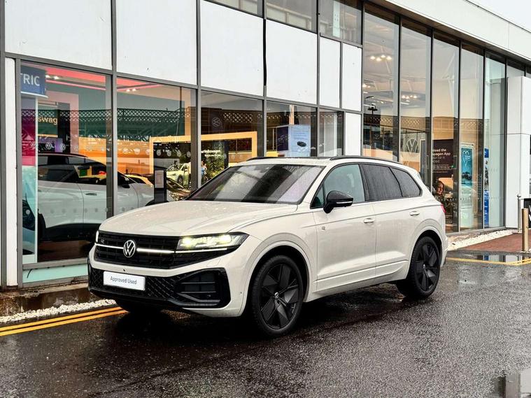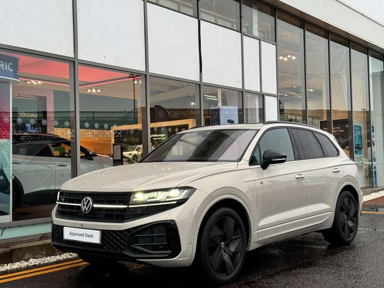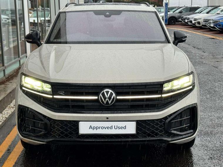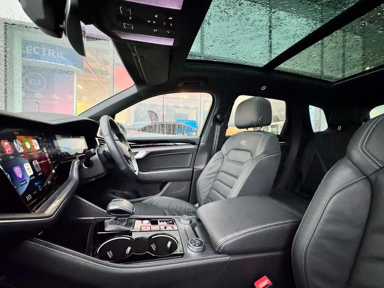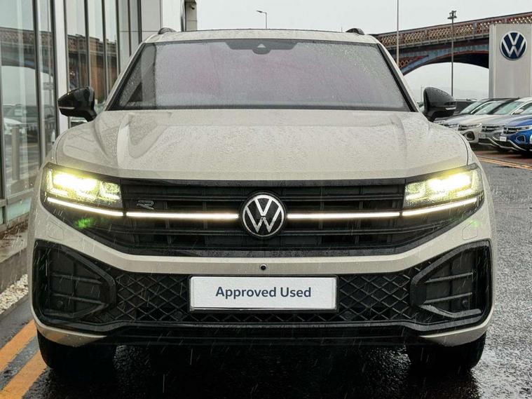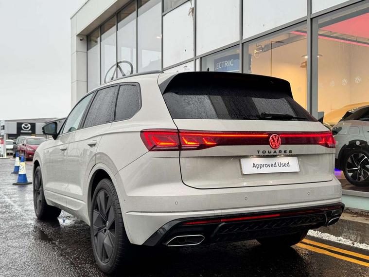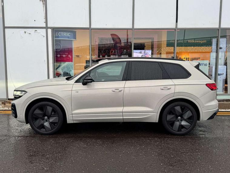 15" Screen Top infotainment system Premium (MIB3), Adaptive cruise control, Advanced driver attention and drowsiness monitor, Driver profile selection, Dynamic road sign display, E-Sim card for online connectivity, eCall emergency system, Innovision cockpit, Intelligent park assist, Mobile phone interface with inductive charging, Multi-colour Active Info display, Park Assist - Sensor controlled steering aid to assist parallel or bay parking, PAS, Warning signal and warning light for front and rear seatbelts not fastened, Wireless app connect, Adaptive chassis control, DAB Digital radio, Diversity antenna for AM/ FM reception, We Connect and We Connect Plus functionality, Automatic coming/leaving home lighting function, Automatic headlights, Black door mirrors, Black style comfort bumpers, Dynamic headlight range control with dynamic cornering light, Electric front tilt/slide panoramic sunroof and fixed rear sunroof, Electrically power adjustable, heated, folding, auto dimming, front passenger exterior door mirror lowering function, External USB type C socket and charging sockets, Gloss black roof rails, HD LED Matrix beam plus digital headlight projection with variable light distribution, Headlight washers, Highway light, LED 3rd brake light, LED daytime running lights, LED rear combination lamp with variable lighting functions and special styling, Poor weather light, Rain sensor, Rear exhaust tailpipe, Rear fog light with back up light on both sides, Rear light bar and illuminated logo, Rear side wing doors, Rear wiper, Stainless steel door sill protection, 12V socket in centre console, 3 rear headrests, 3 seat bench in 2nd row, 4 zone climate control, Airbag label on sun visor and B-pillar, Brushed stainless steel pedals, Double sun visors with illuminated vanity mirrors, Front + rear carpet mats, Front centre armrest, Leather wrapped multifunction sports steering wheel, heated, with touch control and shift paddles, Mechanical rear seat release, Power adjustable lumbar support in front, Power seats in front, right side with memory features and seat cushion depth adjustment, Rear seat backrest and split folding with center armrest, Single front passenger seat, Memory pack plus - Touareg, 3 point seatbelts, outer rear with ECE lable, ABS, Child locks on rear doors, Curtain airbags, Driver and front passenger safety-optimised head restraints, Driver/Front Passenger airbags, Extended pedestrian protection measures, Front assist, Front seat side impact airbags, Generative braking with start and stop system, Height adjustable 3 point front seatbelts with pre tensioners, Passenger airbag deactivate switch, Three 3 point rear seatbelts, Two tone horn, Tyre pressure loss indicator, Warning triangle and first aid kit, Alarm system with interior protection, Easy open and close sensor controlled luggage compartment opening and closing with remote unlocking, Keyless Access Keyless locking and starting system with SAFELOCK, Aluminium decorative inserts, Black decorative trims, Gloss black decorative inserts in centre console, Tool kit,