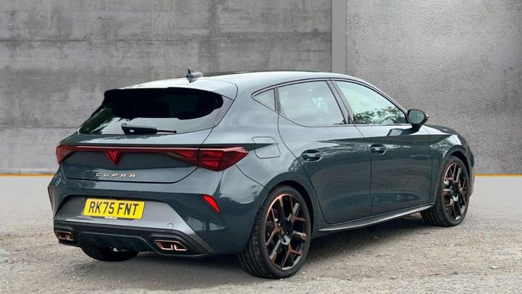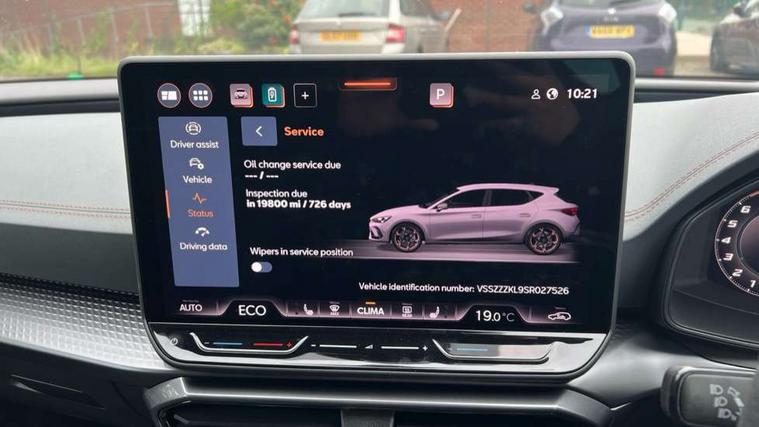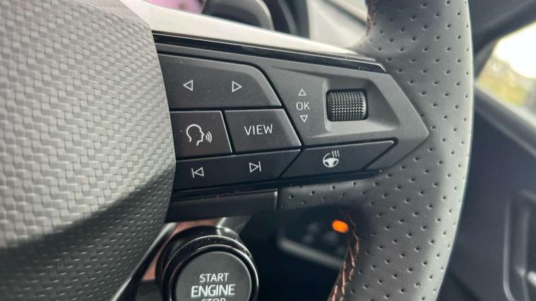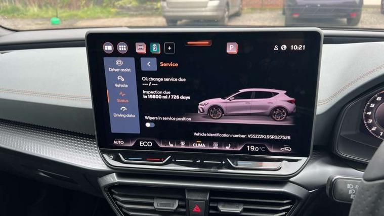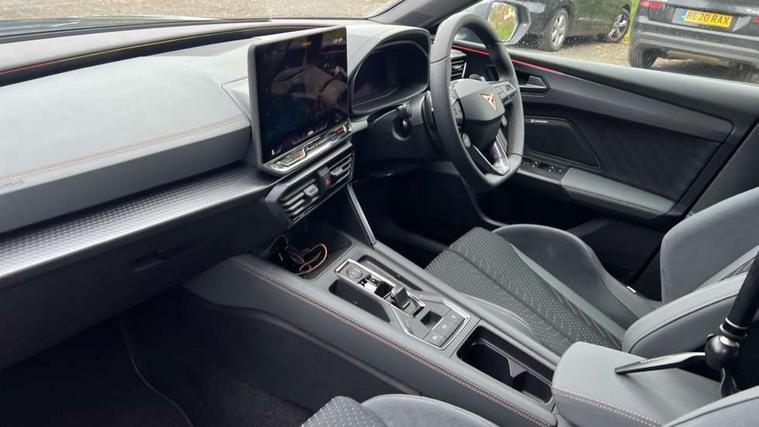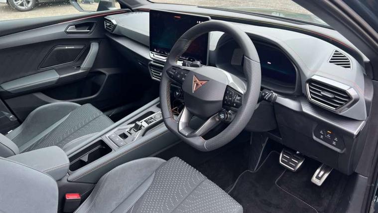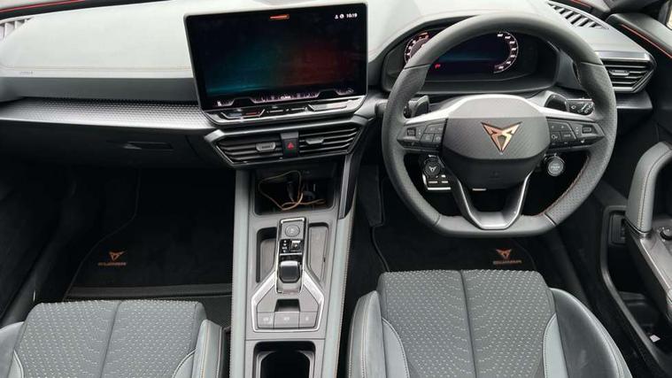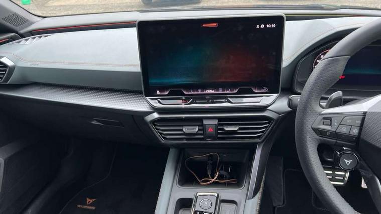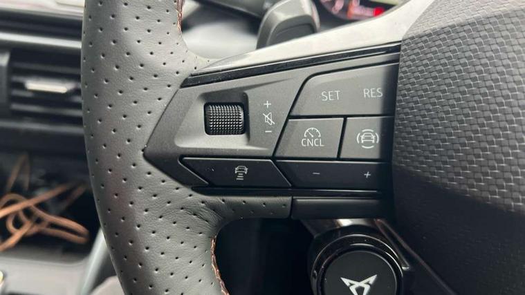 Adaptive cruise control with follow-to-stop and speed limiter, CUPRA mode drive profile selection with throttle response and gearshift mode, Digital cockpit, Driver alert system with driver monitoring, Dynamic road sign display, E-call, Four x USB Type C ports (2 in front and 2 in rear), Front and rear parking sensors, Front assist with forward collision warning braking reaction to vehicles, pedestrians and cyclists, Front cross traffic assist, Full link smartphone integration with Mirror Link, wireless Apple CarPlay and wired Google Android Auto, Intelligent park assist, Lane change assist with emergency assist, Lockable tailgate, Rear view camera, RPM, trip computer, outside temp gauge, instrument light brightness, low fuel warning light, lights on reminder, gearshift indicator, Service interval indicator, Side and exit assist, Start/stop system with regenerative braking, Wireless phone charger, 10 amp mode 2 charging cable, 16 amp mode 3 charging cable, Auxiliary input socket, Immersive by Sennheiser TM - 10 speakers, 1 central speaker, 1 subwoofer, Auto dimming rear view mirror, Black roof spoiler, Body colour door handles, Body coloured bumpers, Cupra matrix LED ultra headlight with variable light distribution, high definition LED w/signature w/ceremony, Cupra side skirts painted in obsidian black, Cupra sports bumpers, Dark tinted rear windows, Electric front/rear windows, Electrically adjustable, heated and folding door mirrors, High beam assist, High-resolution matrix beam plus digital projection, LED front fog lamps with cornering function, LED rear fog lamp, Rain sensing wipers, Rear diffuser with copper simulated exhaust pipes, Rear side wing doors, Rear wash/wipe, Separate daytime running light with automatic headlight control and coming home feature, Third brake light, Welcome light with logo projector in door mirrors, 12v power supply in centre console, 3 seat bench in 2nd row, 5 headrests, 60/40 split rear bench seat with armrest, Ambient lighting (glovebox, footwell, ambient lighting multicoloured), Black headlining, Cupra sports pedals, CUPRA Supersports, heated steering wheel with satellite buttons, Electrically adjustable driver seat and lumbar support with memory function + manually adjustable passenger seat, Folding boot cover, Front and rear reading lights X 4, Front centre armrest, Heated front seats, Height/reach adjust steering wheel, Illuminated interior front door sills, Interior wraparound lighting, ISOFIX points in outer rear seats with top tether anchorage points, Single front passenger seat, Sunvisors with illuminated mirror, Textile cloth upholstery, Three zone climate control, Dynamic and comfort pack - Leon Cupra, Media system plus with 12.9" display + navigation pack - Leon Cupra, 3 point seatbelts on all rear seats, ABS, Brake control system - ESC and brake booster, Brembo performance brake calipers, Child proof door locks, Disc brakes in front, Driver and front passenger airbags with front passenger airbag de-activation, front side and curtain airbags, Electronic parking brake, Hill hold control, Knee airbags, Pre-crash front and rear seat belt tensioner, window closure and hazard lights, Rear disc brakes, Seat belt reminder for front and rear seats, Tiredness recognition system, Tyre pressure monitoring system, Anti theft alarm system with interior monitoring in cab, backup horn and towing protection, KESSY Advanced - Keyless start, keyless entry, Locking wheel bolts, Dark chrome interior detailing, 19" Hailstorm forged machined R black and copper alloy wheel with 91Y tyres, Breakdown kit, Tool kit,