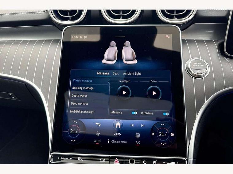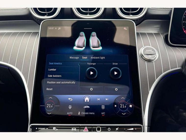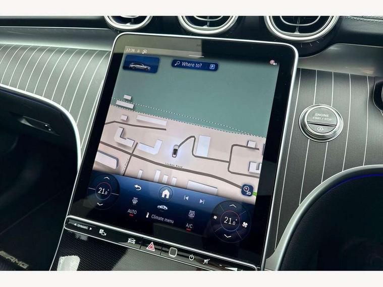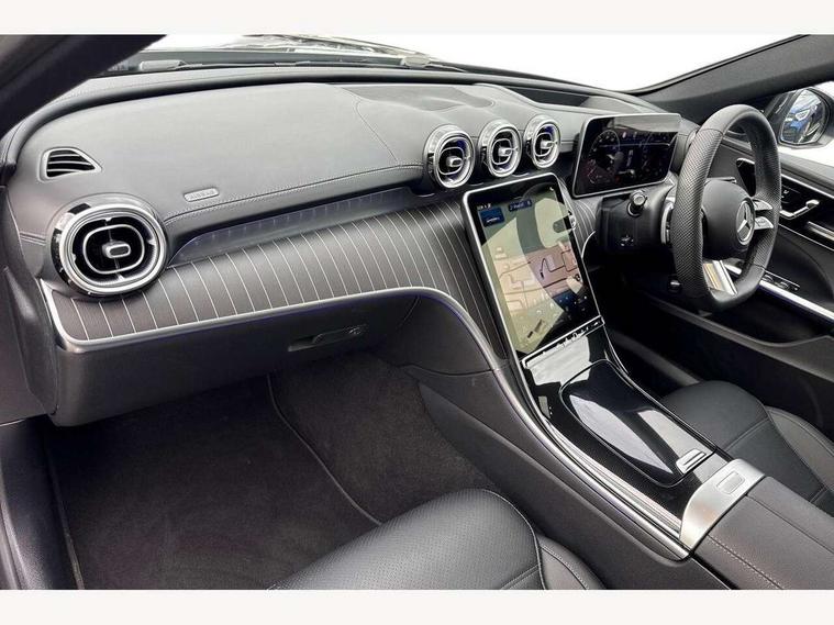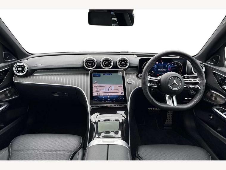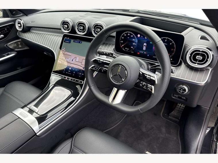 11.9" high resolution multimedia colour display, 12.3" digital instrument cluster display, Active parking assist with PARKTRONIC, Attention assist, DYNAMIC SELECT with a choice of driving modes (Comfort, ECO, Sport, Sport+, Individual), E-call, Extended MBUX functions, Finger print sensor, Fluorescent jacket for driver, Hard disc navigation, Head up Display, MBUX navigation premium, Mercedes me remote services, Outside temperature gauge, Service indicator (ASSYST), Smartphone integration, Sports direct steer speed sensitive steering, Status display for rear seat belts in instrument cluster, Traffic sign assist, Wireless charging system for mobile devices, 9G TRONIC 9 speed automatic transmission, Diesel particulate filter, Sport suspension, Burmester 3D surround sound system, DAB Digital radio, MBUX multimedia system, Adaptive brake lights, Adaptive high beam assist plus, Aluminium roof rails, AMG body styling front apron, rear apron and side skirts, AMG Line exterior, Body coloured bumpers, Body coloured door mirrors, Digital light LED headlamps, Electric windows with one touch opening/closing and obstruction sensors, Electrically adjustable and heated door mirrors, Heat insulating dark tinted glass, LED daytime running lights, LED Indicators, LED tail lights, LED third brake light, Noise acoustic glass, Panoramic glass sunroof, Radiator diamond grille with integrated Mercedes Benz star and louvre silver with chrome pins, Rain sensor with automatic windscreen wiper activation, Rear side wing doors, Rear wiper, Two visible exhaust pipes integrated into rear bumper, 3 seat bench in 2nd row, 40:20:40 split folding rear bench seat, Ambient lighting premium, Ambient lighting with projection of brand logo, AMG floor mats, AMG line interior, Artico man-made leather upholstery, Auto Mercedes-Benz child seat recognition sensor, Black roof liner, Comfort seats, Double cupholder in centre console, Electrically height/reach adjustable steering column, Folding rear seat backrest, Front and rear head restraints, Gearshift paddles on steering wheel, Illuminated door sills with Mercedes Benz lettering, Illuminated glove compartment stowage, Load compartment cover, Multifunction sports steering wheel in nappa leather, Rear top tether child seat ISOFIX attachment, Single front passenger seat, Sunvisors with illuminated vanity mirrors, THERMATIC 2 zone automatic climate control, AIR BALANCE Package - C Class, Boot comfort package - C Class, Easy pack tailgate - C Class, Energizing package plus - C Class, Interior light package - C Class, Keyless go comfort package - C Class, Memory package - C Class, Mirror package - C Class, Parking package with 360 degree camera - C Class, Stowage space pack - C Class, USB package plus - C Class, 3 rear 3 point seatbelts, Active bonnet pedestrian safety measure which detects an impact and raises bonnet, Adaptive brake system with HOLD function and brake drying in the wet, Anti-lock braking system (ABS), Black seat belts, Brake calipers with Mercedes-Benz lettering + perforated front brake discs, Child proof door locks, Drivers knee airbag, Drivers pelvis airbag, Dual stage driver/passenger airbags, Electric parking brake, Electronic Stability Programme (ESP), Front centre airbag between driver and front passenger seats, Front side airbags, Tyre pressure monitoring system, Warning triangle and first aid kit, Window airbags for driver, front passenger and rear passenger, Antitheft alarm system, Interior monitoring system and Increased antitheft protection, Central locking with interior switch, automatic locking and crash sensor with emergency opening function, Chrome surround in electric key, Urban guard vehicle protection plus, Black open pore aluminium lines wood trim with centre console in metal structure finish, Dashboard, instrument panel and beltlines in ARTICO man made leather in nappa look, 19" AMG multi spoke light alloy wheels painted black with high sheen finish, TIREFIT with tyre inflation compressor,