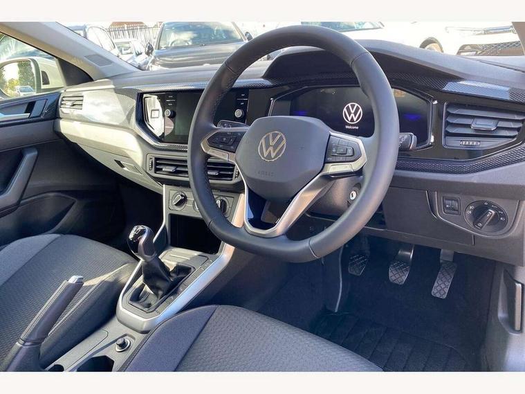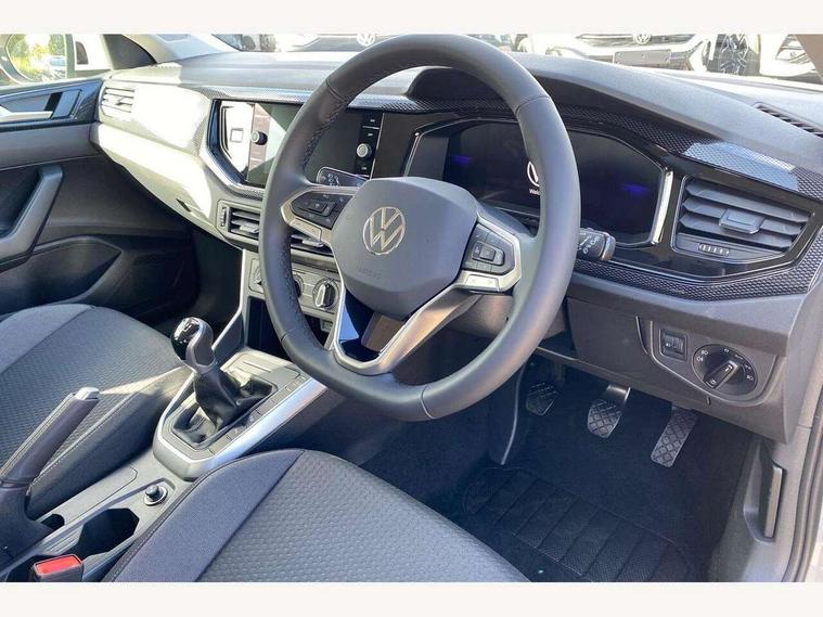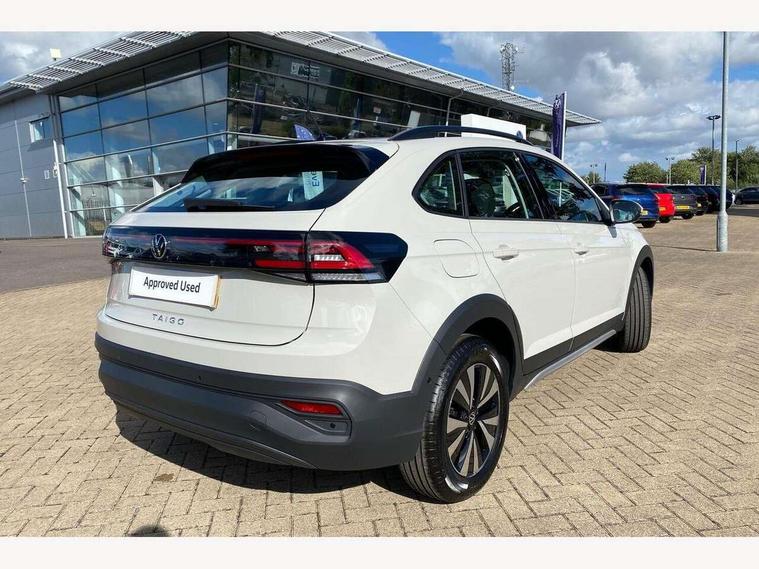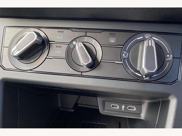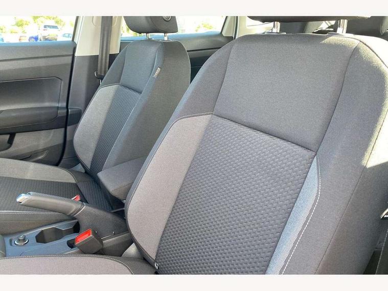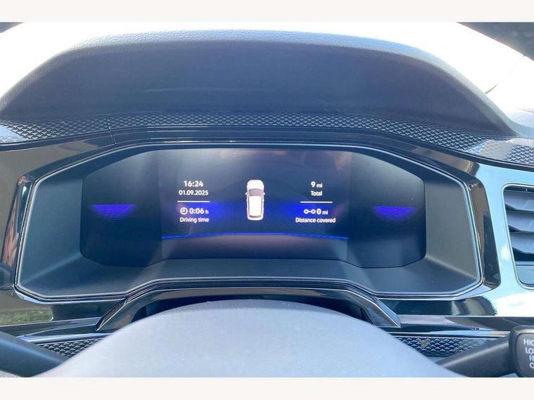 8" Digital cockpit basic display, Advanced driver attention and drowsiness monitor, Dynamic road sign display, e-Call (emergency call), Power Steering, Predictive adaptive cruise control, Travel assist including emergency assist, Washer fluid level indicator, Wireless Charging including Bluetooth, Start-stop system with battery regeneration (recuperation - energy recovery during braking), Digital radio reception (DAB+), WeConnect plus, Ambient lighting with logo projection, Aspherical driver's exterior mirror, Auto headlights, Body coloured bumpers, Body coloured exterior mirror housings and door handles, Electric windows, External USB type C socket and charging sockets, Heat insulating glass windscreen, LED rear combination lamp, LED third brake light, Left convex exterior mirror, Power folding adjustable/heated exterior mirrors and front passenger exterior mirror lowering function, Rear fog light on one side, reversing light on both sides, Rear side wing doors, Rear wash/wipe with intermittent wipe setting, 'Slash/ Austin' Cloth upholstery, 12V socket in centre console, 2 front reading lights, 3 rear head restraints, 3 seat bench in 2nd row, Black carpets, Child seat anchor for child seat system i-Size, 2x top tether and child seat anchor in front on front passenger side, Door and side trim panels in titan black, Driver and front passenger seat height adjustment, Front centre armrest, Handbrake lever handle in leather, Height and reach adjustable steering wheel, Leather trimmed gear knob, Leather wrapped multifunction steering wheel, Luggage compartment floor, Luggage compartment light, Lumbar support for driver's and front passengers seat, Seat covers in titanium black, Single front passenger seat, Split folding backrest with centre armrest and unsplit rear seat bench, Storage compartment under front seats, Sun visors with illuminated vanity mirrors, Chrome Package - Taigo, Drivers assistance pack - Taigo, Light and Sight pack including High beam assist - Taigo, 2 x 3-point seatbelts/outer rear seats with ECE label, 3-point seat belts in front with pretensioner and height adjustment, 3-point seatbelt for centre rear seat, Adaptive driver and front passenger airbags with passenger airbag deactivation function, Driver and front passenger airbags with front passenger airbag de-activation, front side and curtain airbags, Driver and front passenger safety-optimised head restraints, Electronic stability control, Extended and predictive pedestrian/ cyclist protection, Front and rear disc brakes, Front curtain and side airbags with center airbag, Hill start assist, Manual rear child locks, Single tone horn, Tyre pressure loss indicator, Anti-theft alarm system with interior monitoring, backup horn, and towing protection, Lava stone black gloss/matt decorative inserts in dash and front door panels, Low rolling resistance tyres,