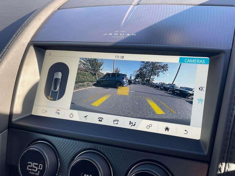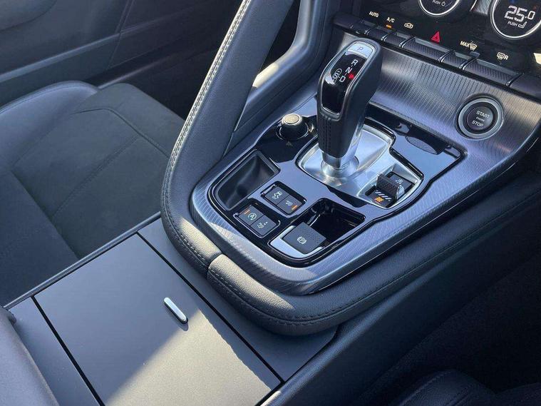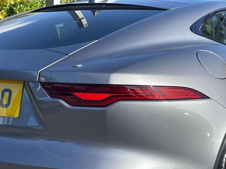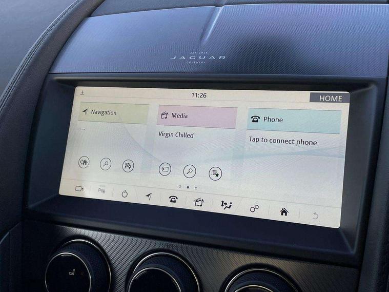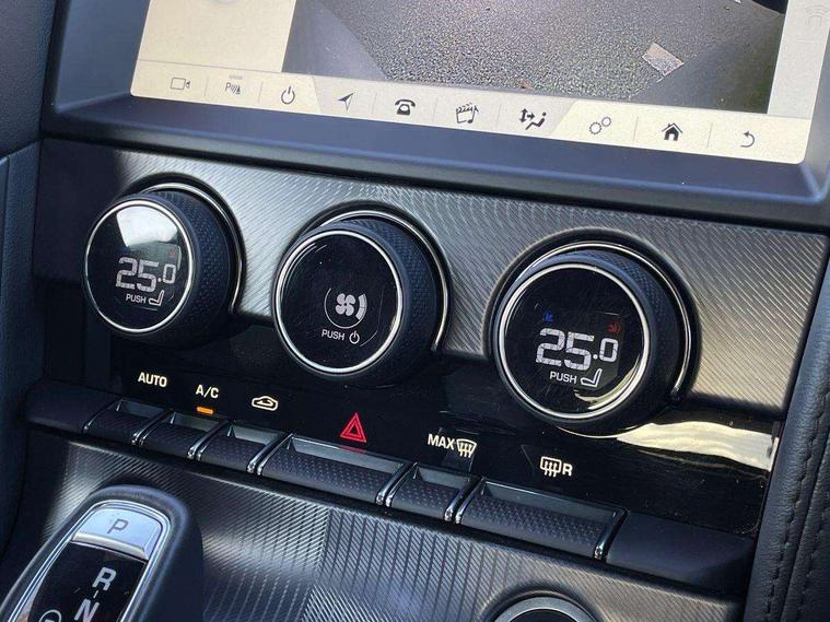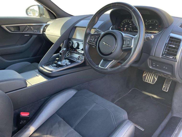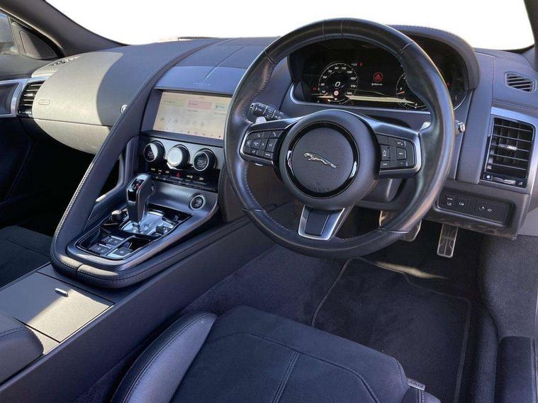 10" touch screen, Android Auto, Apple CarPlay preparation, Bluetooth telephone connectivity, Boot entrapment release lever, Connected navigation pro, Cruise control + speed limiter, Driver condition monitor, E-call, Incontrol pro service, InControl remote premium, Interactive driver display, Lane departure warning system, Lane keep assist, PAS, Push button start, Rear view camera, Stop/start system, Traffic sign recognition with adaptive speed limiter, Trip computer, Open differential with torque vectoring by braking, Passive suspension, Audio remote control, Digital Audio Broadcast radio-DAB, InControl app, InControl protect, Auto dimming rear view mirror, Automatic headlights, Body colour bonnet louvres, Body coloured door mirror caps, Body coloured roof, Chrome exhaust finisher, Electric front windows, F-Type badge, Flush exterior door handles, Headlight washers, Infra red reflective glass, LED 3rd brake light, LED tail lights, Quad outboard mounted exhaust pipes, R Dynamic badge, R-Dynamic exterior body kit, Rain sensing windscreen wipers, Rear boot, Solar attenuating windscreen, Switchable active exhaust, Tinted glass, Bright metal foot pedals, Deployable front air vents, Front centre armrest, Front headrests, Jaguar sense, Low line cubby box, Lumbar support, Overhead console, Pollen filter, Power socket, Rain, Ice and snow mode, Single front passenger seat, Twin front cupholders, USB with 12V socket in centre console, Online pack - F-Type, Smartphone pack - F-Type, 6 airbags - Driver, front passenger, curtain and side airbags, Anti-lock braking system (ABS), DSC - Dynamic Stability Control, Electronic brake force distribution, Electronic parking brake, Emergency brake assist, Emergency braking, Front/rear seatbelt pre-tensioners, Pedestrian contact sensing and deployable bonnet, Seatbelt reminder for driver and front passenger, Tyre pressure monitoring system, Deadlocks, Drive away door locking, Engine immobiliser, Locking wheel nuts, Perimetric and volumetric anti theft alarm, Remote central locking, Two stage unlocking, Valet mode,