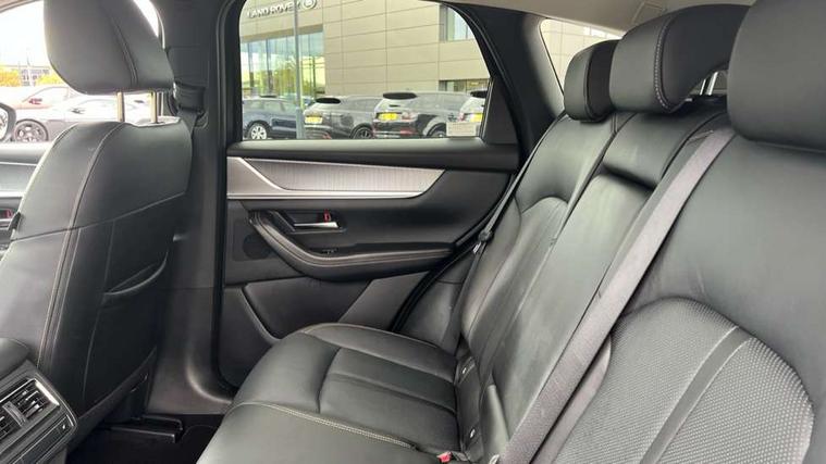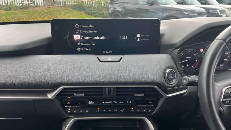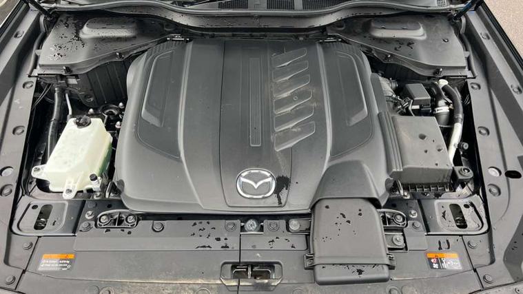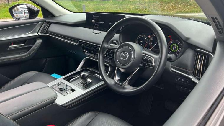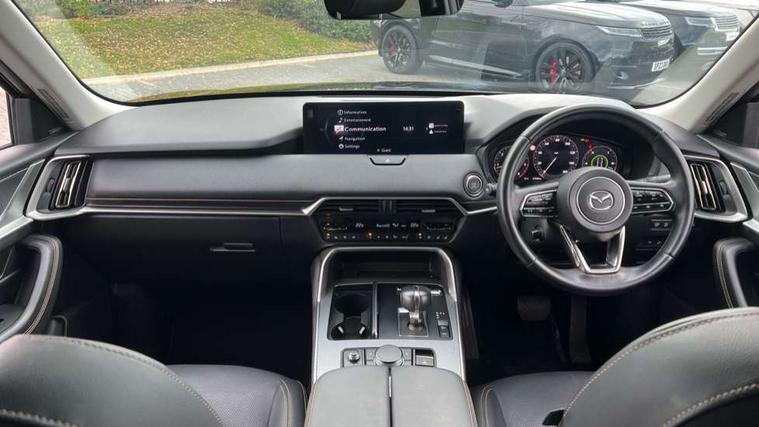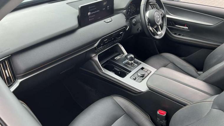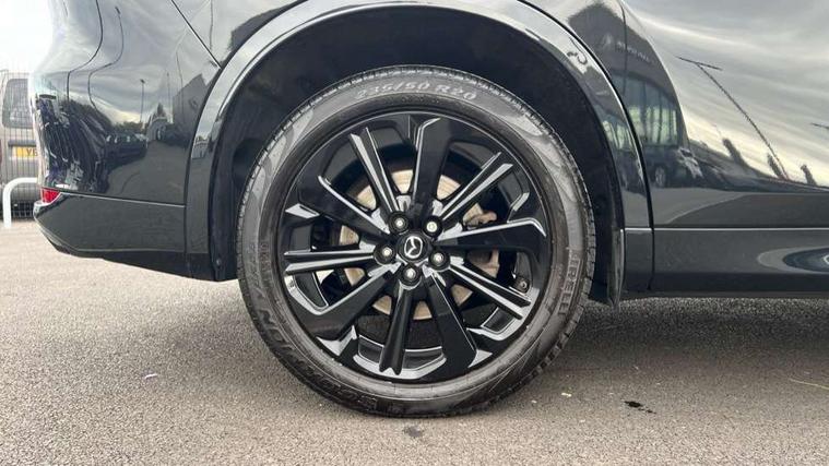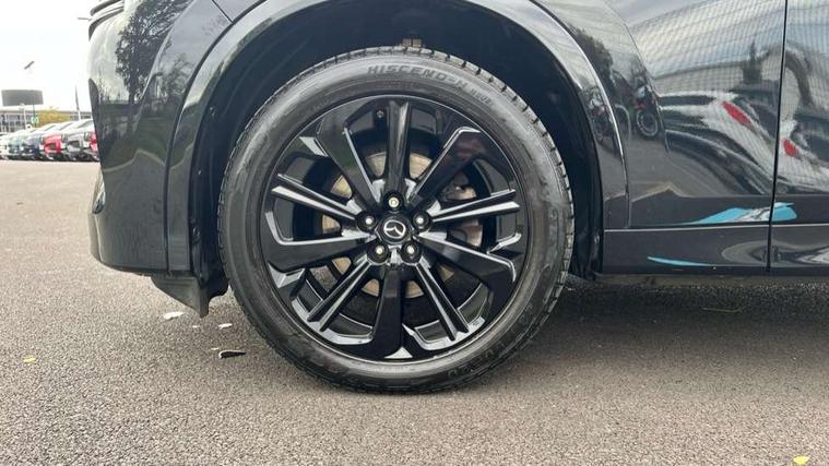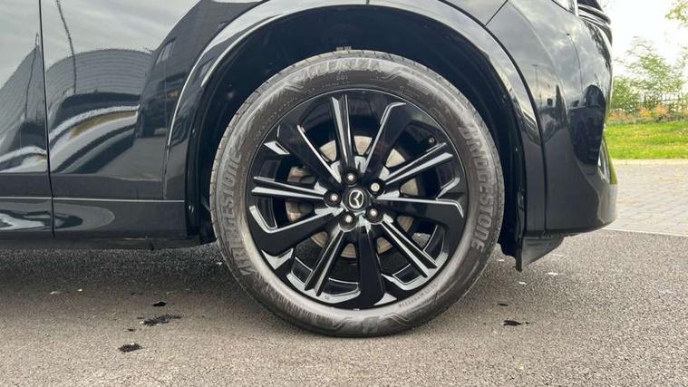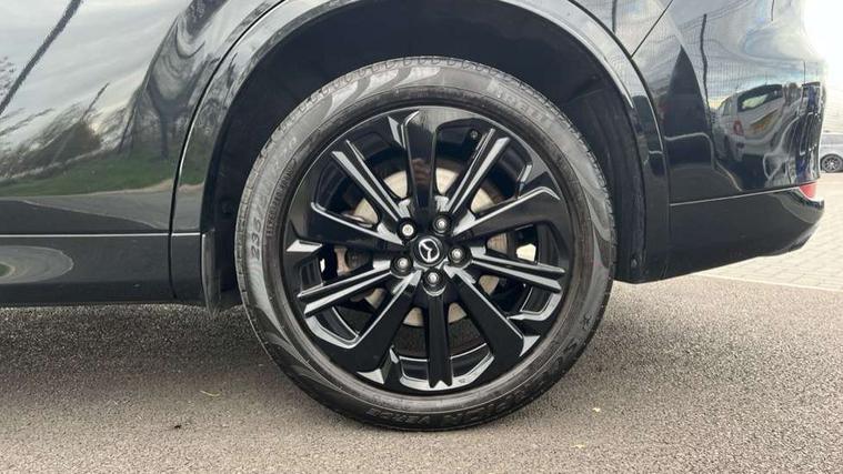 Emergency lane keeping with blind spot assist, Low washer fluid warning light, 12.3" Colour entertainment centre display with mazda connect infotainment, 12.3" TFT Colour display, Adjustable speed limiter, Black faux leather vinyl dashboard with titanium piping, Blind spot assist, Blind spot monitoring with rear cross traffic alert, Cruise control, Distance alert system, Driver attention alert system, Driver Monitoring with personal identification, E-call with GPS, Emergency stop signalling system, Exit warning function, Front and rear parking sensors, Ingress / Egress support and automatic driver position guide, Integrated bluetooth, Intelligent speed assist, Kinematic posture control, Lane keep assist system (LAS) with Lane departure warning system (LDWS), Mazda Driver Personalisation System, Mazda Navigation System with european mapping, Multimedia Commander, PAS, Power lift gate with handsfree function, Power start/stop button, Reversing camera with static guide lines, Speed alert, Traffic sign recognition, Trip computer, Windscreen projected colour active driving display, Wireless apple car play/android Auto, Internal Combustion Engine Sound Emulator, Mi-Drive (Normal, Sport, Off-road, Towing and EV mode), Paddle shift, AM/FM and DAB radio, Bose surround sound system with 12 Speaker, Bose center point, Bass match and audio pilot technology, Steering wheel mounted audio/bluetooth controls, USB-C inputs (x2 front and x2 rear), Auto dimming driver's door mirror, Automatic headlight levelling, B-pillar and C-pillar garnishes in gloss black finish, Body colour roof spoiler, Body coloured bumpers, Body coloured wheel arch and side mouldings, Coming/leaving home lighting function, Dark plated headlight lense, Dark plating finish signature wing in front grille, Dark plating front side garnish, Differentiated front bumper design to accentuate the intake, Dusk sensing headlights, Electric front/rear windows with one touch auto up/down, Electrically adjustable, heated auto power folding door mirrors with memory, Frameless auto dimming interior rear view mirror, Front kodo turn signal, Front wiper de-icer, Gloss black door mirrors, Headlight washers, High beam control, Honeycomb radiator grille in gloss black, LED 3rd brake light, LED headlamps, LED rear signature combination lamps, Rain sensing front wipers with adjustable sensitivity and speed, Rear side wing doors, Rear wiper, Roof pillars and roof lining finished in lighter colour to soften the overall look, Signature LED daytime running lights, Silver decoration panel, 12v power outlet - front, 12V socket in boot, 3 height adjustable rear headrests, 3 seat bench in 2nd row, 40/20/40 split folding rear seats with quick levers in the boot, Ambient lighting, Cargo net, Chrome interior trim accents with steering wheel centre bezel, surround of engine start / stop button and glove box handle, Door panel trim vinyl leather with armrest, Driver and front passenger two rear grab handles with rear coat hooks, Driver and front passenger visors with covered vanity mirror and driver ticket holder, Driver seat electric tilt, slide, recline, height and lumbar adjustment, Driver, front passenger and two rear door pockets, Driver/passenger front seatback pockets, Dual zone climate control air conditioning with rear air vents, Electric telescopic and tilt adjustment steering wheel, Folding rear centre armrest with two cup holders, Front centre storage with two cupholders, Front down lamp with front and rear foot lamps, Front headrests, Front passengers seat electric slide, recline, height and lumbar adjustment, Front seat ventilation with 3-stage setting, Glovebox illumination, Heated front seats with 3 stage setting, Heated leather wrapped steering wheel, Heated outer rear seats with 3-stage setting, ISOFIX child seat anchorage points attached on outer rear seats, Karakuri tonneau cover, Leather upholstery, Leather wrapped gear shift knob, LED illumination luggage compartment, Practical and spacious front centre armrest storage, Rear seat recline function for rear passenger comfort, Remote fold down rear seats, Remote pre-heating/cooling, Roof mounted sunglasses holder, Single front passenger seat, 3 point ELR front seat belts x2 with pretensioners, 3 point ELR rear seat belts, Active bonnet, Anti-lock braking system (ABS), Drivers knee airbag, DSC - Dynamic Stability Control, Electronic parking brake with auto disengage function and auto hold function, Front and rear curtain airbags, Front dual stage driver and single stage front passenger airbags, Front passenger airbag cut-off switch, Front side airbags, Front smart city brake support, Hill decent control, Hill launch assist, Manual rear child locks, Seatbelt reminder for driver/front passenger and rear seats, Traction control, Tyre pressure monitoring system (TPMS), Remote central locking with deadlocking and automatic door lock when driving, Smart keyless entry, Thatcham accredited alarm and immobiliser, Black centre console panel, Dashboard panel - Black Vinyl, 20" Black metallic alloy wheels, Emergency tyre repair kit,