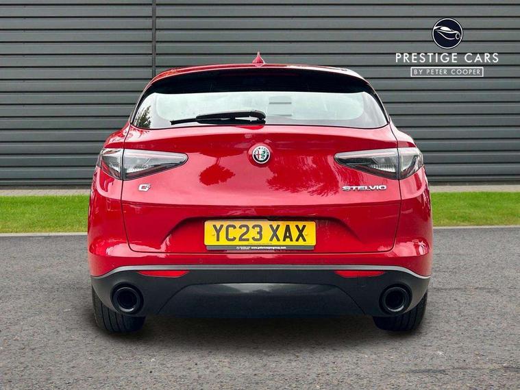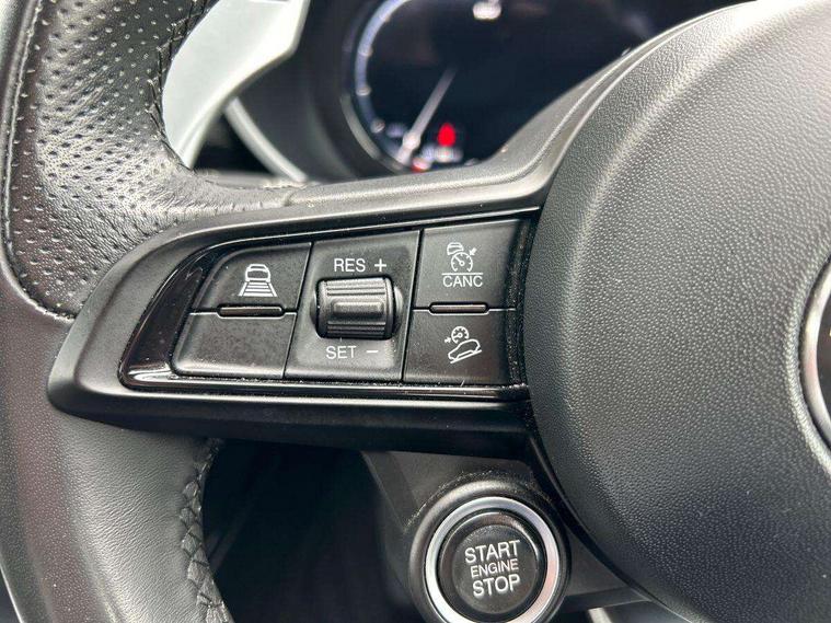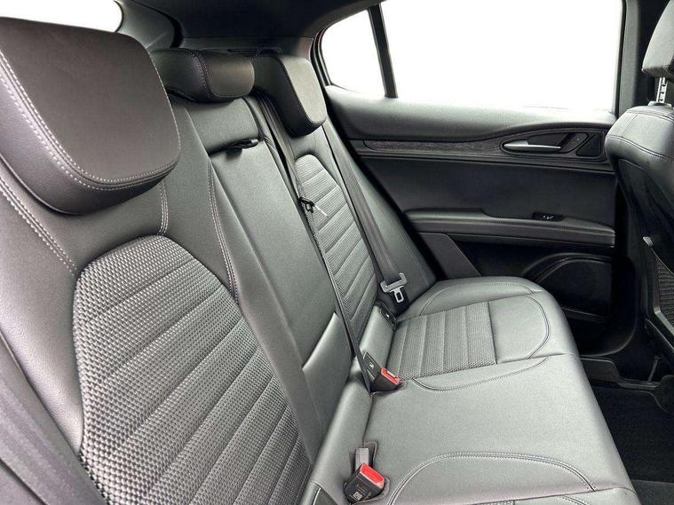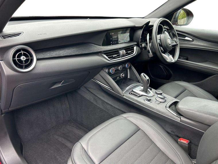 12.3" Full TFT instrument cluster, Active cruise control, Alfa Connect 3D Nav 8.8" Infotainment system (radio, 3D Nav, MP3, aux-in, bluetooth), Alfa connect box, Alfa connected services, Apple car play/Android Auto, Blind spot monitor, DNA unlatched, European maps, Front and rear parking sensors, Lane departure warning system, PAS, Power tailgate, Rear view camera with dynamic grid lines, Remote tailgate release with key fob button, Steering wheel buttons, Stop/start system, TMC Pro, Trip computer, Wireless charging pad, 2 USB Power socket for rear seat, Audio system with 8 speakers, DAB digital audio broadcast, Alfa romeo assistance sticker, Auto high beam assist, Automatic headlights with dusk sensor, Automatic rain sensing wipers, Belly pan, Dark finish V grille, Dark matt exhaust tips, Dark miron scudetto (shield), Dark miron skidplate, Darkened rear lights, Electrically adjustable and folding door mirrors, Electrochromatic autodimming outside rearview mirrors, Electrochromatic rear view mirror, Exterior door handle courtesy lights, Front and rear electric windows, Full LED matrix trilobe headlamps, Heated washer nozzles, LED daytime running lights, LED rear lights, LED third brake light, Rear side wing doors, Rear wash/wipe, 230V/50hz auxiliary power outlet in trunk, 3 seat bench in 2nd row, Air quality control system, Aluminium front kick plate, Aluminium shift paddles on steering column, Aluminium sports pedal and footrest, Dark headlining, Driver and passenger sunvisors with illuminated vanity mirrors, Dual zone auto temp control with humidity sensor, English handbook, Front head restraints, Front/rear floor mats, Functional LED lighting, Rear air vents, Rear headrests, Roller cover for cargo area, Single front passenger seat, Sport leather steering wheel, Sports leather gear knob, Third rear headrest, Ambient light pack - Stelvio, 3 rear 3 point seatbelts, ABS, ASR, Autonomous emergency braking, Driver and passenger airbags, Electronic parking brake, Electronic stability control, Front seat mounted side airbags, Hill descent control, Manual child lock in rear doors, Passenger airbag deactivation system, Rear seat ISOFIX, SOS - Emergency Call Button, Traction control, Tyre pressure monitoring system, Alarm system with bonnet and intrusion protection, Driver and front passenger doors with passive entry and keyless go, Immobiliser, Monotone wheel centre caps, Tyre inflation kit,