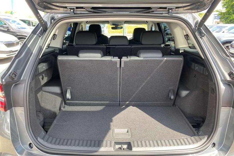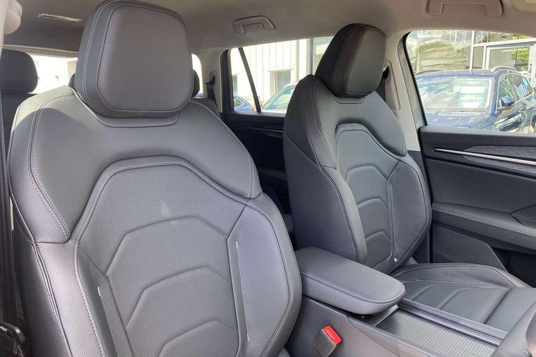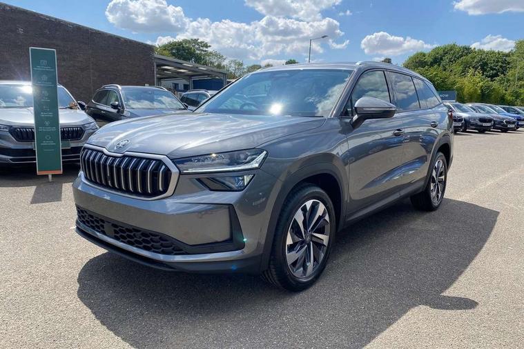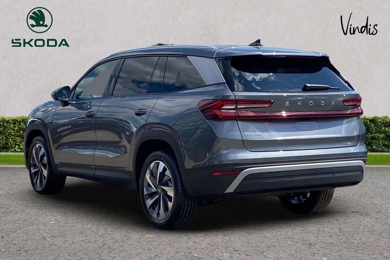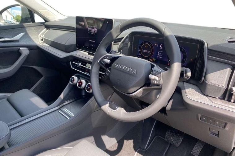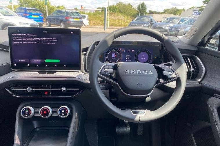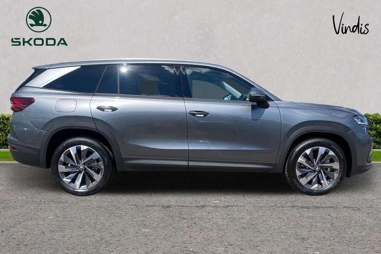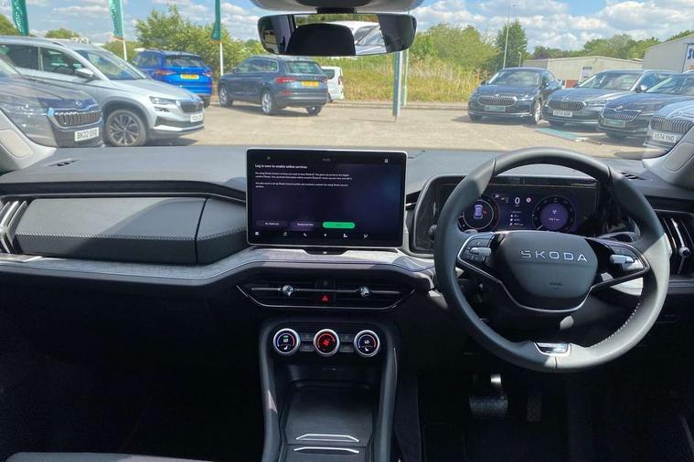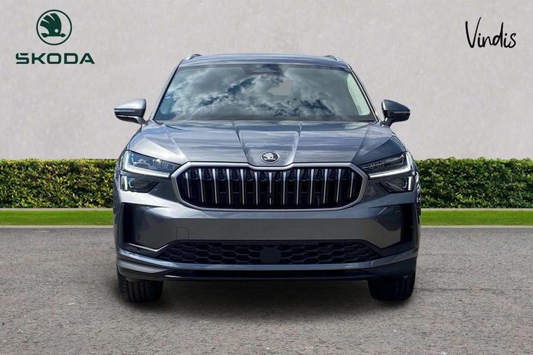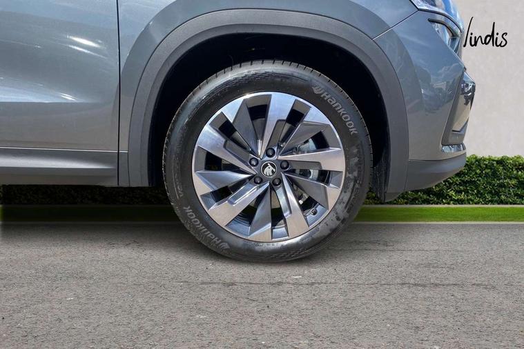 13" satellite navigation touchscreen display, Blind spot detection with door exit warning, Bluetooth system, ChatGPT functionality, Driver alert - Fatigue and drowsiness monitor, Dry display cleaner, Emergency call, Front and rear parking sensors, Front cross traffic assist, Lane assist, PAS, Rear traffic assist, Tailgate unlocking from outside, Traffic sign recognition, USB C Port x 2 in front centre console, Virtual Cockpit - 10.25" digital display, Voice control system, Wireless charging for two smartphones (15W) with cooling function, Wireless SmartLink for Apple CarPlay and Android Auto, Stop/start function, 2x USB-C in the rear, DAB Digital radio, Aero front windscreen wipers with intermittent function, Auto dimming rear view mirror, AWL (all weather lighting) and all weather light with cornering function, Black wheel arch surrounds, Body colour bumpers, Body colour door mirrors and handles, Cornering light and poor weather light, Electric folding /adjustable/separted heated/folding door mirrors, auto dimming with boarding sports and memory function, Electric front and rear windows, Exterior black decorative trims, Front grille with horizontal light strip, Heat insulating glass in windshield, Heated rear window, Ice scraper in fuel tank cap, Invisible tailpipe, LED daytime running lights, LED matrix headlights with AFS and LED fog lights, LED rear light with welcome effect and dynamic turn signals, LED third brake light in rear spoiler, Light assistant with automatic headlight control and coming home feature, Logo projection in door mirrors, Multiple matrix beam, Privacy glass, Rear roof spoiler, Rear side wing doors, Rear window wiper, Red decorative strip between rear LED lights, Safety reflectors on front and rear doors, Unique dark chrome design logo on alloy wheels, Window control switches with black trim, Windscreen wipers with rain sensor, Without engine designation, 1.5l bottle holder points in all door, 1x centre rear reading light, 2 seat bench in 3rd row, 2 spoke multi-function leather heated steering wheel with paddle shift, 3 configurable smart dials with 32mm coloured display, 3 seat bench in 2nd row, 4 foldable roof handles with rear coat hooks, Ambient interior lighting - Dashboard, front-door stowage compartments, front and rear door panels and footwell lighting, Automatic gear selector on steering column, Chrome interior door handles, Driver/front passenger reading lights, Fabric headlining, Fixed bench 40:60:40 split folding backrests, Front and rear floor mats, Front centre armrest with jumbo box storage compartment, cup holder and 12V socket, Height adjustable front headrests, Isofix child seat fittings in outer middle row rear seats and front passenger with top tether, Manually adjustable steering column, Pollen filter, Rear centre armrest with cupholders, Rear seat boot backrest release, Single front passenger seat, Skoda lettering on steering wheel, Storage pocket including mobile phone pockets on the backs of the front seats, Sunvisors with illuminated vanity mirrors, Three rear height adjustable headrests, Ticket holder on A Pillar, Tri zone climate control, Umbrella in door panel x1 made from sustainable materials, Upper and lower glovebox with card holder and coin compartment, USB C port by rear view mirror for charging only (15W), Exterior styling pack - Kodiaq, Auto door release and activation of warning lights in the event of an accident, Driver and front passenger airbag with knee airbag and front passenger airbag deactivation, Electric child locks, Electronic parking brake, ESC (incl. ABS+EMD+MSR+ASR+EDL+HBA+DSR+RBS+ESBS+MCB+TSA+XDS), Front assist with braking reaction to vehicles, pedestrians and cyclists, Front disc brakes, Fuel cut off safety device, Height adjustable front 3 point seatbelts + pretensioners, Hill hold assist, Junction assist with automatic emergency braking, Rear disc brakes, Safety vest holder in door, Seat belt reminder for all seats, Three point rear seat belts, Two tone horn, Tyre pressure monitor, Anti-theft wheel bolts, Immobiliser, Remote central locking with 2 keys,