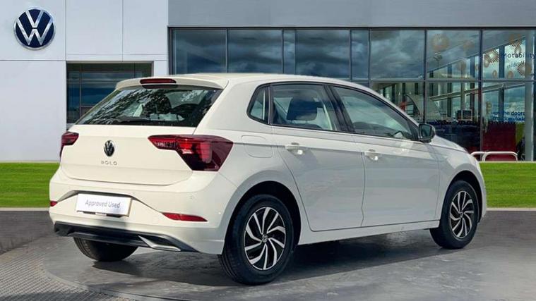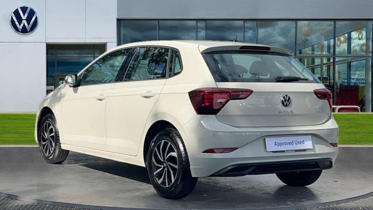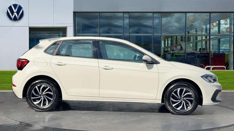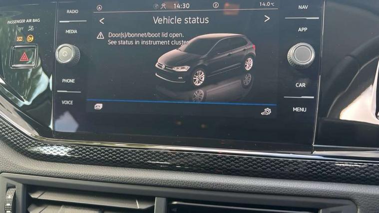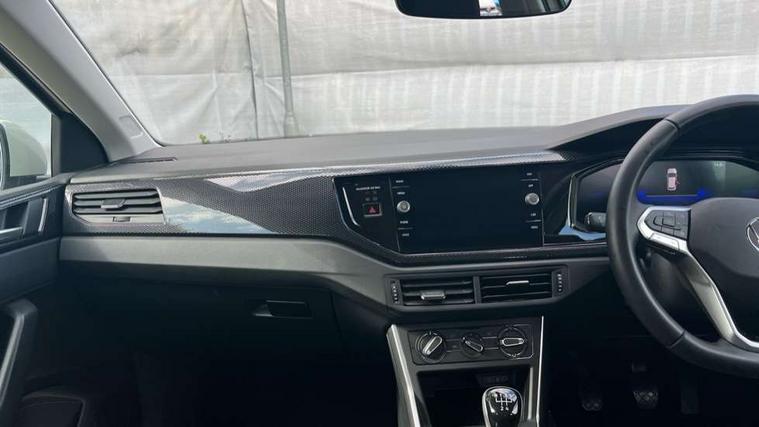 Advanced driver attention and drowsiness monitor, Bluetooth mobile phone interface, Cruise control + speed limiter, Dynamic road sign display, Emergency call service, Lane keeping system Lane Assist, Multifunction camera, Power assisted speed sensitive steering, Preparation for navigation system with media and internet package, Preparation for We connect and We connect plus, Speedo and rev counter, electronic odometer, trip, service interval display and exterior temperature gauge, Standard rear axle, Trip computer, Warning signal and warning light for front and rear seatbelts not fastened, Washer fluid level indicator, Wireless app connect, Front wheel drive, Rear shock absorpion, Start-stop system with battery regeneration (recuperation - energy recovery during braking), DAB Digital radio, Diversity antenna for FM reception, Front and rear 6 speakers, Automatic dimming interior rear view mirror, Automatic headlight control with LED separate daytime running lights with coming/leaving home function, Body colour bumpers with chrome inserts, Body colour door handles, Body colour door mirrors, Electric front windows, Engine badge deletion, Headlight range adjustment, Heat insulating and laminated safety glass windshield, LED Headlights, LED rear combination lamps, Power folding adjustable/heated exterior mirrors and front passenger exterior mirror lowering function, Rain sensor, Rear electric windows, Rear fog light, Rear side wing doors, Rear windscreen washer and wiper with interval delay, Third brake light, 12V power socket in centre console, 2 front and 2 rear reading lights with switch off delay and dimmer, 2 USB-C ports in the front, 2 USB-C charging sockets on the center console in the rear, 3 rear head restraints, 60/40 split folding rear seat and rear seat bench not split, Ceramique roof lining, Chrome plated radiator grille inserts, air vent surrounds and light switch surrounds, Door and side trim panel, Driver and front passenger seat height adjustment, Driver/passenger sunvisors with illuminated vanity mirrors, Front centre armrest, Front seat backrest storage pockets, Front standard seats, Handbrake lever handle in leather, Hartley/Thomas cloth upholstery, Headliner in recycled material, Isofix child seat preparation easy-fit (for two outer rear seats, and front passenger seat) compatible with I-size, Leather trimmed gear knob, Luggage compartment cover, Luggage compartment lighting, Removable luggage compartment floor, Single front passenger seat, Standard climatic zones, Standard pedal cluster, Three spoke leather wrapped multifunction steering wheel, Light and vision pack - Polo, 3 point height adj front seatbelts + pretensioners, 3x3 point rear seatbelts, ABS, Driver and front passenger airbag with front passenger airbag deactivation, Drivers and front passengers safety optimised head restraints, ESC (Electronic stability control) + EDL (Electronic Differntial lock) and ASR (Traction control), Extended and predictive pedestrian/ cyclist protection, Front assist with autonomous emergency braking (for Adaptive Cruise Control ACC up to 130 mph), Front curtain and side airbags with center airbag, Front disc brakes, Hill hold control, Manual child lock in rear doors, Rear drum brakes, Single tone horn, Tyre pressure loss indicator, Alarm with interior protection, Anti-theft alarm system with interior monitoring, backup horn, and towing protection, Anti-theft wheel bolts, Electronic engine immobiliser, Lava stone black gloss/matt decorative inserts in dash and front door panels, Low rolling resistance tyres,