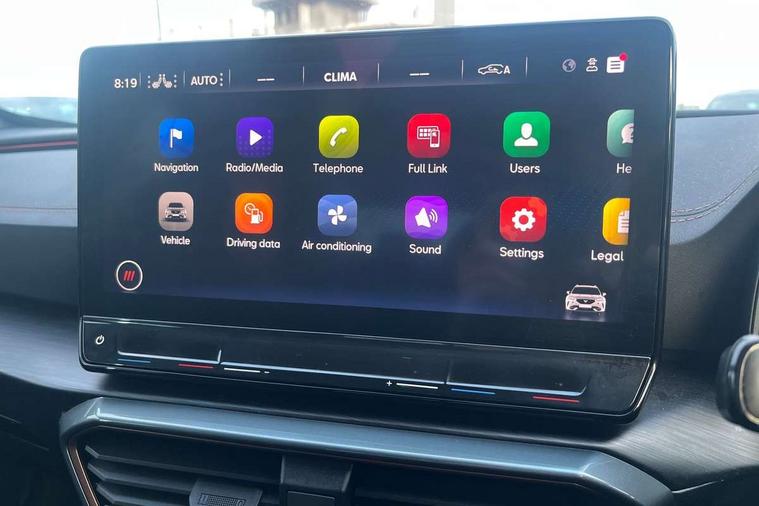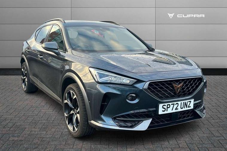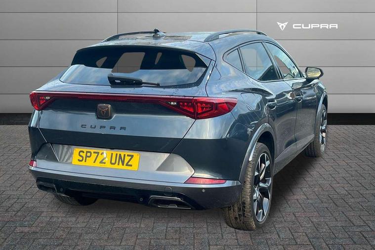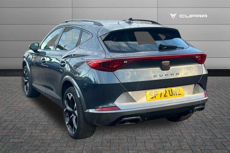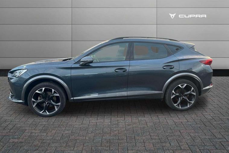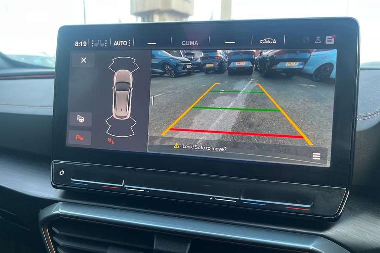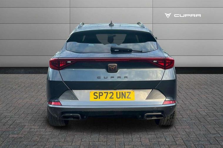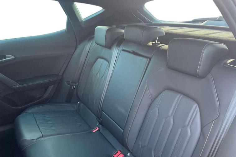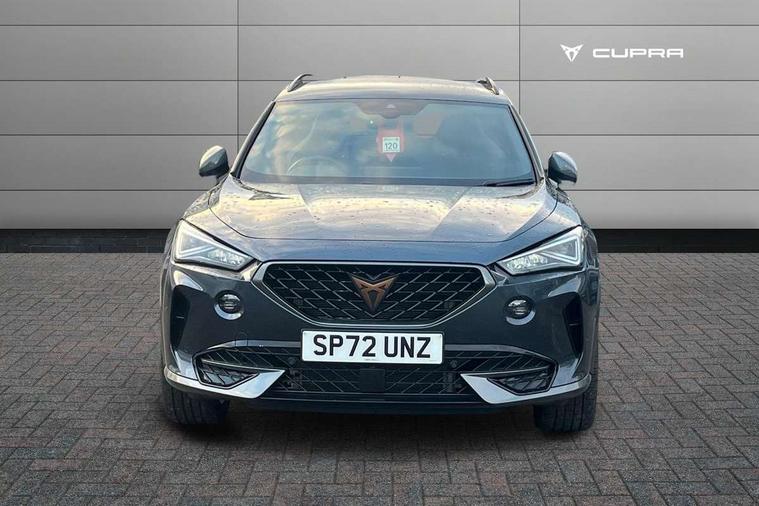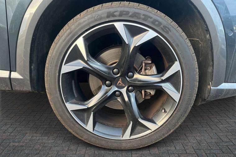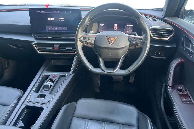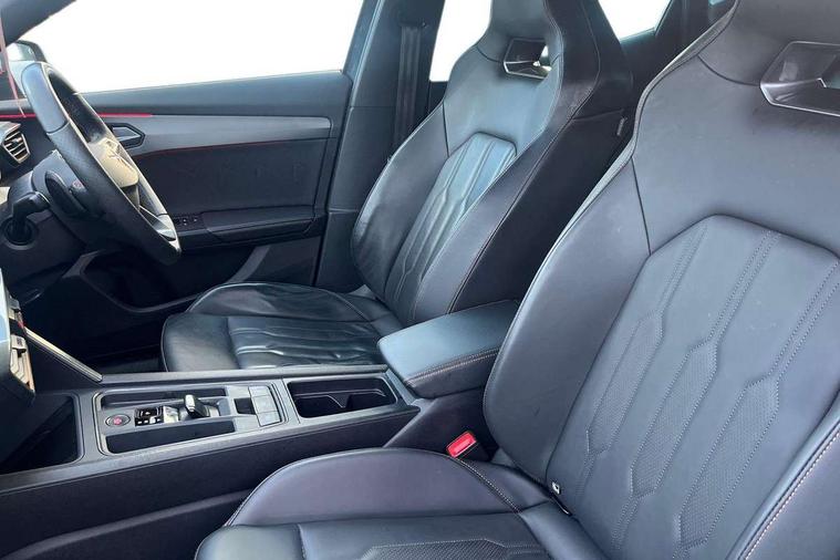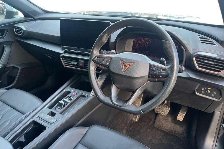 Digital cockpit and configurable dashboard, Driver alert system, Driving profile selection, E-call, Forward collision warning with automatic braking, Lane assist, Navigation system with 12'' Touchscreen Display, Park assist (inc front/rear parking sensors), PAS, Predictive adaptive cruise control with speed limiter, Rear view camera, RPM, trip computer, outside temp gauge, instrument light brightness, low fuel warning light, lights on reminder, gearshift indicator, Service interval indicator, Start/stop system with regenerative braking, Voice control system, Wireless apple carplay, Wireless phone charger, Electronic locking differential and dynamic traction support, Standard suspension, 2 front and 2 rear USB type C sockets, Auxiliary input socket, DAB radio, Auto dimming rear view mirror, Body colour door handles, Body coloured bumpers, Dark grey wing mirror, Daytime running light with automatic headlight control and coming home feature, Dynamic headlight range control, Electric front/rear windows, Electrically adjustable heated and folding door mirrors with memory function, Front fog lamps with cornering function, Gloss black roof rails and window surrounds, LED Headlights, LED Taillights with dynamic indicator, Rain sensing wipers, Rear diffuser with black simulated exhaust pipes, Rear side wing doors, Rear wash/wipe, Third brake light, Tinted rear windows, Welcome lights, 12v power supply in centre console, 12V socket, 12v socket in loadspace, 2 front and 2 rear reading lights, 230V socket, 3 seat bench in 2nd row, 60/40 split rear bench seat with armrest and mechanical seat release, Black headlining, Dust/pollen filter, Front and rear head restraints, Front centre armrest, Height/reach adjust steering wheel, Illuminated interior front door sills, Illuminated sunvisor with mirror, Isofix, Leather multi function heated steering wheel with gear shift paddles, Luggage tie-down hooks, Single front passenger seat, Three zone climate control with control panel in rear, Variable luggage/load compartment floor, Wraparound lighting, Genuine Nappa leather Pack - Cupra, 3 point seatbelts on all rear seats, ABS, Brake control system - ESC and brake booster, Child proof door locks, Driver and front passenger airbags with front passenger airbag de-activation, Electronic parking brake, Front and rear disc brakes, Front side curtain airbags, Hill hold control, Seat belt reminder for front and rear seats, Tyre pressure monitoring system, Anti theft alarm system, Keyless entry and start system (KESSY), Locking wheel bolts, Copper and aluminium interior detailing, 19" 'Exclusive' machined sport matte black and silver alloy wheels,