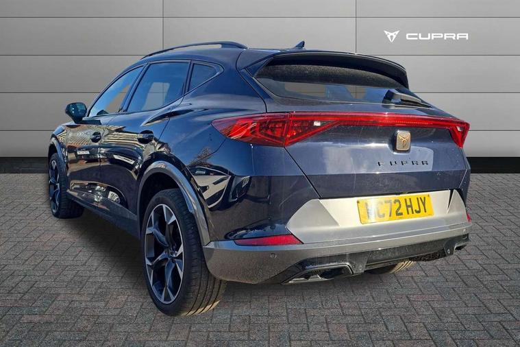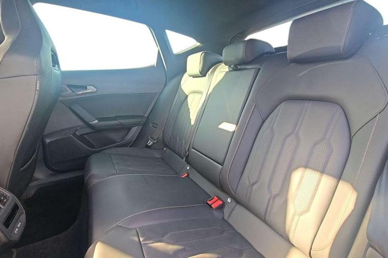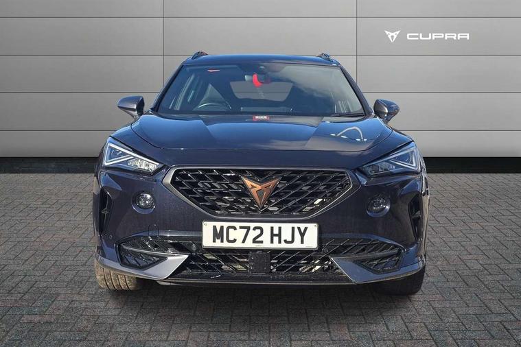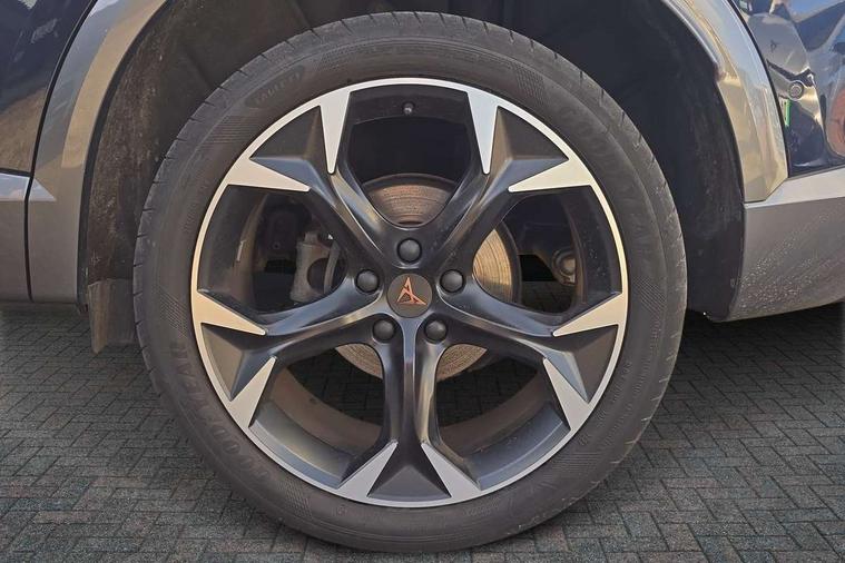 Digital cockpit and configurable dashboard, Driver alert system, Driving profile selection, Forward collision warning with automatic braking, Lane assist, Navigation system with 12'' Touchscreen Display, Park assist (inc front/rear parking sensors), PAS, Predictive adaptive cruise control with speed limiter, Rear view camera, RPM, trip computer, outside temp gauge, instrument light brightness, low fuel warning light, lights on reminder, gearshift indicator, Service interval indicator, Start/stop system with regenerative braking, Voice control system, Wireless apple carplay, Wireless phone charger, Electronic locking differential and dynamic traction support, Standard suspension, 2 front and 2 rear USB type C sockets, Auxiliary input socket, DAB radio, Auto dimming rear view mirror, Body colour door handles, Body coloured bumpers, Dark grey wing mirror, Daytime running light with automatic headlight control and coming home feature, Dynamic headlight range control, Electric front/rear windows, Electrically adjustable heated and folding door mirrors with memory function, Front fog lamps with cornering function, Gloss black roof rails and window surrounds, LED Headlights, LED Taillights with dynamic indicator, Rain sensing wipers, Rear diffuser with black simulated exhaust pipes, Rear side wing doors, Rear wash/wipe, Third brake light, Tinted rear windows, Welcome lights, 12v power supply in centre console, 12V socket, 12v socket in loadspace, 2 front and 2 rear reading lights, 230V socket, 3 seat bench in 2nd row, 60/40 split rear bench seat with armrest and mechanical seat release, Black headlining, Dust/pollen filter, Front and rear head restraints, Front centre armrest, Height/reach adjust steering wheel, Illuminated interior front door sills, Illuminated sunvisor with mirror, Isofix, Leather multi function heated steering wheel with gear shift paddles, Luggage tie-down hooks, Single front passenger seat, Three zone climate control with control panel in rear, Variable luggage/load compartment floor, Wraparound lighting, Genuine Nappa leather Pack - Cupra, 3 point seatbelts on all rear seats, ABS, Brake control system - ESC and brake booster, Child proof door locks, Driver and front passenger airbags with front passenger airbag de-activation, Electronic parking brake, Front and rear disc brakes, Front side curtain airbags, Hill hold control, Public e-call, Seat belt reminder for front and rear seats, Tyre pressure monitoring system, Anti theft alarm system, Keyless entry and start system (KESSY), Locking wheel bolts, Copper and aluminium interior detailing, 19" 'Exclusive' machined sport matte black and silver alloy wheels,