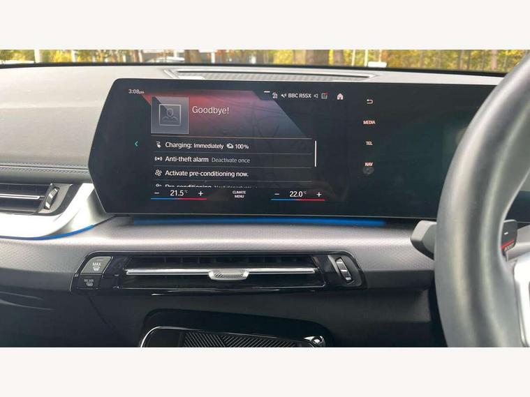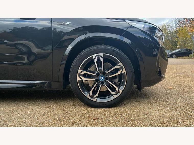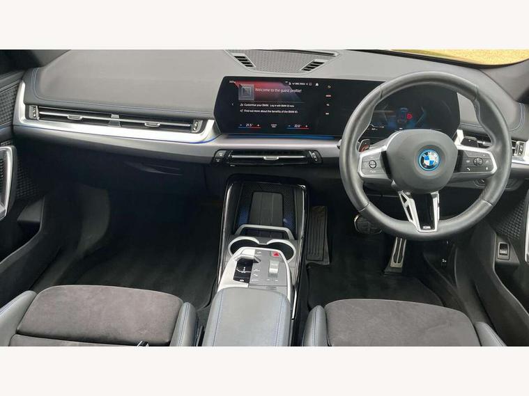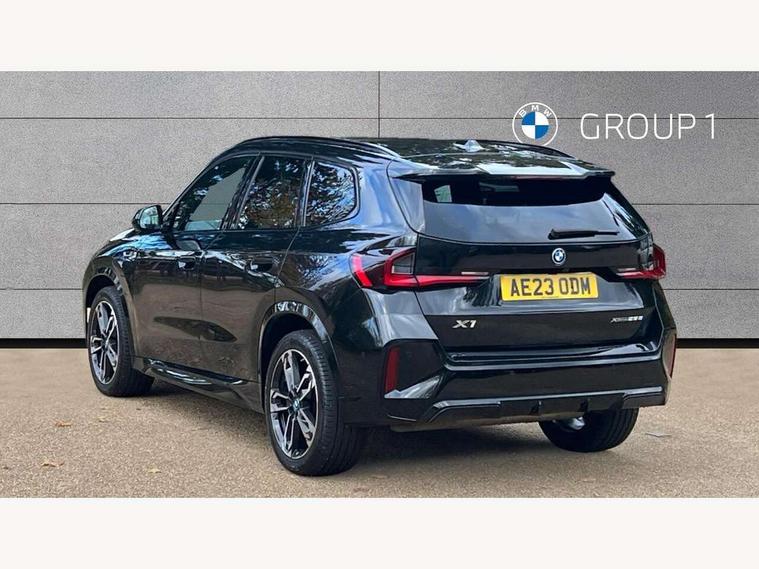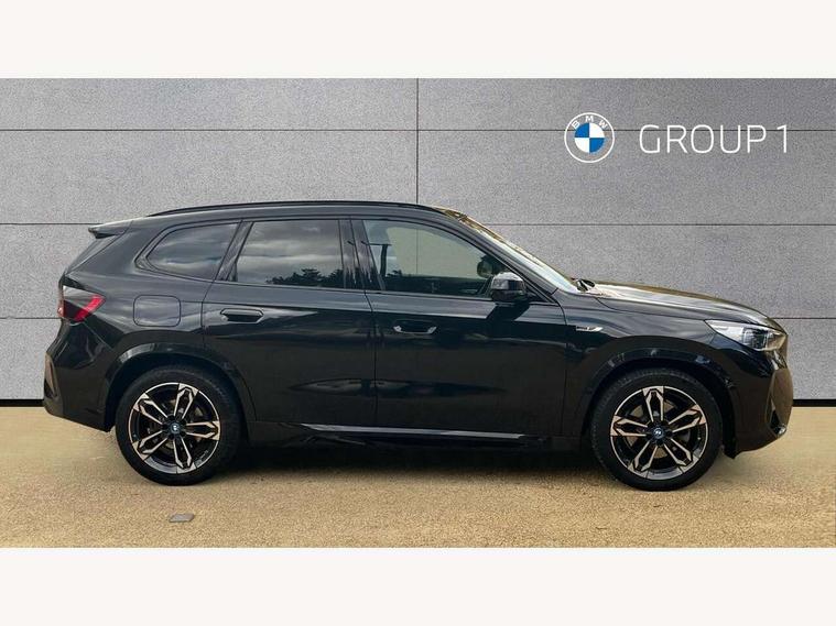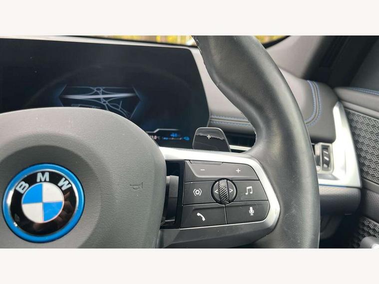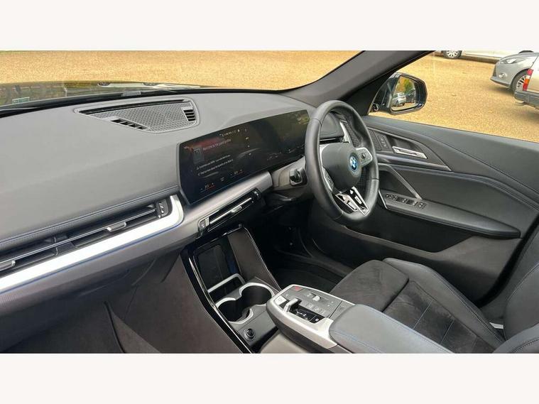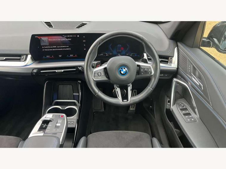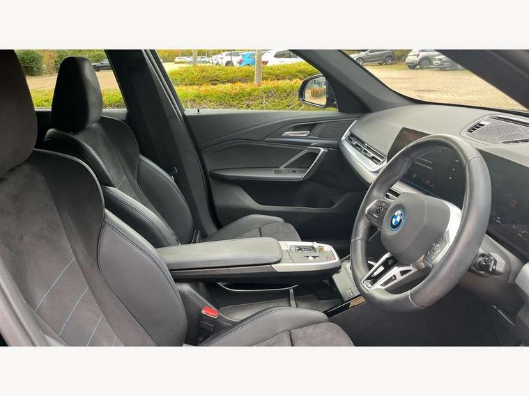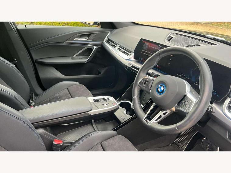 Active Guard + lane departure warning, speed limiting, front collision warning, Left turn warning with brake function and evasion assist, Attentiveness assist, Automatic start/stop function, BMW Live Cockpit Plus with 10.25" instrument cluster and 10.7" display, BMW Online services, BMW Teleservices, Brake pad wear indicator, Condition based service, Connected eDrive Services, Drive off assistant, Electrically opening/closing tailgate with opening/closing with remote control and contactless opening and closing, iDrive controller, Language version English, My Modes, Parking Assistant with Reversing Assistant, active PDC, Lateral Parking Aid, Rear View Camera and Park Distance Control, Personal Profile - automatic lock when driving away selectable, Servotronic PAS, Tyre puncture warning system, Widescreen display, Wireless charging, 45 Litre fuel tank, eDrive exterior sound, Fast charging cable professional mode 3 for public charging, M Adaptive suspension, Mode 2 flexible charger, Performance Control, Petrol Particulate Filter, Steptronic transmission with double clutch and gear shift paddles, xDrive intelligent four wheel drive system, BMW iconic sound electric, DAB Digital radio, Auto dimming interior rear view mirror, Badge on engine compartment lid and tailgate, Contoured rear roof spoiler in vehicle colour with side aeroblades in black high-gloss, Dynamic brake lights, Electric adjustable heated door mirrors, Electric windows - front and rear, with open/close fingertip control, anti-trap facility and comfort closing, Folding door handles integrated flush with surface, Folding wing mirrors with auto dimming, Follow me home headlights, Front and rear bumper panel with M specific design, in body colour with inserts in black high gloss, Front door exit lights, Front entry sills aluminium inserts with M inscription, Heated rear window, High gloss shadow line includes B-pillar trim panel/window cavity cover/window frame/window guide rail front doors/door mirrors in high gloss black, Invisible exhaust tailpipe, Key with M identification, LED 3rd brake light integrated in rear spoiler, LED daytime running lights, LED number plate light, M identification on the sides, M roof rails high gloss shadow line, M specific radiator grille in satinated aluminium, Matt black roof strips, Model inscription on right tailgate, Rain sensor including auto headlights activation, Rear side wing doors, Rear wiper, Side sill covers with M specific design in body colour, Trailer stabilisation logic, Welcome lighting, Windscreen washer nozzle for rear view camera, Windscreen wipers with front and rear heated washer nozzles, 12V - Power sockets with front centre console and luggage compartment, 2 cup holders in front, 2 x USB Type C ports for charging and data transmission (front centre console) and 2 x USB Type C ports for charging (rear centre console), 3 rear headrests, 3 seat bench in 2nd row, 3 upper retaining strap clips integrated into rear panels of seat backrests, 40:20:40 split folding rear seats, Ambient interior lighting, Anthracite headlining, Anthracite Velour front and rear floormats, Bottle trays in all doors, Child seat ISOFIX attachment for two outer rear seats and front passenger seat with anchorage points, Clothes hook rear, Driver and front passenger heated seats, Dual zone automatic air conditioning, Front and rear door pockets, Front centre console storage compartment, Front sports seats, Front/rear adjustable head restraints, Glove compartment, Light on right in luggage compartment, M sport leather steering wheel, Manual steering column height and depth adjustment, Map pockets, Middle centre console storage compartment, Rear armrest in door trim panel, Single front passenger seat, Sport leather multifunction steering wheel with thumbrests and operation of instrument display, audio, telephone and driver assistance, Storage compartment with folding cover under centre console armrest cushion, Connected Package Professional - X1, Technology pack - X1, ABS/EBD, Automatic hold function, Automatic Stability Control (ASC), BMW emergency call, Braking readiness, Cornering brake control (CBC), Crash Sensor - activates hazard/interior lighting + unlocks doors, Driver/Front Passenger airbags, Driver/front passenger side airbags, Dry braking, Dynamic stability control + (DSC+), Electromechanical parking brake, Energy recovery system, Front and rear brake discs, Front and rear head airbags, Front passenger airbag deactivation, Integrated brake system, PC iBrake PostCrash approach control warning with light braking function, Rear door child safety locks, Three point seat belts in all seats, Tyre pressure monitor, Warning triangle, Alarm system with tilt sensor, monitoring doors, bonnet interior and tailgate, Closing system with central locking, Locking wheel bolts, Luxury instrument panel, Tyre repair kit (including Tyre sealant and 12V Compressor),