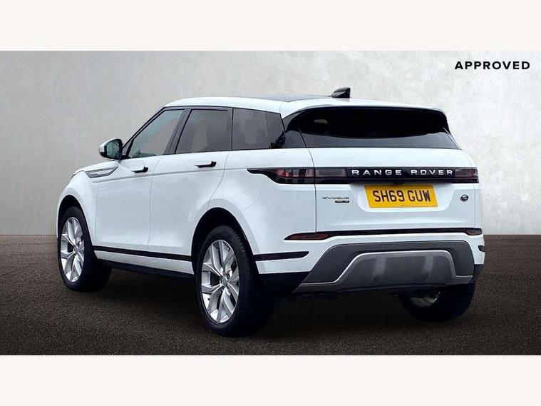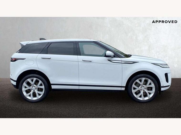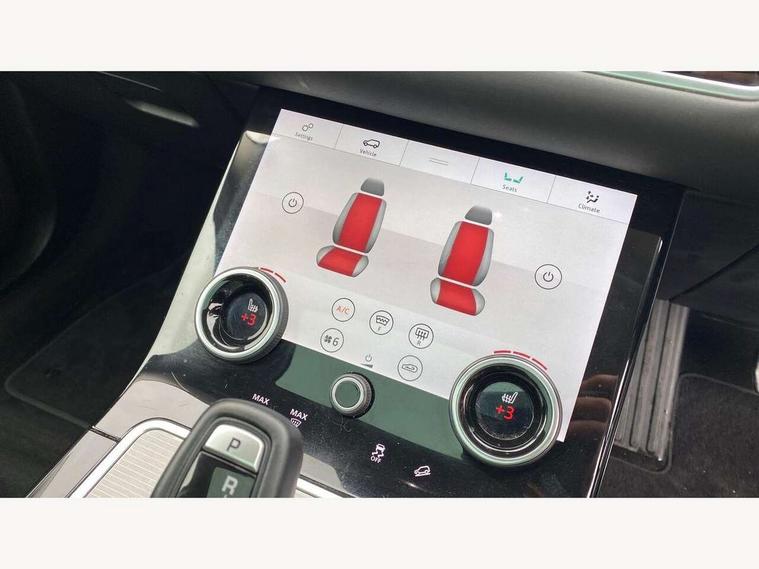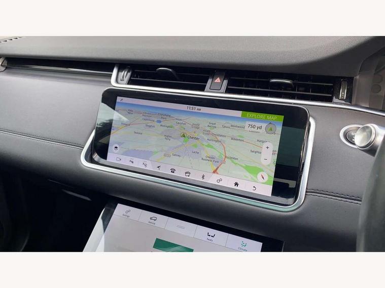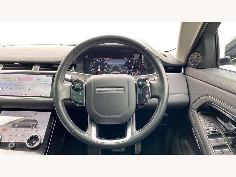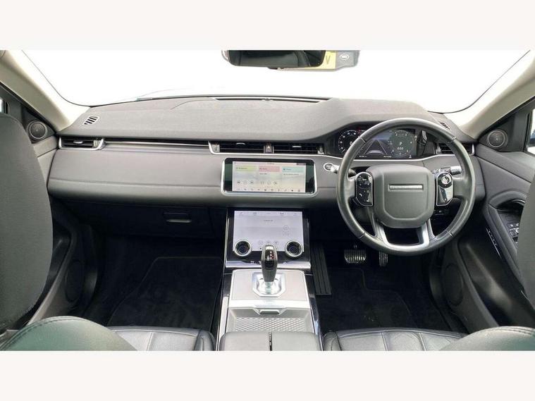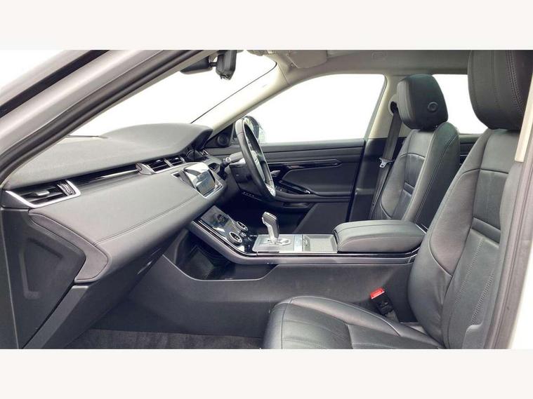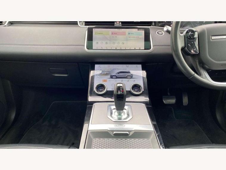 360 degree parking aid, Android Auto, Apple car play, Bluetooth connectivity, Brake pad wear indicator warning light, Clear exit monitor, Driver condition monitor, Duo touch pro, Electronic power assisted steering (EPAS), InControl remote, Interactive Driver display instrument cluster, Land Rover InControl apps, Lane keep assist, Navigation pro system, Park assist - Parallel, perpendicular and parking exit, Pro services and wifi hotspot, Push button starter, Rear traffic monitor, Smart settings, Traffic sign recognition with adaptive speed limiter, Voice control system, All terrain progress control, Efficient Driveline, Passive suspension, Terrain Response 2 Auto, Digital Audio Broadcast radio-DAB, Steering wheel mounted controls, Automatic headlight levelling, Electric windows with one touch open/close and anti trap, Evoque badge, Flush deployable exterior door handles, Heated rear window with timer, Heated washer jets, Heated windscreen, Power fold, auto-dimming, heated door mirrors with memory and approach lights, Rain sensing windscreen wipers, Rear fog lights, Tailgate spoiler, 40:20:40 split folding rear seats, Isofix system on outer rear seats, Overhead lighting console, Overhead stowage for sunglasses, Passive front head restraints, Rear air vents, Rear centre headrest, Sunvisors with illuminated vanity mirrors, Twin front cupholders with cover, Twin sliding front centre armrest, 3 rear 3 point seatbelts, Anti-lock braking system (ABS), Customer configurable autolock, DSC - Dynamic Stability Control, Electronic brake force distribution, Electronic parking brake, Electronic traction control, Front and rear seatbelt reminder, Hill descent control, Hill launch assist, Low traction launch, Power operated child locks, Roll stability control, Six airbags - Driver and passenger airbags/driver knee airbag/front side airbag and curtain airbags, Torque vectoring brake, Tyre pressure monitoring system, Alarm, Immobiliser, Intrusion sensor, Locking wheel nuts,