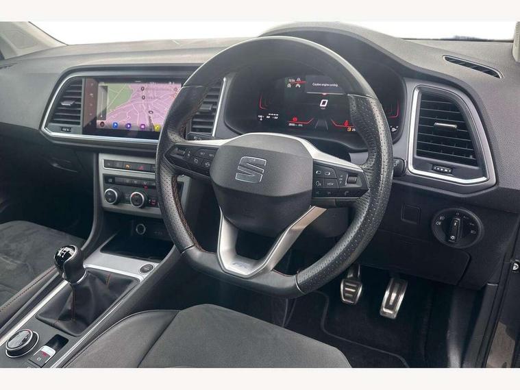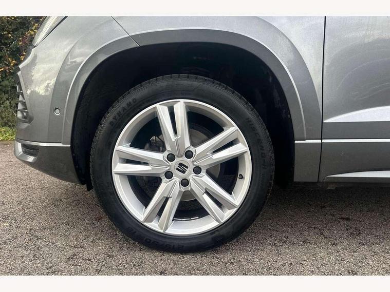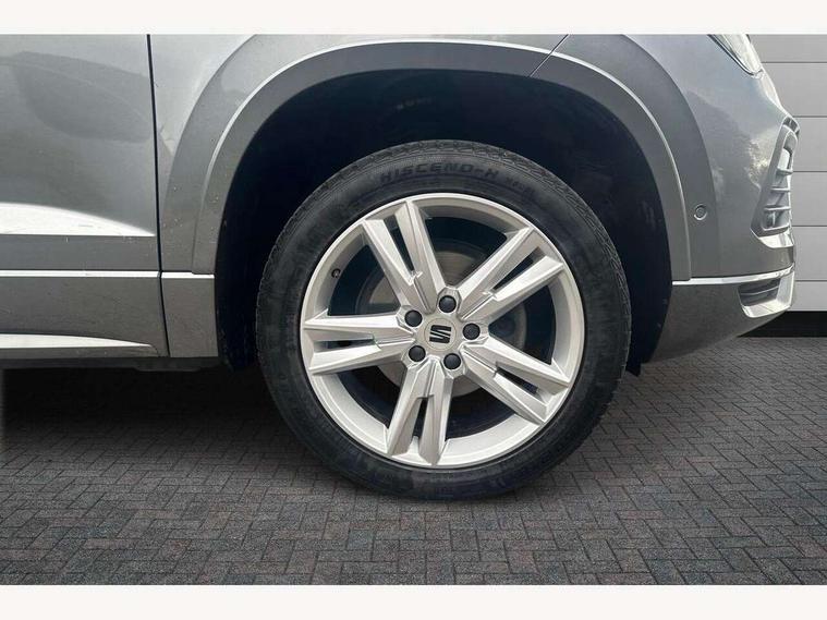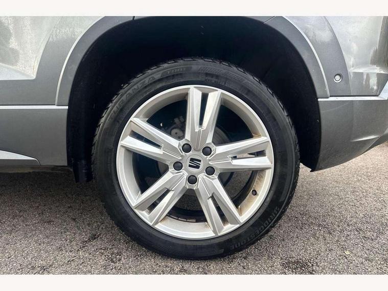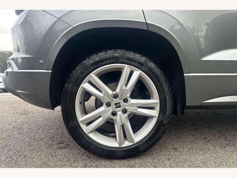 8" Digital cockpit, Colour multi-function on board computer display, Cruise control system with speed limiter, E-call, Outside temperature gauge, Progressive power assisted steering, SEAT drive profile with driving experience button - Normal, Sport, Eco and Individual mode, steering and throttle response, Self parking functionality (includes front and rear parking sensors), Start/stop system, Tailgate, Trip computer, Wireless full link smartphone integration, Wireless phone charger, Steering wheel mounted audio/phone controls, Black roof rails, Black side window trim, Body colour bumpers, Body coloured wheel arch surrounds, Chrome front grille frame, Dark tinted rear windows, Daytime running lights, Door mirrors with welcome light silhouette, Dynamic headlight range control with self adjusting whilst driving, Electric adjustable/heated/folding door mirrors, Front and rear electric windows, Full LED headlamps with lens and LED front fog lamps with cornering function, Illuminated aluminium front door sill, LED 3rd brake light, LED rear tail lights with dynamic indicators, Rear exhaust tailpipe, Rear fog lights, Rear side wing doors, Rear wash/wipe, Roof spoiler, Variable front intermittent wipers, 12v socket in front, 3 seat bench in 2nd row, 60/40 split folding rear seat, Aluminium pedals, Dinamica upholstery with front comfort seats, Drawer under right front seat, Dual zone climate control, Front and rear head restraints, Front centre armrest, Front seat back storage pockets, Height adjustable driver and passenger seat with lumbar adjustment, ISOFIX points in outer rear seats with top tether anchorage points, Leather sports steering wheel and gear knob, Rear armrest and easy back seat release mechanism from boot, Single front passenger seat, Convenience pack - Ateca, Interior lighting pack - Ateca, Navigation system pack with DAB - Ateca, Safety and driving pack with attention and drowsiness assist - Ateca, 3x3 point rear seatbelts, ABS, Traction control system (TCS), Electronic stability control (ESC) and Electronic differential lock system (XDS), Airbags - Driver and front passenger airbag with deactivation, front side, two curtain and driver's knee airbags, Electric parking brake with auto hold function, Front and rear seatbelt reminder, Front assist with autonomous emergency braking, Hill hold control, Manual rear child locks, Single tone horn, Tiredness recognition system, Tyre pressure monitoring system, Alarm, Keyless entry, Locking wheel bolts, Remote central locking, Chrome interior detailing, 18" Brillaint silver alloy wheels,