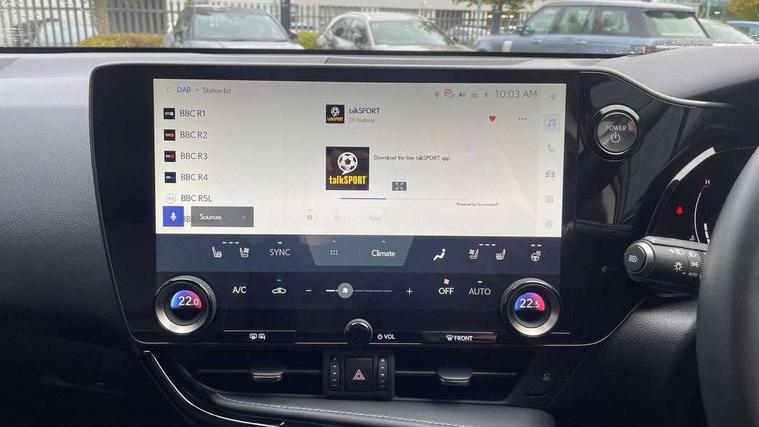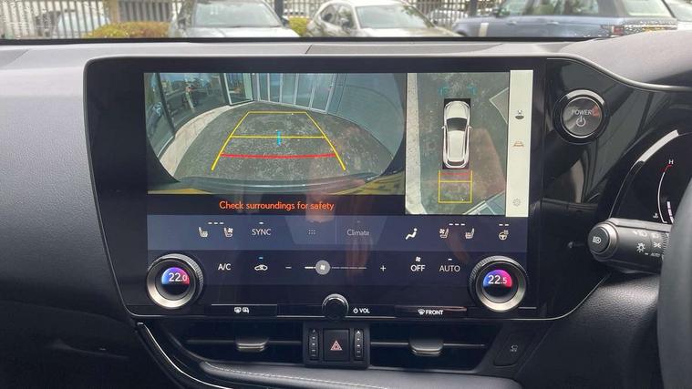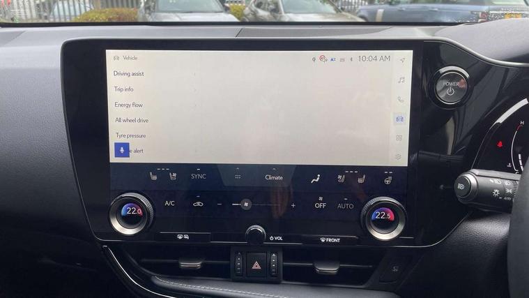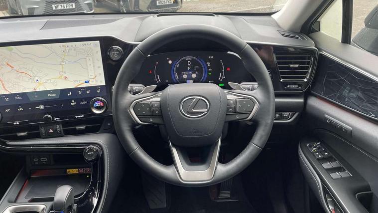 4 driving modes EV/Eco/Normal/Sport, 7" display in instrument binnacle, Bluetooth telephone connectivity, eCall emergency system, Electric speed sensitive power steering, Intelligent parking sensors - 4 front and 4 rear, Lane change flasher function, Lexus link connect - Cloud based navigation, cloud based voice assistant, always online and 9.8" VGA touchscreen, Push button starter, Reversing camera with back guidelines, Service interval indicator, Tailgate, Wireless Apple CarPlay/Android Auto, All Wheel Drive (AWD), Hybrid automatic transmission, Vehicle Dynamics Integrated Management (VDIM), Vehicle Stability Control (VSC), 10 speakers, 4 USB ports - 2 front, one USB C, 2 rear USB C, DAB Digital radio, Auto dimming interior rear view mirror, Automatic headlights, Bi LED headlights, Double hidden exhaust pipes, Front and rear one touch power windows, with anti-jam protection, Heated, auto-folding, auto-dimming outside mirrors with reverse tilt function and turn indicators, LED brake lights and rear lights with emergency brake signal, LED daytime running lights, LED Indicators, Light green UV acoustic rear doors & rear glass, Power back door system, Rain sensor windscreen wipers, Rear side wing doors, Rear wiper, Roof rails, 12V accessory port centre console and luggage compartment, 2 cupholders in front centre console, 2 x fixed shopping bag hooks in boot, 2 x sun visors with vanity mirror and lamp, 3 seat bench in 2nd row, 4 x tie down hooks in the boot, 6 tie down hooks in boot, 6 way manually adjustable front seats, 60/40 split folding rear seat, Adjustable rear seat backrest, Card holder installed in driver and passengers sun visors, Centre armrest with storage box, Dual climate control air conditioning system, Front and rear head restraints, Front and rear textile carpet mats, Front passenger seat, Heated front seats, Leather gear lever, LED interior illumination, Power adjustable leather steering wheel with paddle shifts, Rear centre armrest with 2 cupholders, Tahara leather upholstery, Whiplash Injury Lessening (WIL) feature (active headrest) for seats, 2 x Isofix child rear seat restraints, 3 point ELR front seatbelts with pretensioners, 3x3 point rear seat belts, ABS, Adjustable seat belt anchor points, Driver and front passenger 2 stage airbag, Driver/front passenger side airbags, Drivers knee airbag, E-Latch electric door release, EBD + Brake Assist, ECB (Electronically Controlled Brake System), Electronic parking brake, Front and rear curtain shield airbags, Front center airbag, Front passenger seat cushion airbag, Hill assist control, Lexus safety system - dynamic radar cruise control, pre collision system day and night, lane tracing assist, road sign, automatic high beam, OTA, Manual rear child locks, Passenger airbag cut-off device, Traction control, Tyre pressure warning, Anti-theft system with alarm, intrusion sensor, glass breakage sensor, tilt sensor and engine immobiliser, Locking wheel nuts, Speed sensitive auto door locking, Ultra Wide Band (UWB) Anti-theft system, VIN Window etching, Black microdot inlay, Tyre repair kit,