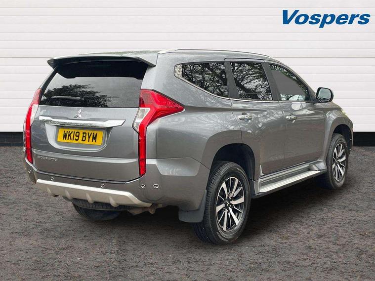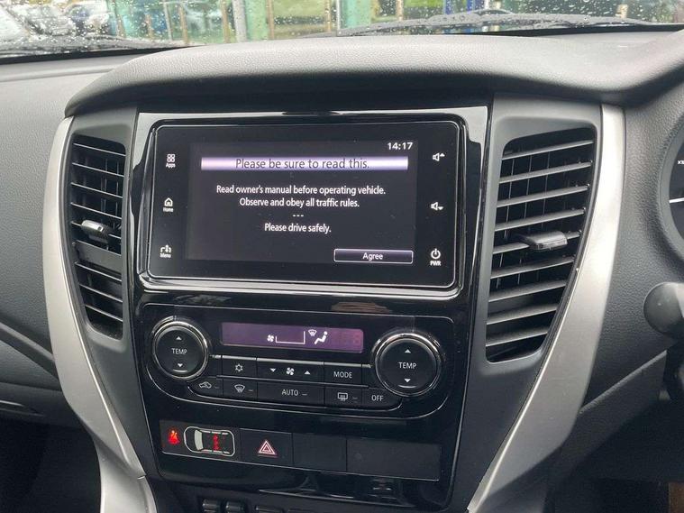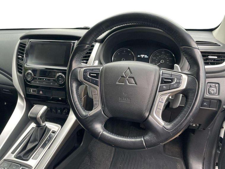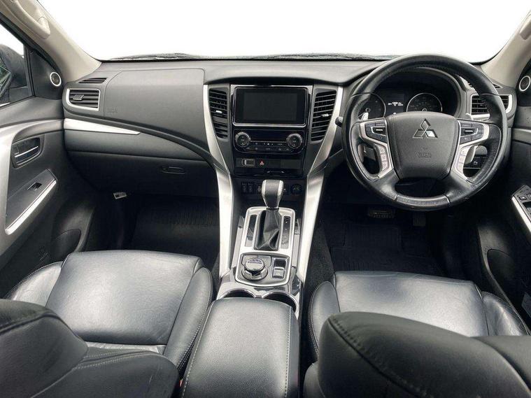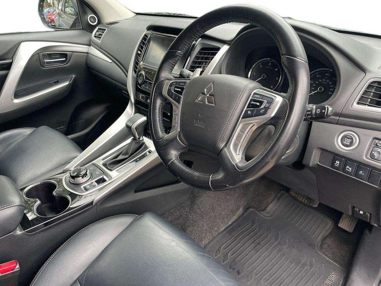 360 degree parking camera, 4WD drivetrain mode indicator, 7" touch screen, Adaptive cruise control, Android Auto, Apple CarPlay preparation, Blind spot warning, Emergency stop signalling system, Engine start/stop button, Exterior temperature gauge, Front and rear parking sensors, Lights on warning, Off-road mode, PAS, Remote fuel flap release, Smartphone link audio display, Unintended acceleration mitigation system, Diesel particulate filter, Rear differential lock, Super Select 4WD transmission, 510W Mitsubishi power sound system, Bluetooth with music streaming, DAB Digital radio, Radio with 8 speakers, Steering wheel audio controls, USB port, Auto dimming rear view mirror, Automatic rain sensors, Chrome door mirrors and handles, Chrome front grille, Colour keyed front and rear bumpers, Dusk sensing headlights, Electric folding mirrors with indicators, Front and rear electric windows, Front and rear fog lamps, Front skid plate, Headlamp washer, High mounted rear stop lamp, LED daytime running lights, LED headlamps with auto levelling, LED rear combination lamp, Rear mudflaps, Rear windscreen wiper with washer, Side and rear window privacy glass, Silver roof rails, Silver side steps, Trailer stability assist, Variable intermittent front wash/wipe, Visible VIN plate, Window mounted aerial, 3rd row head restraints, Chrome interior door handles, Dual zone climate control, Floor + luggage area carpets, Front accessory power socket, Front armrest with floor console box, Front cupholders, Front door pocket bottle holders, Front door pockets, Front power seats, Front seat and rear pockets, Front sunvisors with passenger vanity mirrors, Gearshift paddles, Glovebox, Heated front seats, Height adjustable front headrests, Height adjustable rear headrests, Isofix rear child seat preparation in 2nd row, Leather steering wheel, Leather upholstery, Leather wrapped gear shift knob, Luggage area lamp, Luggage cover, Rear air conditioning, Rear armrests with cupholder, Reclining rear seats, Tilt/telescopic steering column adjustment, 7 three point seatbelts, ABS/EBD, Active stability and traction control, Brake assist function, Childproof rear door locks, Electronic parking brake, Forward collision mitigation system, Front passenger airbag deactivation, Front seatbelt pretensioner, Front, side, curtain and knee airbags, Hill descent control, Hill start assist, Reinforced Impact safety evolution (RISE) body safety system, Seatbelt warning lamp, Tyre pressure monitoring system, Central door locking, Engine immobiliser, Keyless entry and start operation system, Locking wheel nuts, Steering lock, Thatcham Cat.1 alarm, Leather look vinyl inserts on door trim, 18" Alloy wheels, Full size spare wheel,