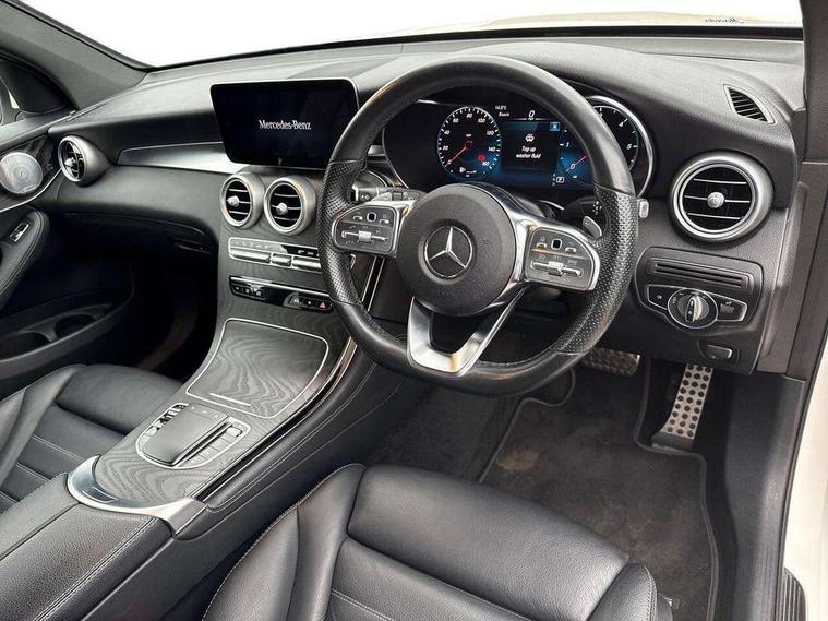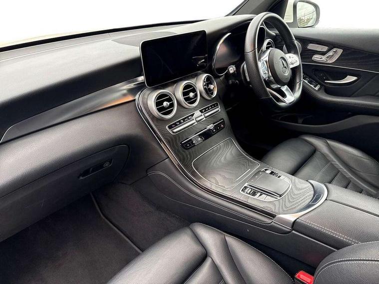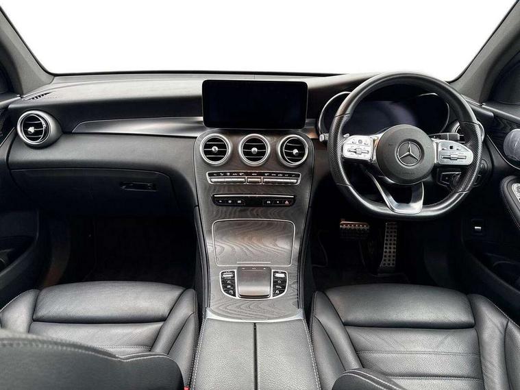 360 degree camera, Attention assist, Bluetooth interface for hands free telephone, Collision prevention assist plus, DYNAMIC SELECT with a choice of driving modes (ECO, Comfort, Sport, Sport+ and Individual), Easy pack automatic powered tailgate, ECO start/stop function, Hard disk navigation, Hey Mercedes Voice activation, Instrument cluster with12.3-inch digital instrument cluster display. High resolution instrument cluster screen with choice of three display styles, MBUX augmented reality for navigation, MBUX Interior assistant, Mercedes connect me with remote online services, Multi function trip computer, Outside temperature display, rear seatbelt status indicator, Parktronic system with rear cross traffic alert and drive away assist, Remote boot release, Service indicator (ASSYST), Smartphone integration with Apple CarPlay and Android auto, Traffic sign assist, Wireless charging, 4MATIC permanent four wheel drive, 66 litre fuel tank, 9G TRONIC plus automatic transmission with steering column gear selector, DIRECT SELECT steering wheel gearshift paddles, Diesel particulate filter, Sports suspension tuned for improved handling and driving dynamics, Burmester surround sound system, MBUX multimedia system with DAB digital radio and touchpad including satellite navigation, Media display 10.25-inch touchscreen display, Pre installation for Mercedes Benz Link, USB ports x 2 in centre console, Adaptive brake lights, Aluminium roof rails, AMG bodystyling - AMG front apron with sporty air intakes and chrome trim element, AMG diffuser-look rear apron with insert in black, Body colour door mirrors, Body coloured bumpers, Electric panoramic glass sunroof, Electric windows one touch open/close, Electrically adjustable and heated door mirrors, Front, side and rear exterior chrome trim, Headlamp assist automatic headlamp activation, LED tail lamp, Motor way mode function and locator lighting, Multi beam LED headlamps with 84 indiviually control LED, daytime running lamps, Active Light, cornering light, enhanced fog lamp, adaptive Highbeam Assist, Privacy glass with dark glass from B pillar backwards, Radiator diamond grille, Rain sensor windscreen wipers, Range adjustable headlights, Rear wiper, Running boards, Tinted glass all round with single layer safety glass, Two chrome plated tailpipe trim elements, 2 way rear head restraints, 3-spoke multifunction sport AMG steering wheel in black nappa leather with flattened bottom section, chrome insert and perforated leather in grip area, 40:20:40 split folding rear seats, Ambient lighting, AMG floor mats with edging and embroidered AMG lettering, AMG sports seats, Artico man-made leather upper dashboard with contrast topstitching, Automatic child seat recognition sensor, Black roof lining, Dividing net - rear, Double cup holder in centre console, Easy-pack removable load compartment cover, Front armrest with storage box, Front door sills with Mercedes Benz lettering, Front head restraints, Heated front seats, Illuminated and lockable glove compartment, Leather upholstery, Rear top tether child seat ISOFIX attachment, Sports pedals with stainless steel surfaces and rubber studs, Steering wheel with touch control buttons, THERMOTRONIC 3 zone automatic climate control, Interior lighting pack - GLC, Keyless Go comfort pack - GLC, Memory pack - GLC, Mirror pack - GLC, Storage pack - GLC, 3 rear 3 point seatbelts, Active bonnet, Adaptive brake system with HOLD function and brake drying in the wet, ASR, Black seat belts, Brake calipers with Mercedes-Benz lettering + perforated brake discs, Child proof door locks, Dual-stage airbags - driver and front passenger, driver knee bag and window bags for driver, front passenger and rear passengers, Electronic parking brake, Electronic stability programme (ESP) with curve dynamic assist and cross wind assist, Front and rear seatbelt reminder, Front passenger seat occupancy sensor, Hill hold function, Tyre pressure monitoring system, Warning triangle and first aid kit, Alarm system/interior protection/immobiliser, Automatic door locking, Remote central locking, Anthracite open pore oak wood trim, 20" AMG 5 twin spoke alloy wheels painted in titanium grey with high sheen finish, Run flat tyres,