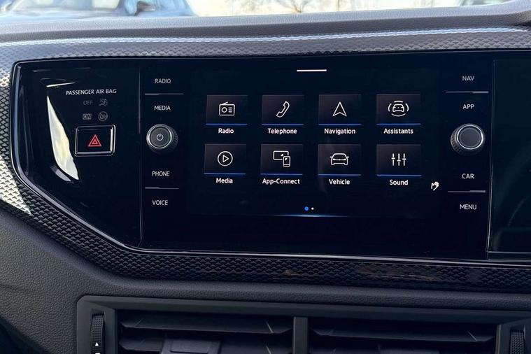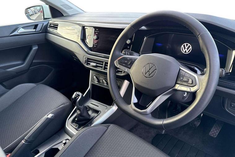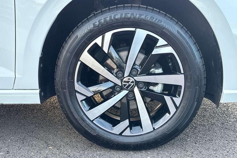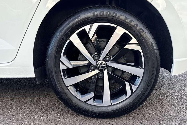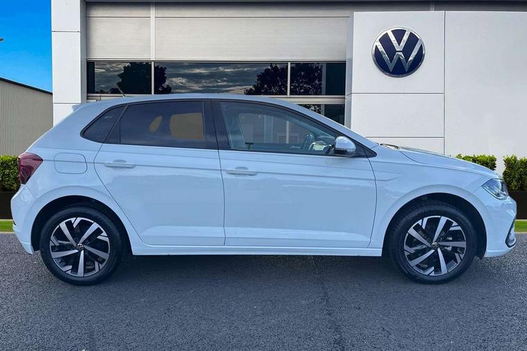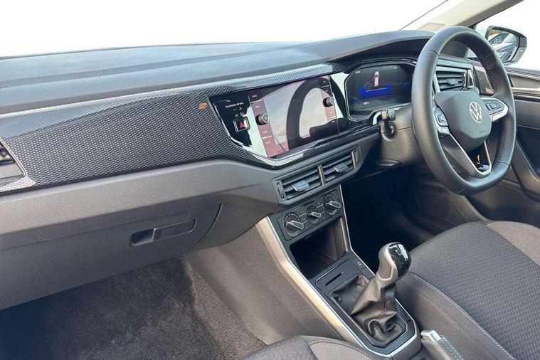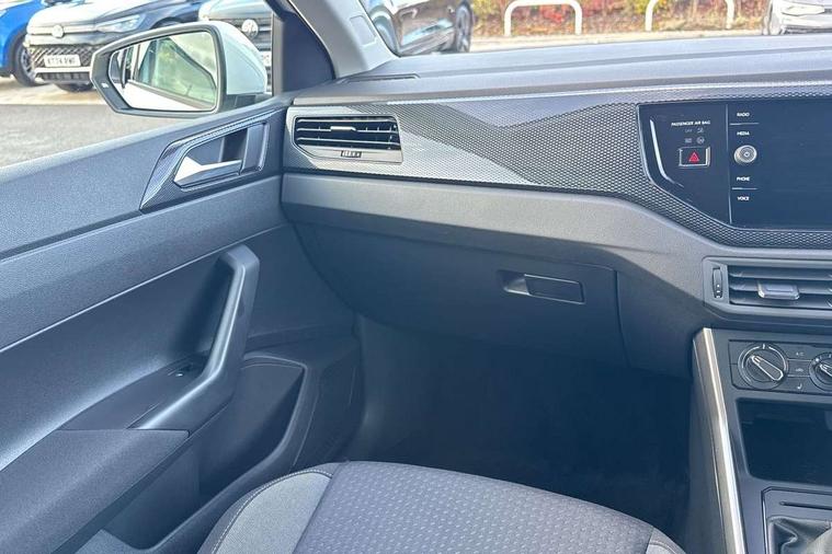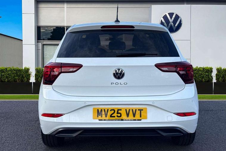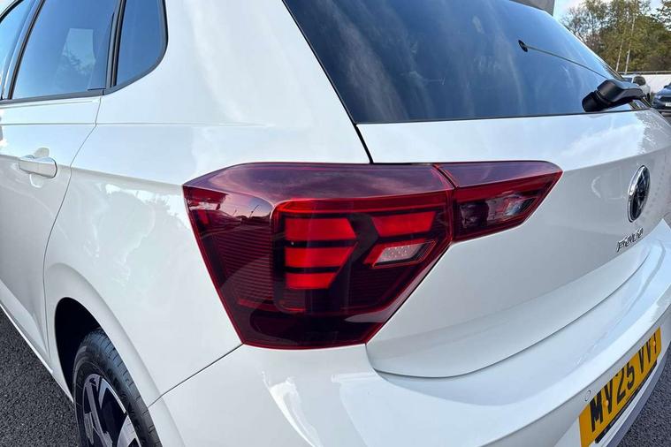 Adaptive cruise control without follow-to-stop and speed limiter, Advanced driver attention and drowsiness monitor, Bluetooth mobile phone interface, Dynamic road sign display, Emergency call service, Multifunction front facing camera for distance control, Park distance control, Power assisted speed sensitive steering, Preparation for navigation system with media and internet package, Preparation for We connect and We connect plus, Rear view camera, Speedo and rev counter, electronic odometer, trip, service interval display and exterior temperature gauge, Standard rear axle, Travel Assist - Lane keeping system and traffic jam assist, Travel assist including emergency assist, Trip computer, Warning signal and warning light for front and rear seatbelts not fastened, Washer fluid level indicator, Wireless app connect, Front wheel drive, Rear shock absorpion, Start-stop system with battery regeneration (recuperation - energy recovery during braking), DAB Digital radio, Diversity antenna for FM reception, Front and rear 6 speakers, Automatic dimming interior rear view mirror, Automatic headlight control with LED separate daytime running lights with coming/leaving home function, Body colour bumpers with chrome inserts, Body colour door handles, Body colour door mirrors, Electric front windows, Engine badge deletion, Headlight range adjustment, Heat insulating and laminated safety glass windshield, LED Headlights, LED rear combination lamps, Power folding adjustable/heated exterior mirrors and front passenger exterior mirror lowering function, Rain sensor, Rear electric windows, Rear fog light, Rear side wing doors, Rear tinted glass from B-pillar backwards approx 65% tinted, Rear windscreen washer and wiper with interval delay, Third brake light, 12V power socket in centre console, 2 front and 2 rear reading lights with switch off delay and dimmer, 2 USB-C ports in the front, 2 USB-C charging sockets on the center console in the rear, 3 rear head restraints, 60/40 split folding rear seat and rear seat bench not split, Ceramique roof lining, Chrome plated radiator grille inserts, air vent surrounds and light switch surrounds, Door and side trim panel, Driver and front passenger seat height adjustment, Driver/passenger sunvisors with illuminated vanity mirrors, Front centre armrest, Front seat backrest storage pockets, Front standard seats, Handbrake lever handle in leather, Hartley/Thomas cloth upholstery, Headliner in recycled material, Isofix child seat preparation easy-fit (for two outer rear seats, and front passenger seat) compatible with I-size, Leather trimmed gear knob, Luggage compartment cover, Luggage compartment lighting, Removable luggage compartment floor, Single front passenger seat, Standard climatic zones, Standard pedal cluster, Three spoke leather wrapped multifunction steering wheel, Light and vision pack - Polo, 3 point height adj front seatbelts + pretensioners, 3 point seat belt for centre rear seat, 3 point seatbelts, outer rear with ECE lable, ABS, Driver and front passenger airbag with front passenger airbag deactivation, Drivers and front passengers safety optimised head restraints, ESC (Electronic stability control) + EDL (Electronic Differntial lock) and ASR (Traction control), Extended and predictive pedestrian/ cyclist protection, Front assist with autonomous emergency braking (for Adaptive Cruise Control ACC up to 130 mph), Front curtain and side airbags with center airbag, Front disc brakes, Hill hold control, Manual child lock in rear doors, Rear drum brakes, Single tone horn, Tyre pressure loss indicator, Alarm with interior protection, Anti-theft alarm system with interior monitoring, backup horn, and towing protection, Anti-theft wheel bolts, Electronic engine immobiliser, Lava stone black gloss/matt decorative inserts in dash and front door panels, 16" Torsby alloy wheels, Low rolling resistance tyres,