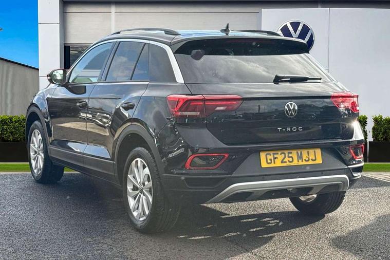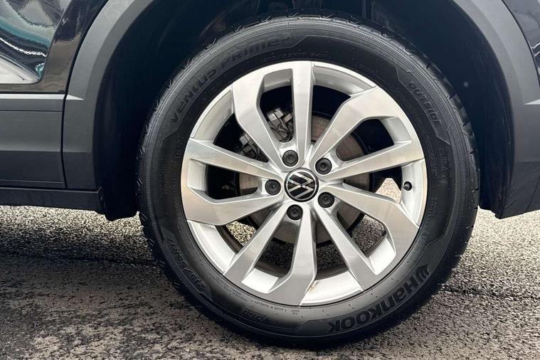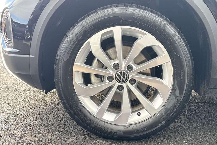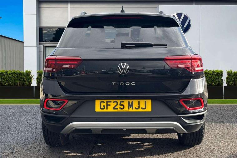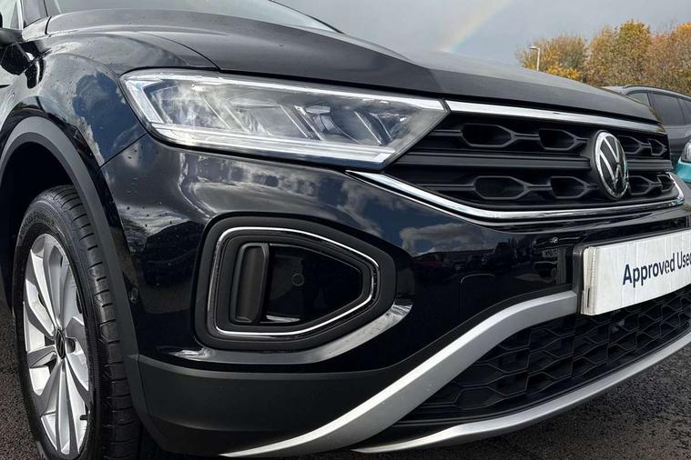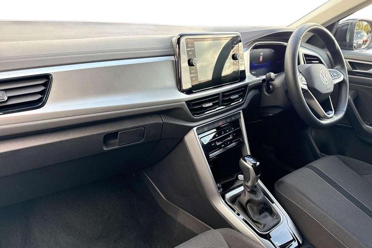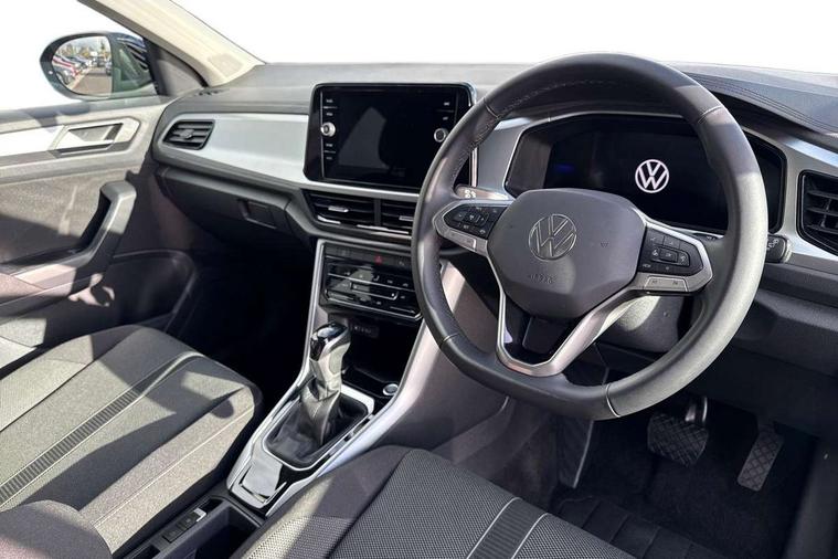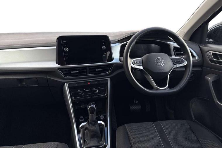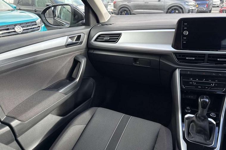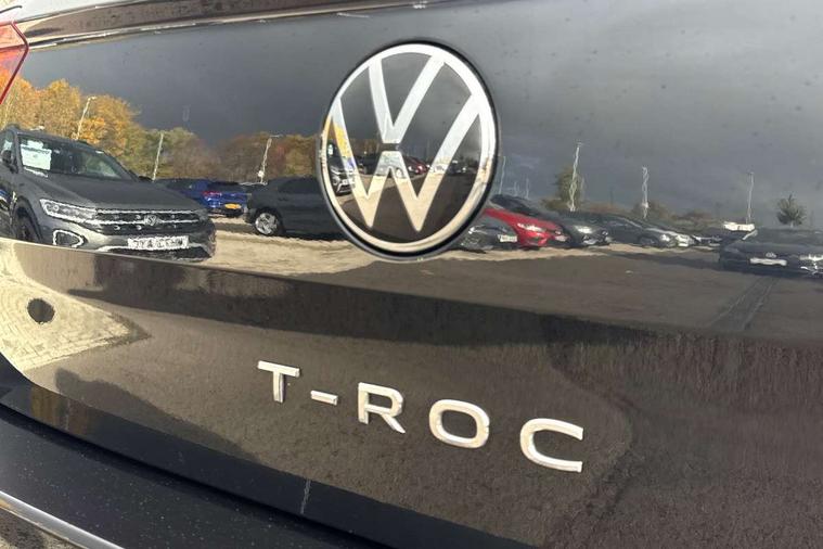 Advanced driver attention and drowsiness monitor, Dynamic road sign display, Emergency call service, Lane keeping system Lane Assist, Mobile phone interface, Modified key software - reduce switch off time for key status change to Long no motion, Online services, Park assist including front and rear parking sensors, Power assisted speed sensitive steering, Rear view camera, Service interval indicator, Tailgate/trunk lid release from outside, Think blue trainer driver tips and journey analysis, Warning sound and light for front seatbelts unfastened, Wireless app connect, Battery regeneration during braking, Front shock absorption, Rear shock absorption chassis with increased ride height, Start/stop function with battery regeneration, DAB Digital radio, Diversity antenna for FM reception, Front and rear 6 speakers, Music playback - MP3, WMA and AAC files, Premium USB cable in choice of either Apple or Android smartphone compatibility, SD card slot, Simultaneous pairing of 2 compatible mobile devices, Title and cover art display, We Connect and We Connect Plus functionality, Auto dimming interior rear view mirror, Automatic hazard lights activation under emergency braking, Automatic headlight control with LED separate daytime running lights with coming/leaving home function, Black roof rails, Body coloured bumpers and radiator grille with chrome trim and front fog lamps with chrome bezel, Body coloured exterior mirror housings and door handles, Electrically adjustable and heated door mirrors, Extended roof spoiler, Exterior mirrors aspherical on driver side, convex on front passenger side, External USB type C socket and charging sockets, Front windscreen wiper with intermittent wipe and 4 position delay, Heated rear window, LED 3rd brake light, LED rear combination lamps, LED rear number plate lights, Power windows with comfort operation and circuit breaker, Privacy glass for rear side windows and rear window, Rain sensor, Rear exhaust tailpipe, Rear fog light on one side and reversing lights on both sides, Rear side wing doors, Rear wash/wipe with intermittent wipe setting, Remote electrically foldable door mirrors, puddle lights and reverse activated passenger's door mirror, 12V power socket in centre console, 3 rear head restraints, 3 seat bench in 2nd row, 4 load lashing points in luggage compartment, Air care climatronic air conditoning system with active combination filter and 2-zone temperature control, Black stitching for floor mats, Ceramique roof liner, Cloth upholstery, Door and side trim panel in cloth, Drawer under drivers seat, Driver/front passenger seat height adjustment, Front centre armrest, Front comfort sports seats, Front cupholders x 2, Front reading light, Front seat back storage pockets, Glove compartment door with light, Instrument lighting, white adjustable panel illumination, Interior ambient lighting and surround lighting, Interior light delay, Isofix child seat preparation, Leather gearshift handle, Load-through provision with cup holder when folded down ('Unsplit rear seat bench, split folding backrest, with centre armrest), Luggage compartment lighting, Lumbar support for driver's and front passengers seat, Non-folding front passenger seat backrest, Single front passenger seat, Storage compartment in left and right luggage area, Storage compartment in rear doors, Storage compartments in driver and front passenger doors, Sunvisors with illuminated vanity mirrors, Variable boot floor, height adjustable and removable, Driver assistance pack without proactive passenger protection - T-Roc Life/Match, 3 point height adj front seatbelts + pretensioners, 3 point seatbelts in outer rear with ECE label, ABS, Child locks on rear doors, City emergency braking and pedestrian monitoring, Driver and front passenger airbag with front passenger airbag deactivation, Driver and front passenger safety-optimised head restraints, Drivers seatbelt reminder, Electronic parking brake, Electronic Stability Control (ESC) inc EDL (Electronic Differential Lock) and ASR (Traction Control), Front and rear passengers curtain airbag system including front side airbags, Front disc brakes, Hill start assist, Predictive pedestrian protection, Rear disc brakes, Two tone horn, Tyre pressure loss indicator, Volkswagen roadside assistance, Alarm with interior protection, Keyless locking and starting system keyless access with safelock, Pewter matt decorative inserts for intrument panel, centre console and door panels at the front, Trims for alloy wheels,