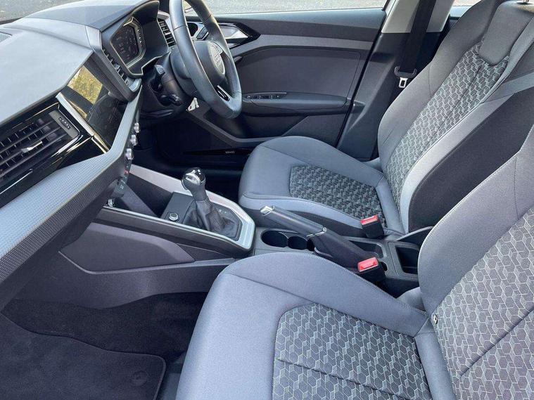 10.25" Digital instrument cluster display classis style instrument dials + speed, odometer, time, outside temperature, telephone menu + fuel level warning, Audi drive select - power steering assistance + engine + gear shift 3 preset modes (auto, dynamic, efficiency and an Individual mode), Audi smartphone interface with connect compatible smartphone via USB directly MMI display + Nav, music, third party apps controlled via MMI controller, Automatic start/stop system, Bluetooth interface, Cruise control, Driver's information system, Electromechanical power steering, Emergency e-call, Lane departure warning system, Rear parking sensor, Service interval indicator, Speed limiter, Voice control system, Washer fluid level indicator, Dynamic suspension, 2 x USB type C connection points, 6 passive loudspeakers, DAB Digital radio, MMI radio plus with 10.1" colour MMI display screen and MMI touch, Auto dimming rear view mirror, Body coloured bumpers, Body coloured door mirrors, Electric front and rear windows, Electrically adjustable, heated, folding door mirrors with integrated LED side indicator, Front side air inlets in grained matt black and C frame in anthracite black, Heat insulating glass windscreen and side windows, Heated rear windscreen, High level LED brake light, LED headlights with LED rear lights + dynamic rear indicators + headlight adjustment and high beam, turning light + LED daytime running lights, Radiator grille and rear diffuser in matt anthracite black, Radiator protective grille frame in matt aluminium silver, Rain and light sensors, Rear fog lights, Rear side wing doors, Rear wiper, Side front spoiler lips in grained matt black, 12V socket in centre console with two cup holders, 3 rear seats with headrests, 3 seat bench in 2nd row, 3 spoke leather multifunction plus steering wheel, 40:60 Split folding rear seat or folded fully, Black front and rear floor mats, Door sill trims with aluminium inlay, Driver and passenger seat with manual height adjust with forward and backwards adjustment, Front head restraints, Front passenger seat, Grey cloth headlining, Height and reach adjustable steering wheel, ISOFIX child seat mounting for front passenger and outer rear seats including top tether attachment point of outer rear seats, Leather gear knob with aluminium trim, Leatherette handbrake grip, Luggage compartment light with front and rear reading lights, Manual air conditioning, Manually adjustable lumbar support in front seats, Novum cloth upholstery with front sport seats, Luggage compartment pack - A1, 3x3 point rear seatbelts, Audi pre-sense front with pedestrain and cyclist recognition, Brake assist function, Driver and front passenger airbag with front side and head airbags, Electronic Stability Control including ABS, EBD, ASR and EDL, Front passenger airbag deactivation switch, Hill hold assist, Manual rear child locks, Seatbelt height adjustment for front seats, Seatbelt monitoring, Tyre pressure warning light, Warning triangle and first aid kit, Anti theft alarm, Anti theft wheel bolts and loose wheel warning, Immobiliser, Remote central locking with 2 foldaway keys, Aluminium trim for control switches, air vents and digital instrument cluster, Black dashboard, Silver grey accent areas including air vents, door handle recesses and centre console in diamond paint finish, Slate grey inlays polygon structure in fine paint finish,