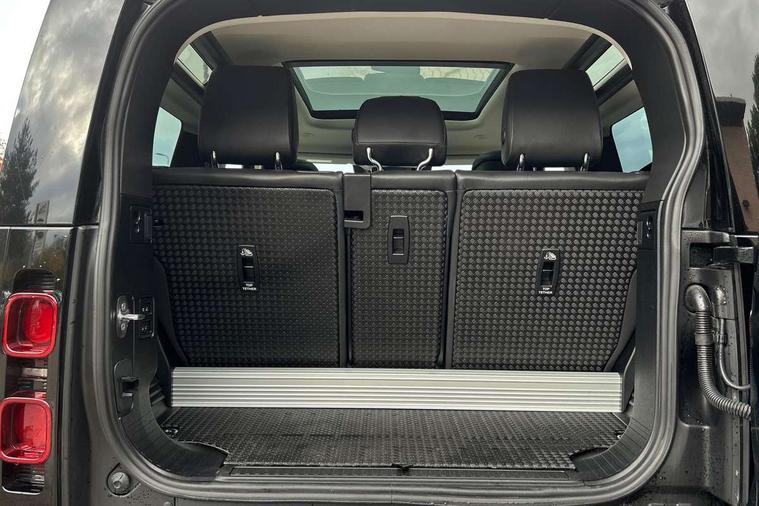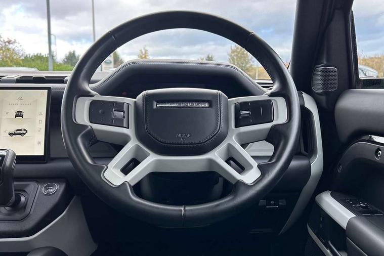 11.4" touchscreen, 360 degree parking aid, 3D Surround Camera with 360 View, 180 Rear View, Front Traffic Detection, Forward Vehicle Guidance, Tow Hitch Assist and clear sight Ground View, Adaptive cruise control, Android Auto, Apple CarPlay, Assisted tailgate with soft close, Blind spot assist, Bluetooth system, Brake pad wear indicator, Clear exit monitor, Connected navigation pro, Driver condition monitor, Electric power assisted steering (EPAS), Interactive driver display, Lane keep assist, Push button start, Rear collision monitor, Rear traffic monitor, Traffic sign recognition with adaptive speed limiter, Trip computer, Wade Sensing, 8 speed automatic transmission, All wheel drive system, Twin speed transfer box, DAB Radio (Digital Audio Broadcasting), Meridian 400w sound audio system with 11 speakers and subwoofer, Pivi pro connected, Auto dimming interior rear view mirror, Automatic headlight levelling, Automatic headlights, Centre high mounted stop light, Electric heated/power fold door mirrors with approach lights and auto dimming driver side, Electric windows with one touch open/close and anti-trap, Follow me home lighting, Front fog lights, Heated rear window with timer, Heated windscreen, LED tail lights, Panoramic rear side glass, Puddle lights, Rain sensing windscreen wipers, Rear fog lights, Rear wiper, Side hinged tailgate, Standard treadplates, Trailer stability assist, 12V power socket in loadspace, 14 way heated and cooled electric front seats with driver memory and 4 way manual headrests, 3 seat bench in 2nd row, Alpine lights, Configurable cabin lighting, Durable rubber cabin flooring, Durable rubber loadspace flooring, Electric reach + rake adjustable steering column, Extended leather upgrade, Footwell lights, Heated steering wheel, Loadspace cover, Loadspace Hook, Manual Tip & Slide front passenger seat, Multifunction steering wheel, Overhead stowage for sunglasses, Premium cabin lighting, Rear headrests, Rear ISOFIX, Rear reading lights, Removable Loadspace storage tray, Row 2 seats with forward folding seat base, Single front passenger seat, Standard seat configuration, Storage glovebox, Sunvisors with illuminated vanity mirrors, Online pack with data plan - Defender, 5 x 3 point seatbelts, ABS, Brake hold function, Cornering brake control (CBC), Customer configurable autolock, DSC - Dynamic Stability Control, EBD - Electronic brakeforce distribution, Electric parking brake (EPB), Emergency brake assist, Emergency braking, ESP + traction control, Front airbags with passenger seat occupant detector, HDC - Hill descent control, Hill launch assist, Low traction launch, Remote for (e-Call, Optimised assistance call, InControl app, Climate, beep and flash and door), RSC - Roll stability control, Seat belt reminder, TPMS (Tyre pressure monitoring system), Alarm, Immobiliser, Intrusion sensor, Keyless entry, Locking wheel nuts,