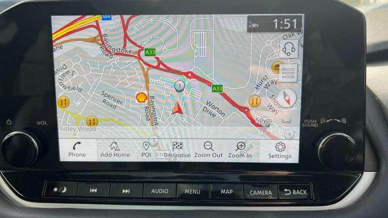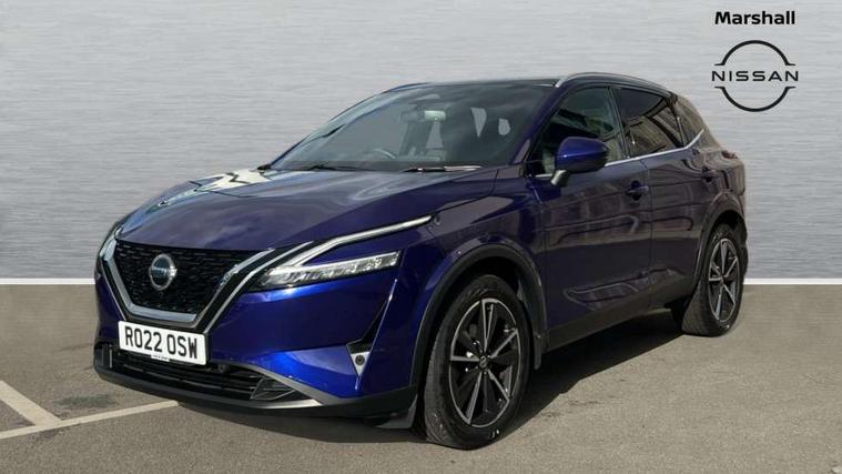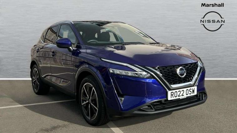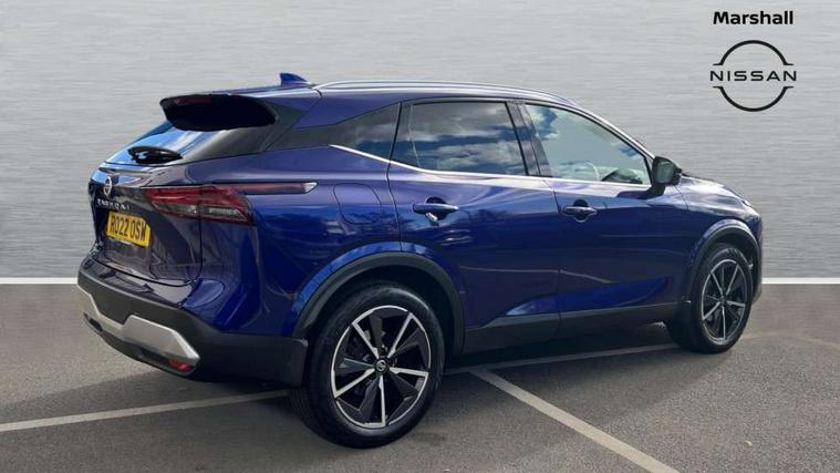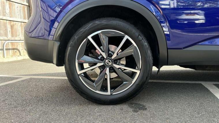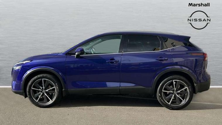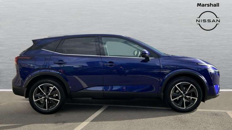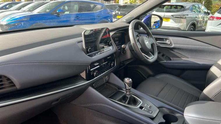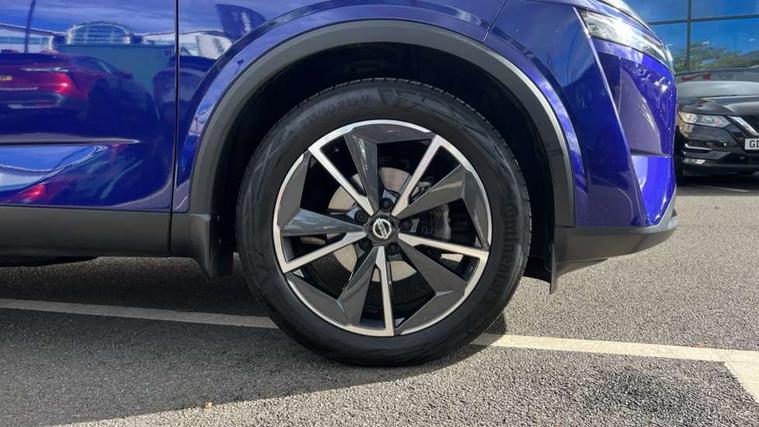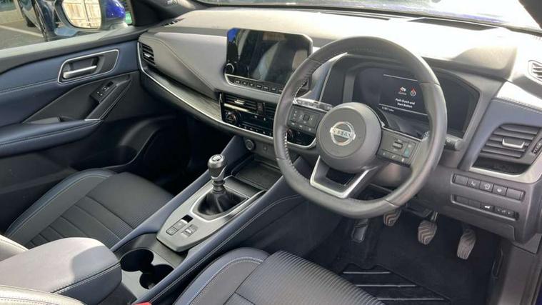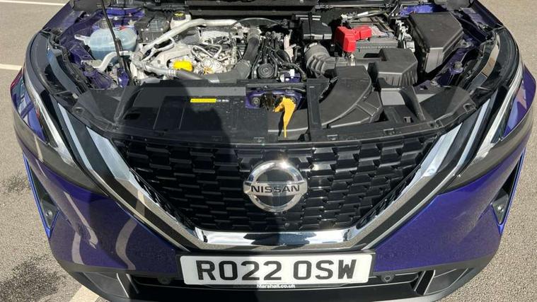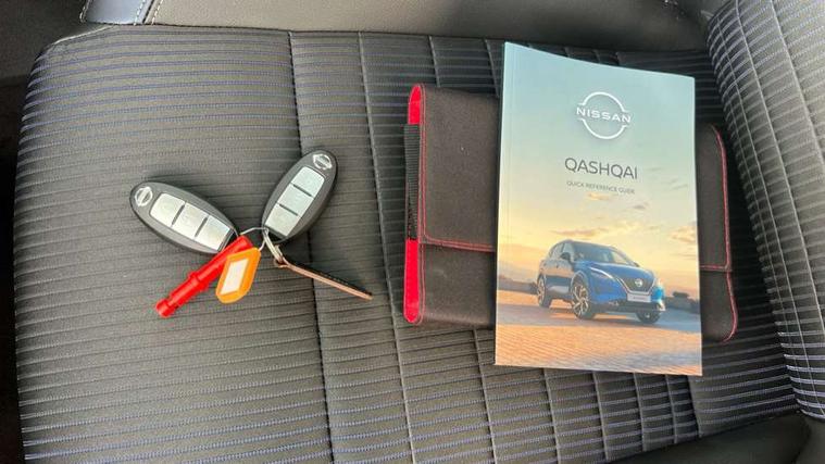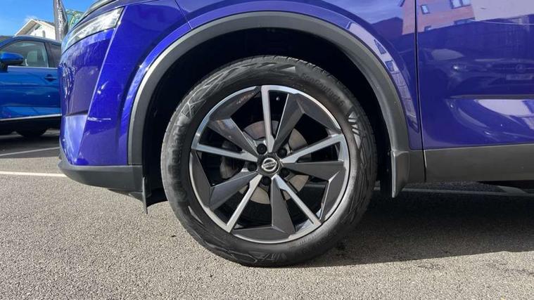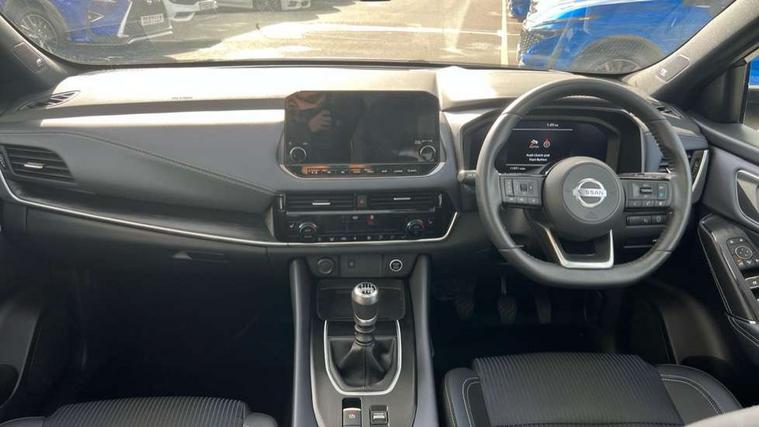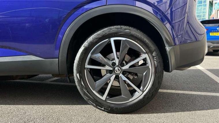 Blind spot warning, Drive modes (sport, normal, eco), Electric speed sensitive power steering, Emergency and breakdown call, Front and rear parking sensors, Full Digital 12.3" TFT Digital Combimeter, Google maps services - search, weather, 3D maps and Google street view, Hands free power tailgate, Idle stop/start system, Intelligent around view monitor, Intelligent Cruise control (ICC), Intelligent driver alert system, Intelligent forward collision warning, Intelligent lane intervention, Lane departure prevention, Lane departure warning system, Moving object detection, Nissan connect 12.3 inch touchscreen infotainment system, Nissan connect navigation, Push button starter, Rear cross traffic alert, Remote control services - door locks, lights, horn and car locator, Telematics - notifications and connectivity services, TomTom live traffic services, Traffic sign recognition with legal speed adjustment, Trip computer, Virtual personal assistant and firmware over the air capability, Wireless Apple CarPlay and wired Android Auto, Wireless charging pad, 6 speakers, AM/FM audio system with DAB, Bluetooth audio streaming, Front USB connections (Type-A and Type-C), Rear USB charging only ports (Type-A and Type-C), Auto dimming rear view mirror, Auto rear wiper when reversing, Automatic hazard signal with emergency stop signal, Body colour mirror caps, Body coloured door handles, Bodyside mouldings, Chrome side window finisher, Door handle with button, Dusk sensor, Electric auto folding door mirrors, Electrically adjustable and heated door mirrors with LED turn indicator, Fixed panoramic glass roof with electric sunshade, Follow me home headlights, Front and rear LED turning signals, Intelligent auto headlights, LED daytime running lights, LED rear lights, One touch front and rear electric windows with remote opening and closing, Partially body coloured bumpers, Privacy glass, Rain sensor, Rear bumper with graphite insert, Rear roof spoiler, Rear side wing doors, Rear styling plate, Roof rails, Shark fin antenna, Splash free rain sensing wipers, Super UV and infrared cut glass, Three blink turn signal, 12v power socket in dashboard and luggage, 2 way electrical driver lumbar adjustment, 2x Rear coat hooks, 3 bench rear seats in 2nd row, 3 rear headrests, 4 folding assist grip, 6 Luggage hooks - 4 on floor, 2 on side, 60/40 split folding rear seat bench, 8 way electric adjustable drivers seat, Ambient lighting around centre console, Ambient lighting in front doors, Centre console storage tray, Chrome interior door handles, Cloth/syntech leather monoform upholstery, Dark black/blueish PVC wrapping, Dark headlining, Driver and front passenger sunvisors with illuminated vanity mirrors, Driver seat back pocket, Dual zone automatic climate control with pollen filter, Front and rear door storage, Front cupholders x 2, Front door with bottle holders, Glovebox with light, Hard trunk cover, Height adjustable front headrests, Leather shift knob, Leather steering wheel, Luggage board system, Luggage space lighting, Manual lumbar support on passenger seat, Manually adjustable passenger (slide recline + lifter), Multifunction steering wheel, Passenger seat back pocket, PVC front centre console and armrest, Rear armrest with 2 cupholders, Rear door bottle holders, Single front passenger seat, Soft PVC kneepad, Steering wheel switches, Tilt/telescopic adjustable steering wheel, Two rear isofix child seat anchorage points with top tether, Welcome light and doors with console tray ambient lighting, Drive assist pack - Qashqai, Heat pack - Qashqai, Tech Pack (Drive Assist + HUD), 3x3 point rear seatbelt pretensioners + load limiters, ABS, ESP, EBD and brake assist, Active brake limited slip, Auto hold function, Child locks on rear doors, Curtain and front side, far side airbags, Driver and passenger airbags, Driver, passenger and 2nd row rear seat belt reminder, Electronic parking brake, Front seatbelt pretensioners + load limiters, Height adjustable front seatbelts, Hill start assist, Intelligent blind spot intervention, Intelligent front emergency braking with pedestrian, cyclist recognition and junction assist, Intelligent rear automatic braking, Tyre pressure monitoring system, Vehicle dynamic control, Capless fuel filler, Engine immobiliser, Nissan i-key, Remote central door locking with deadlocking, Thatcham Cat.1 alarm, Interior instrumental panel C finisher, 19" Alloy wheels, Tyre puncture repair kit,