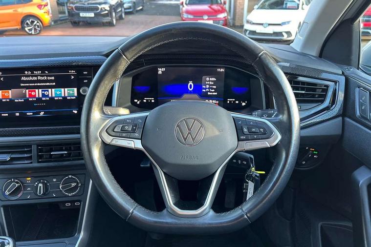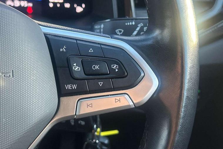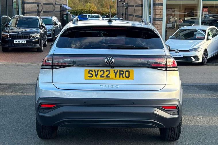 App-Connect including App-Connect Wireless, Driver alert system, e-Call (emergency call), Power Steering, Travel assist including emergency assist, Washer fluid level indicator, Wireless Charging including Bluetooth, Start-stop system with battery regeneration (recuperation - energy recovery during braking), Digital radio reception (DAB+), Diversity antenna for FM reception, WeConnect plus, Aspherical driver's exterior mirror, Auto headlights, Body coloured bumpers, Body coloured exterior mirror housings and door handles, Electric windows, External USB type C socket and charging sockets, Front fog lamps with cornering function, Headlight range control, Heat insulating glass windscreen, LED headlamps, LED rear combination lamp, LED third brake light, Left convex exterior mirror, Power folding adjustable/heated exterior mirrors and front passenger exterior mirror lowering function, Rear fog light on one side, reversing light on both sides, Rear side wing doors, Rear wash/wipe with intermittent wipe setting, 'Slash/ Austin' Cloth upholstery, 12V socket in centre console, 2 front reading lights, 3 rear head restraints, 3 seat bench in 2nd row, Ambient lighting with logo projection, Black carpets, Child seat anchor for child seat system i-Size, 2x top tether and child seat anchor in front on front passenger side, Door and side trim panels in titan black, Driver and front passenger seat height adjustment, Front centre armrest, Handbrake lever handle in leather, Height and reach adjustable steering wheel, Leather trimmed gear knob, Leather wrapped multifunction steering wheel, Luggage compartment floor, Luggage compartment light, Lumbar support for driver's and front passengers seat, Seat covers in titanium black, Single front passenger seat, Split folding backrest with centre armrest and unsplit rear seat bench, Storage compartment under front seats, Sun visors with illuminated vanity mirrors, Chrome Package - Taigo, Drivers assistance pack - Taigo, Light and Sight pack including High beam assist - Taigo, 2 x 3-point seatbelts/outer rear seats with ECE label, 3-point seat belts in front with pretensioner and height adjustment, 3-point seatbelt for centre rear seat, Driver and front passenger airbags with front passenger airbag de-activation, front side and curtain airbags, Driver and front passenger safety-optimised head restraints, Electronic stability control, Extended and predictive pedestrian/ cyclist protection, Front and rear disc brakes, Front curtain and side airbags with center airbag, Hill start assist, Manual rear child locks, Single tone horn, Tyre pressure loss indicator, Anti-theft alarm system with interior monitoring, backup horn, and towing protection, Anti-theft wheel bolts, Lava stone black gloss/matt decorative inserts in dash and front door panels, Low rolling resistance tyres,