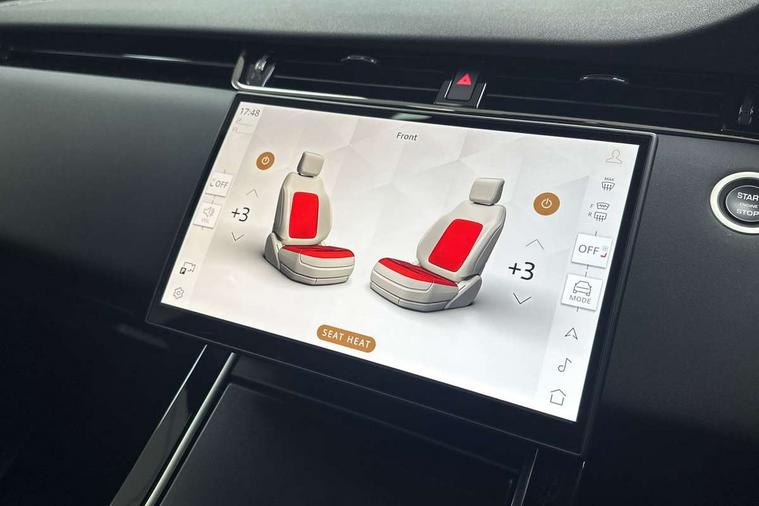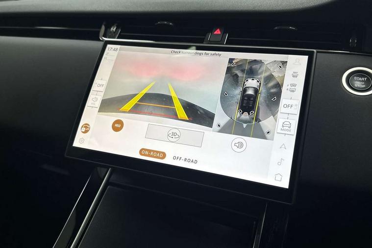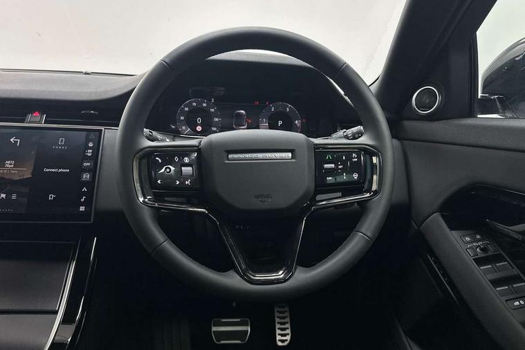 11.4" touch screen, 3D 360 degree surround camera with wade sensing, Adaptive cruise control, Android Auto, Apple car play, Blind spot assist, Bluetooth connectivity, Brake pad wear indicator warning light, Driver condition monitor, eCall emergency system, Eco mode, Electronic power assisted steering (EPAS), Front and rear parking sensors with auto brake, InControl remote, Interactive driver display, Land Rover InControl apps, Lane keep assist, Pivi pro connected includes diamond pivi variant, smart settings, connected navigation pro, nuance speech licence, Powered tailgate/boot lid, Rear collision monitor, Rear traffic monitor, Tailgate, Traffic sign recognition with adaptive speed limiter, Voice control system, Wireless device charging, All terrain progress control, Diesel exhaust fluid (DEF) large tank, Efficient Driveline, Large fuel tank, Terrain Response 2, Digital Audio Broadcast radio-DAB, Steering wheel mounted controls, Acoustic laminated windscreen, Auto headlights, Auto high beam assist, Automatic headlight levelling, Electric windows with one touch open/close and anti trap, Flush deployable exterior door handles, Front and rear recovery eyes, Heated rear window with timer, Heated washer jets, Heated windscreen, LED headlights with signature DRL and LED tail Lights, Power fold, auto-dimming, heated door mirrors with approach lights and auto dimming driver side, Rain sensing windscreen wipers, Rear animated directional indicators, Rear fog lights, Rear side wing doors, Rear wiper, Side repeater indicators in mirror, Tailgate spoiler, Third brake light, Winter wiper park position, 12 way driver memory and 10 way passenger electric front seats with 2 way manual headrest + 4 way lumbar support, 40:20:40 split folding rear seats with centre headrest and armrest, Ambient interior lighting, Bright metal pedals, Carpet mats, Chrome tread plates with range rover branding Includes stainless steel loadspace scuff plate with etched graphic, Customer configurable single point entry, Front and rear cupholders, Heated front seats, Heated steering wheel, Isofix system on outer rear seats, Manually adjustable steering column, Overhead lighting console, Overhead stowage for sunglasses, Passive front head restraints, Rear air vents, Rear head restraints, Satin chrome gearshift paddles, SE Grained leather upholstery, Single passenger seat, Standard steering wheel with Moonlight Bezel, Sunvisors with illuminated vanity mirrors, Twin sliding front centre armrest, Power socket pack 2 - Evoque, 3 rear 3 point seatbelts, Anti-lock braking system (ABS), Brake hold function, Customer configurable autolock, DSC - Dynamic Stability Control, Electronic brake force distribution, Electronic parking brake, Electronic traction control, Emergency braking, Front and rear seatbelt reminder, Hill descent control, Hill launch assist, Low traction launch, Occupant protection assist, Passenger seat occupant detector, Power operated child locks, Roll stability control, Six airbags - Driver and passenger airbags/driver knee airbag/front side airbag and curtain airbags, Torque vectoring brake, Tyre pressure monitoring system, Alarm, Immobiliser, Intrusion sensor, Keyless entry, Locking wheel nuts, All season tyres,
