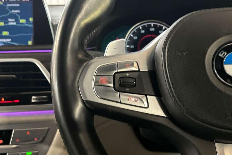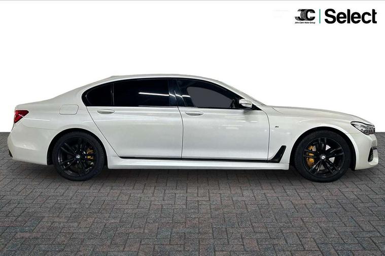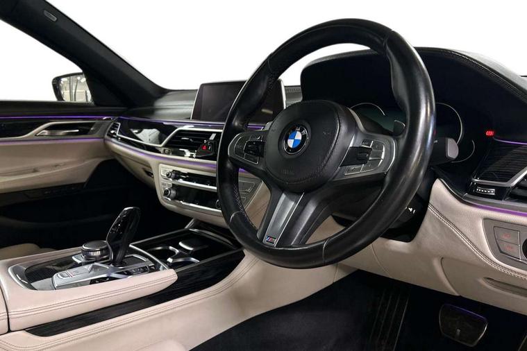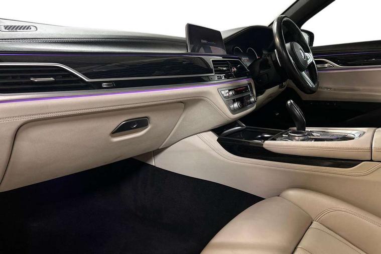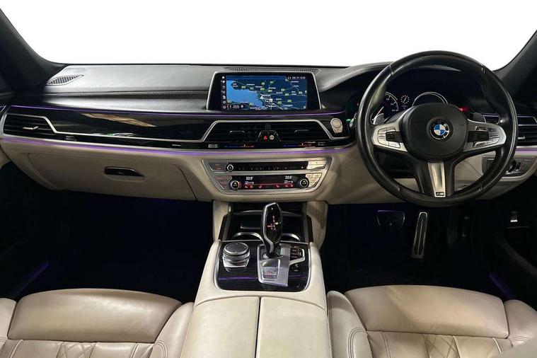 10.25" display screen, 20GB hard disc drive (HDD) memory, Automatic bootlid operation, Average speed gauge, BMW apps interface, BMW display key, BMW gesture control, BMW information plus, BMW Online services, BMW remote services, BMW Teleservices, Brake force display, Colour information display, Comfort access system with smart opener, Digital cockpit, Drive Performance Control with ECO PRO, Comfort+, Comfort, Sport, Sport+ and Adaptive modes, Enhanced bluetooth with wireless charging, EPAS, Fuel consumption and range, iDrive touch controller with shortcut buttons, Multi function trip computer, Multifunctional instrument panel, Navigation system - BMW Professional multimedia, Oil sensor for level and grade, On board computer, On-board diagnosis - OBD, Outside temperature gauge, Personal Profile, Real time traffic information, Service indicator, Smartphone wireless charging plate, Soft close tailgate operation, Speed limit display, Speed limiting function, Variable Damper Control, Wifi hotspot preparation, Anti roll bar front and rear, Diesel particulate filter, Self levelling twin axle air suspension, Sport automatic transmission, DAB Digital radio, Favourite buttons, Radio/CD/DVD/MP3 player, All round anti-corrosion system, Auto dimming rear view mirror, Automatic headlights, Body colour bumpers, Body colour door mirrors, Dynamic brake lights with LED technology, Electric front and rear windows with fingertip open/close + anti-trap all round, Electric heated door mirrors, Exterior mirrors - electrically folding with anti-dazzle, Follow me home headlights, Heated windscreen washer jets, High beam assistant, High gloss shadow line exterior trim, LED daytime running lights, LED front and rear fog lights, Left and right single chrome quadrilateral exhaust tailpipes, M aerodynamic bodystyling, Outer door handle illumination, Rain sensor, Soft close automatic (SCA) for doors, 12V socket in front and rear, 4 zone control automatic air conditioning, Ambient interior lighting, Battery in luggage compartment, Centre console with armrest, Driver + front passenger electric lumbar support, Footwell courtesy lights front and rear, Front and rear cupholders, Front and rear seat heating, Front armrest, Front comfort multi adjustable electric seats with memory for driver/front passenger + seat width adjustment, Front comfort seats, Illuminated door sill finishers, Isofix child seat attachment, Lockable glovebox, M specific key, M sports leather steering wheel, Massage function for front seats, Multifunction steering wheel, Reach and rake adjustable steering column, Rear armrest, Rear comfort seats, Rear headrests, Smokers pack - 7 Series, ABS+EBD+Brake assist, Advanced Head Protection System front + rear, Anti-whiplash front headrests, Automatic Stability Control (ASC), BMW emergency call, Brake energy regeneration, Comfort exit stepless door brake, Cornering brake control, Crash Sensor - activates hazard/interior lighting + unlocks doors, Deformation zones - front and rear with door reinforcements and bumpers up to 2.5 mph, Driver and passenger airbags, DSC - Dynamic Stability Control, Dynamic brake control, Dynamic safety, Dynamic Traction Control - DTC, Electromechanical parking brake + auto hold function, Engine drag torque control, Front passenger airbag deactivation, Front seatbelt pretensioners with force limiters, Rear airbags, Side airbags, Side impact protection, Three inertia reel seat, Two tone horn, Tyre pressure monitor, Warning triangle and first aid kit, Immobiliser, Locking wheel bolts, Remote central locking, Thatcham Cat.1 alarm, Leather instrument panel,