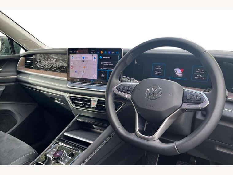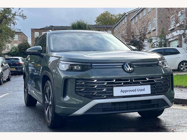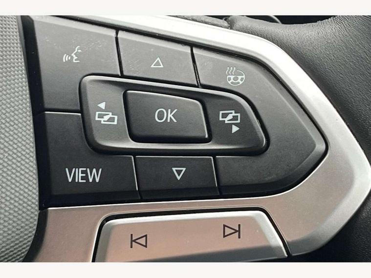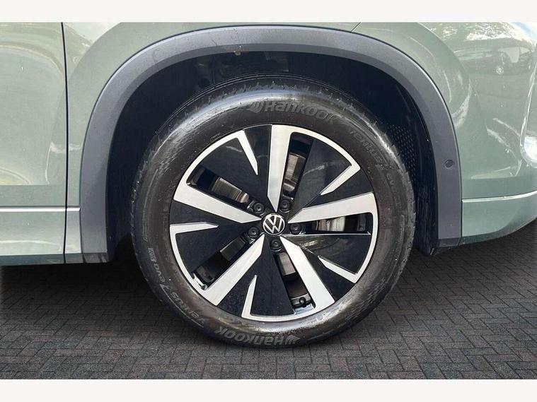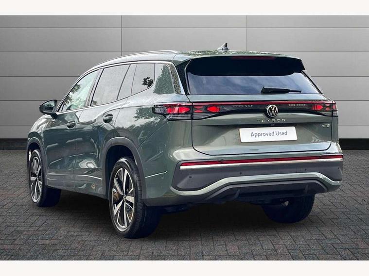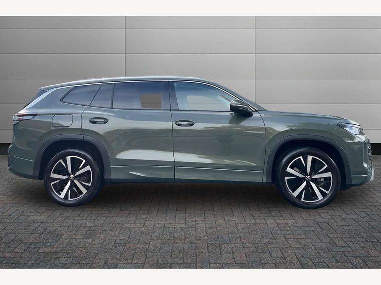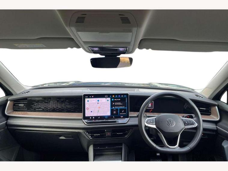 Adaptive cruise control (ACC), Digital Cockpit Pro - 10.25" high resolution dash display screen with customisable menus and information, Driver alert system, Driver attention monitoring system, Dynamic road sign display, E-Sim card for online connectivity, eCall emergency call system, Lane change system, Side assist, Rear traffic alert and Exit warning system, Multifunction front facing camera, Oncoming vehicle braking when turning including swerve support, Start/stop system with regenerative braking, Voice activation spoken voice commands for telephone and navigation system, Warning signal and warning light for front and rear seatbelts not fastened, Wireless App-Connect, Front wheel drive, Digital radio reception (DAB), Diversity antenna for FM reception, Auto dimming interior rear view mirror, Automatic headlight control system, Body colour door handles, Body coloured bumpers and air intake with chrome trim, Body-coloured exterior mirror housings, Chrome moldings on the side windows, Coming/leaving home lighting function, Dynamic headlight range control with dynamic cornering light, Exterior mirrors convex on the left and aspherical on the right, Heat insulating glass in side and rear windows, Illuminated Volkswagen logo rear with animation, Laminated safety glass from B-pillar backwards 90% tinted, Laminated safety glass winshield, heat insulating, LED 3rd brake light, LED separate signature day time running light, Puddle lights, Rain sensor windscreen wipers, Rear fog light on one side, reversing light on both sides, Rear side wing doors, Rear wiper, Reverse activated passenger's door mirror, Surround lighting with welcome light, Volkswagen logo in front, illuminated lighting animation with wake up/goodbye scenario and illuminated door handles, 10 colour interior ambient lighting, 12V outlet in center console rear and in luggage compartment, 3 rear headrests, 3 rear seat bench in 2nd row, backrest split folding with centre armrest and 2 seats in 3rd row of seats, Carpet mats, front and rear, Centre console with illuminated storage compartment with sliding cover and two drinks holders, Chrome elements on the mirror switch and power window switches and door pulls, Door and side trim panel featuring foam film with leatherette insert, Flat luggage compartment floor, Front centre armrest, Front scuff plates in alumium, ISOFIX anchors for child seats on outer rear seats and front passenger seat compatible with i-Size, Mechanical rear seat release, Power adjustable lumbar support in front, Single front passenger seat, Sports comfort seats in front, Sun visors with illuminated vanity mirrors, Comfort package with park assist pro - Tayron, Driver assistance package - Tayron, 3 Point seat belts in front with pretensioners, 3 point seatbelts in outer rear with ECE label, Autonomous emergency braking front assist with pedestrian and cyclist monitoring, Driver and front passenger airbag with front passenger airbag deactivation, Electronic parking brake with auto hold, First aid kit with warning triangle and safety vest, Front and rear curtain airbags, Front and rear side airbags, Front centre airbag, Front disc brakes, Hill start assist, Rear disc brakes, Two tone horn, Decorative material set Elegance with inserts in ornamental wood ash in the dashboard, Interior door handle in matte chrome,
