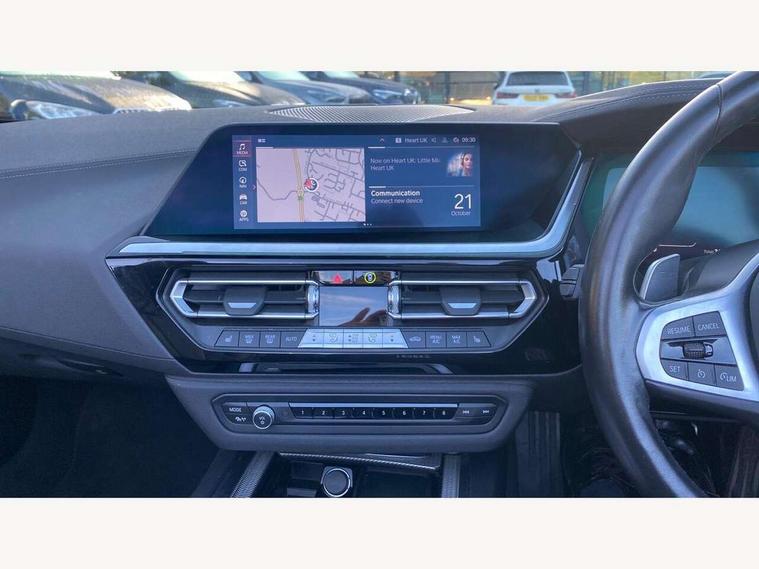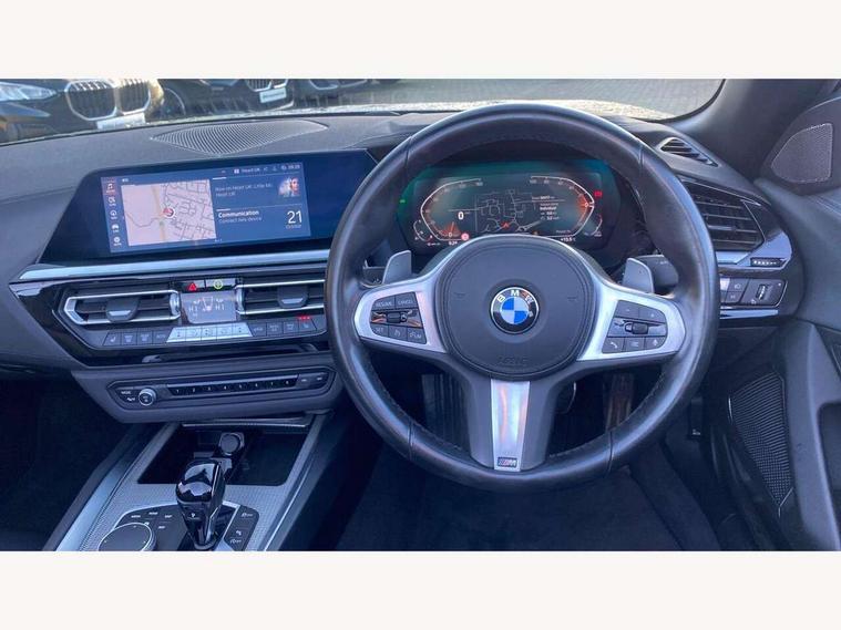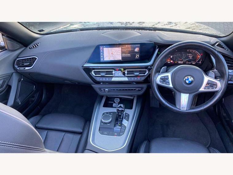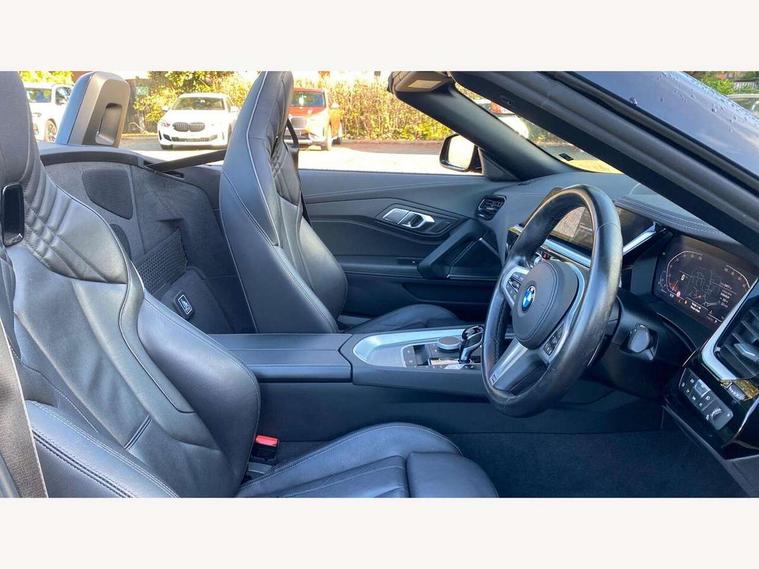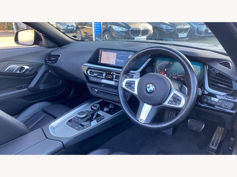 Active Guard, Auto start-stop, Bluetooth hands free telephone connection with USB audio interface + audio streaming, BMW ConnectedDrive online services, BMW Live Cockpit Professional with 10.25" high resolution instrument and control display, BMW Teleservices, Electric power steering, Fuel gauge, Instrument cluster, Oil sensor for level and grade, warning by check control system, Oil temperature gauge, Optimum shift indicator, Pull away assistant, Run flat indicator, Speedometer with mph readout, Tachometer, Variable sport steering, Double joint spring, Double VANOS, Drive performance control with ECO PRO comfort + sport mode, Eight speed steptronic sport transmission, with gearshift paddles, Electronic differential lock, Fuel tank breather system, High precision injection, M sport suspension, HiFi loudspeaker system, USB connection, Automatic headlight beam throw control with load dependent regulating reaction, dynamic compensation of braking dive and acceleration squat, Door sill finishers with M designation, Door sill strips, Dynamic braking lights comprising activated hazard warning flashers and third brake lights, Electric heated rear window, Exhaust tailpipe - split left and right, Exterior mirror housing finished in body colour, Exterior mirrors - electrically folding with anti-dazzle, Fingertip control / anti-trap function on electric window, Follow me home headlight function, Front and rear bumper system with replaceable deformation elements, Green tinted heat protection glazing, Heated windscreen washer jets, High gloss shadow line, Interior rear view electrochromatic mirror with automatic anti dazzle function, Kidney grille in mesh design, LED daytime driving lights, LED Indicators, LED rear lights, Lightweight engineering, M aerodynamic body kit, M Sport exterior styling, Matt black window recess finisher, Model logo, Tailgate release handle, Two stage brake force display, Visible VIN plate, Welcome lighting, Windscreen wipers with adjustable interval, 12V power socket in front storage compartment, Activation of interior lighting, Additional storage compartment - 4 lashing eyes, strap and storage net, Ambient lighting, Battery in luggage compartment, Child seat ISOFIX attachments for passenger seat, Cupholder, Driver and front passenger heated seats, Front and rear velour floor mats, Front headrests, Height adjustable mechanically and infinitely variable steering column, M sport leather steering wheel, M Sport seats for driver and passenger, Microfilter and active carbon filter, Sunvisors with vanity mirrors, Two zone automatic air conditioning, Vernasca leather upholstery, Connected package professional - Z4, 3 point front seat belts, Airbags - Front driver and passenger, front and side impact protection, Anti lock braking system (ABS) with brake assist, Automatic Stability Control (ASC), BMW emergency call, Brake energy regeneration, Braking readiness, Cornering brake control (CBC), Crash sensor activating central locking release, hazard warning lights, fuel cut off, interior lighting, safety battery terminal clamp and airbags, Deactivation of fuel pump in the event of a crash, Dry braking, Dynamic brake control, Dynamic stability control + (DSC+), Dynamic Traction Control - DTC, Electromechanical parking brake with automatic drive away release and auto hold function, Front and rear brake discs with interior ventilation, Plastic fuel tank, Pyrotechnic seat belt tensioners, Roll over protection, Seat belt force limiter, Seat belt stopper, Seat occupancy protection, Two tone horn, Tyre pressure monitoring with three level warning strategy, Centre lock switch, Closing system with central locking, Electronic vehicle immobiliser, Start/stop button with Comfort Go keyless engine start and auto Start/stop deactivation button, Thatcham cat 1 remote alarm, Sensatec dashboard, 18" Double spoke M light alloy wheels in bicolour ferric grey - style 798M, Reduced rolling resistance tyres, Tyre repair kit,