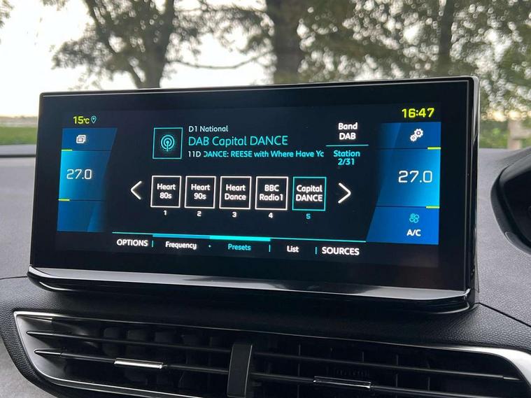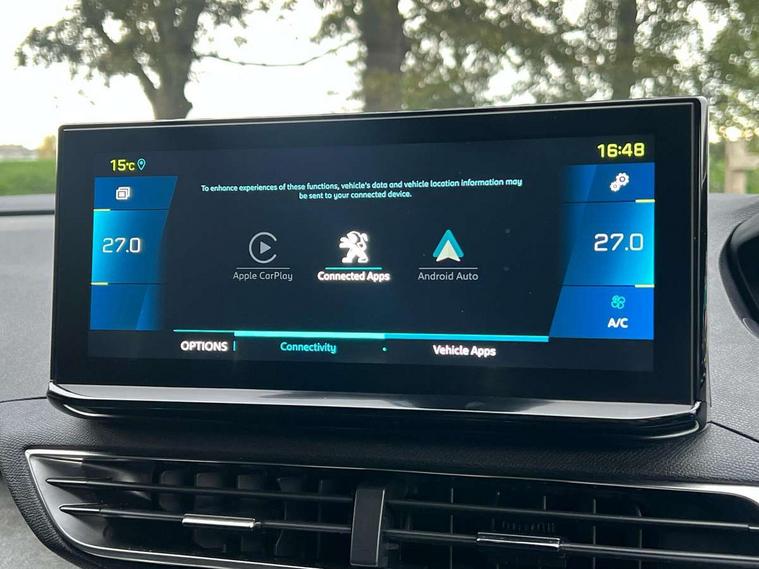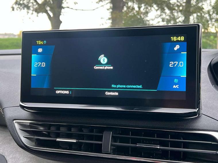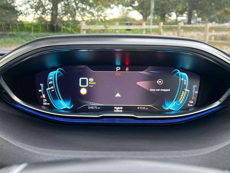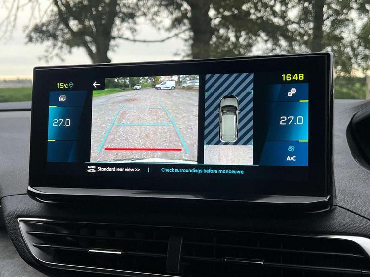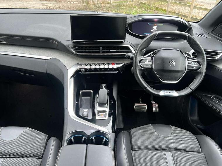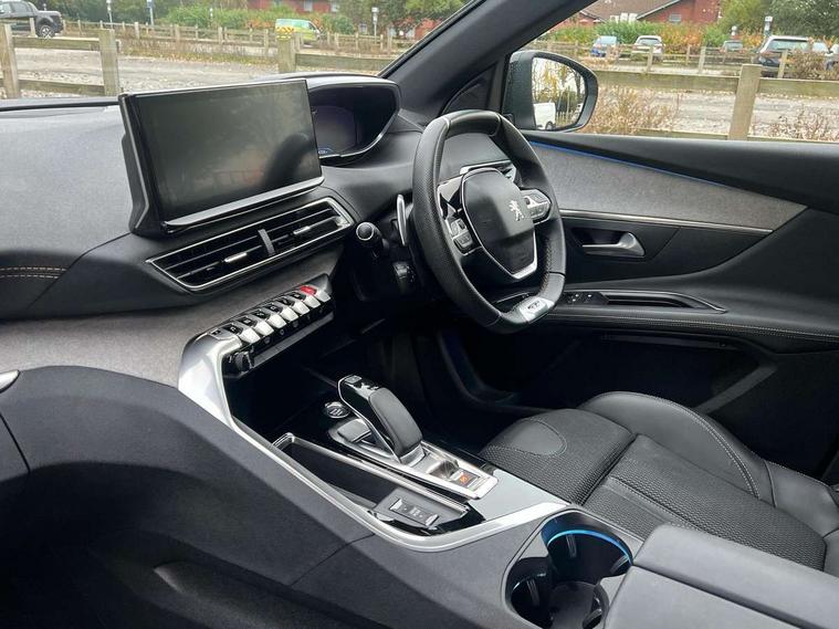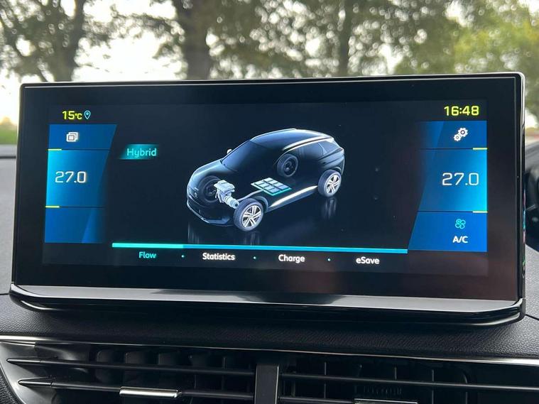 180 degree colour reversing camera, 3D connected navigation with 10" HD touchscreen, Bluetooth telephone facility, Drive mode selector (Electric, Hybrid, Sport, 4WD) & Hill Assist Descent Control, Driving Time Warning (DAA1), Emergency services call system, Extended traffic sign recognition, Exterior temperature indicator with ice warning, Mirror screen with mirror link, apple carplay and android auto, Multi function trip computer, PEUGEOT i-Cockpit with 10" high definition capacitive touchscreen, Peugeot i-cockpit with compact multi-function sports steering wheel, PEUGEOT i-Cockpit with configurable 12.3" Head-up digital instrument panel, PEUGEOT SOS and assistance, Rear passenger USB charging sockets (x2) (type A), Speed limit recognition and recommendation, Voice recognition, Deferred charging option, configurable in car or via My PEUGEOT App, Dynamic stability control and electronic anti-skid system, Mode 3 type 2 cable for wallbox charging, 6 speakers radio with mp3 compatible, DAB Digital radio, USB socket, Auto self levelling headlights, Automatic hazard light activation upon heavy brake application, Automatic triggered rear windscreen wiper in reverse gear, Black with chrome detailed front wing trim, Body colour door handles, Body colour rear roof spoiler with stainless steel edging trim, Body protectors (bottom of front and rear bumpers + wheel arches + protection at bottom of doors) in black, Dark tinted rear side windows + tailgate window, Diamond Black door mirror shells, Door mirror mounted LED courtesy floor lighting, Electric folding door mirrors with exterior courtesy LED lighting, Electric operated/heated door mirrors, Fog Mode, Front windscreen wiper with magic wash cleaning system, Full LED headlights with LED fog lights with static cornering function, Gloss black B and C pillar and aerodynamic deflector trim, Gloss black front bumper air scoops, Gloss black rear cluster connecting strip, Gloss black windscreen trim, Headlights left on audible warning, Heated rear windscreen with integrated antenna, HYBRID emblem on front wings and tailgate, LED daytime running lights, LED front indicator, LED rear number plate lighting, LED side indicator lights integrated into door mirrors, LED third brake light, One touch electric front/rear windows with pinch protection, Rear LED Peugeot signature 'Claw Effect' lights, Rear side wing doors, Stainless steel roof arches, Twin exhaust tailpipe, 1/3 to 2/3 split folding rear seats, 12V Sockets in dashboard, rear cabin and load area, 2 cupholders in front centre console, 2 cupholders in rear armrest, 2 x Rear reading spotlights, 2x Rear coat hooks, 3x Isofix child seat fittings in the front passenger and outer rear seats, 4 Grab handles retractable and damped, Aikinite stitching in armrest, gear lever and dashboard facia, Aluminium pedals, Blue ambient lighting for connecting zone, Blue ambient lighting to front door panels, central storage and cupholders, Blue ambient lighting to headup instrument panel, Cabin pre-conditioning, Centre front armrest with butterfly wing opening and illuminated storage compartment, Driver seat manual adjustment (longitudinal and back rest angle), Dual zone automatic climate control, Electric power steering with reach and rake adjustable steering column, Fixed boot floor with access to the charging cable storage box, Flocked front door pocket interior with blue ambient lighting, Flocked glovebox interior, Foldable front passenger seat with picnic table, Footwell illumination, Front interior light with 2 reading spotlights and rear interior light with timer, Front passenger seat manual adjustment (longitudinal and back rest angle), Front seat back map pockets, Gear shift indicator, Illuminated glovebox, Individual left and right controls in boot for seat folding, LED interior lighting in storage spaces and load area, LED roof interior lighting, Mistral floor mats with Aikinite contrast stitching, Mistral full grain perforated leather steering wheel with aikinite stitch detail and satin chrome 'GT' emblem, Rear bench seat with central armrest and ski hatch, Rear centre console ventilation system, Roof lining - Mistral black, Satin chrome dashboard trim, Satin chrome digital instrument panel and touchscreen trim, Satin chrome front door panel recess trim, Satin chrome interior door handles, Satin chrome scorpion's tail and toggle switch trim, Seatbelt not fastened audible and visual alert for front seats, Seatbelt unfastened on the move audible and visual alert for front and rear seats, Sunvisors with illuminated vanity mirrors, Drive assist plus pack - 3008, Driver sport pack - 3008 Auto, Safety plus pack - 3008 hybrid, Visibility pack - 3008 PHEV, 3x Rear three-point retractable seatbelts with force limiters in the outer rear seats, ABS (Anti-lock Braking System) with EBD (Electronic Brakeforce Distribution) and EBA (Emergency Braking Assistance), Acoustic vehicle alerting system, Adaptive driver and front passenger airbags with passenger airbag deactivation function, Driver and front passenger side airbags, Electric child locking functionality on rear windows and doors, Electric parking brake, Front and rear curtain airbags, Front optimised safety headrests and 3 x rear retractable headrests with height adjustable, Front three point retractable seatbelts with pre tensioners and force limiters, Front ventilated disc brakes and rear disc brakes, Hill start assist, Two tone horn, Automatic door locking when moving off, Electronic immobiliser, key operated exterior door lock from the left hand door, Perimetric and volumetric alarm with lift and tilt sensor, Peugeot Open and Go System, Remote control central locking with two plip keys, Puncture repair kit including compressor, sealant cartridge and towing eye,