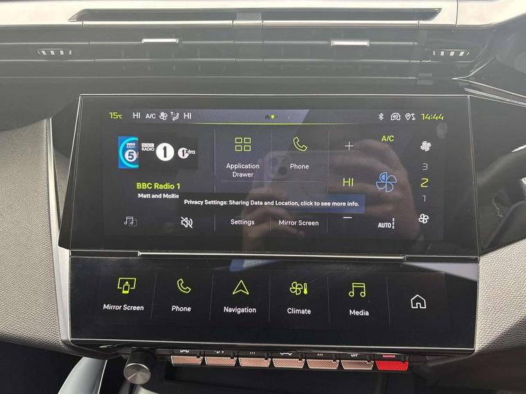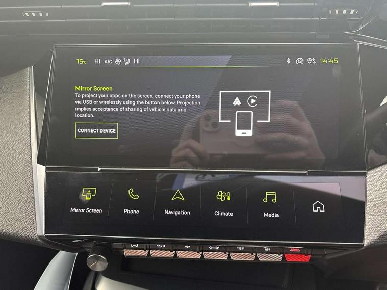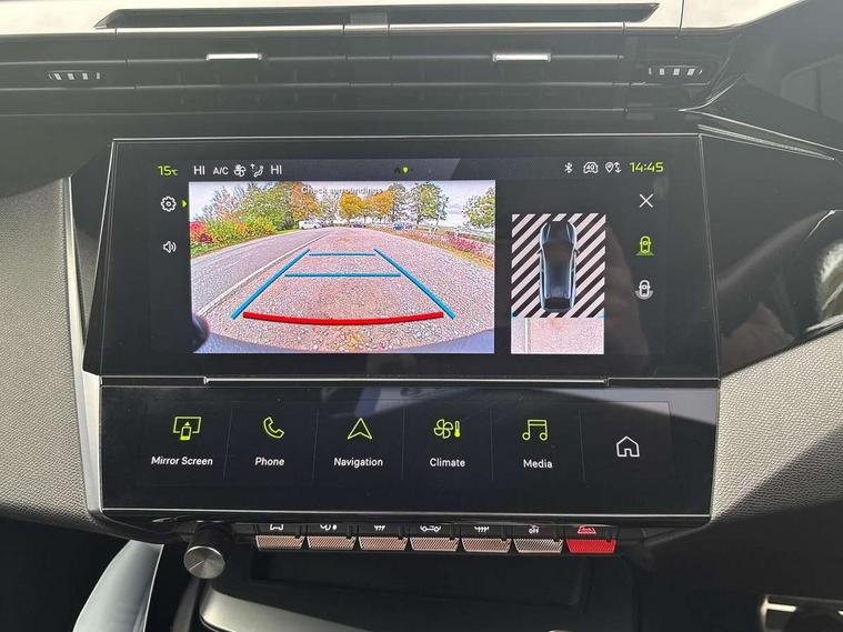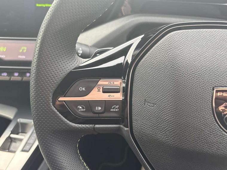 Bluetooth telephone facility, Compact automatic gearbox impulse selector, Driver attention warning, Driver's profile setting, Emergency call service, Extended traffic sign recognition, Exterior temperature indicator with ice warning, Front and rear parking sensors, Intelligent speed adaptation, Lane keep assist, Multi driving mode selector - Eco / Normal / Sport mode selector, Multi function trip computer, PEUGEOT i-Cockpit with 10.0" high definition (HD) capacitive touchscreen, PEUGEOT i-Cockpit with compact steering wheel, PEUGEOT i-Connect Advanced - Over the air updates, PEUGEOT SOS and assistance, Push button start, Speed limit recognition and recommendation, Wifi and voice recognition, Wireless apple car play/android Auto, 2x USB sockets in front, 2x USB sockets in rear, DAB Digital radio, PEUGEOT i-Cockpit with PEUGEOT configurable i-Toggles, 3rd brake light, 408 Model designation badges on front and rear, Acoustic laminated front windows, Acoustic tinted windscreen, Automatic hazard light activation upon heavy brake application, Body colour door handles, Body colour rear spoiler, Dark tinted rear side and tailgate windows, Electric, heated, and power folding door mirrors, Electrochrome rear view mirror, Front and rear electric windows with one touch/anti pinch, Front grille with vertical body colour stamping, Full LED matrix headlights with automatic adjustment, Gloss black finish B pillar, Gloss black rear cluster connecting strip, High beam assist, LED rear number plate lights, LED side indicator lights integrated into door mirrors, Lower body and wheel arch "SUV style" protection, Nera black door mirrors, PEUGEOT shield on front doors, PEUGEOT signature LED front daytime running lights incorporating indicators, Rear bumper grained black, Rear full LED 3D Peugeot new claw effect lights with sequential welcome sequence upon unlocking the vehicle, Rear Hybrid badging, Rear reversing lights, Rear side wing doors, Roof mounted 'fin' style antenna, Smart electric tailgate, Tailgate with heated rear windscreen and wiper blade, 1/3 2/3 'Magic Flat' folding rear seats with controls located in the boot, 2x 12V sockets, 3 seat bench in 2nd row, 4 Grab handles retractable and damped, 8 Colour personalisable ambient lighting, Aluminium door sills and boot sill, Aluminium pedals and footrest, Arch design central console with storage, Central front armrest with storage compartment, Dual Zone automatic air conditioning with AQS 3, Dynamic front seats, Electric power steering with reach and rake adjustable steering column, Front central console with two cup holders, Gloss black waistbelt (window weather strips), Glovebox with LED lighting, Heated steering wheel, High air vent system, Luggage cover, Luxury carpet mats with adamite green stitching, Multifunction full grain leather steering wheel with admite green stitching & GT badging, Piano keys toggle switches to access main functions, Roof lining - Mistral black, Seatbelt unfastened on the move audible and visual alert for front and rear seats, Single front passenger seat, Ski hatch with central rear armrest with cup holder, Steering wheel mounted gearshift paddles, Sunvisor with concealable vanity mirrors with LED lighting, Driver Sport Pack - 408, Visibility pack - 408, 2x Isofix child seat fitting on outer rear seats, 3x3 point rear seat belts, ABS + EBD + EBA, Active safety brake with night function/cyclists/pedestrians, Adaptive driver and front passenger airbags with passenger airbag deactivation function, Advanced emergency braking system (Video - AEB) includes Radar, Automatic post collision braking, Child locks on rear doors, Driver/front passenger side airbags, Electronic parking brake, ESP, Front and outer rear seatbelts with pyrotechnic pretensioners, Front and rear curtain airbags, Front and rear disc brakes, Front optimised safety headrests and rear retractable headrests (x3), height adjustable, Front three point retractable seatbelts with force limiters, Hill start assist, Tyre under inflation monitoring and indirect detection with visual indicator and warning sound, 2x keys, Acoustic vehicle alert system (AVAS), Anti-theft wheel bolts, Automatic door locking when moving off, Deadlocking system, Electronic code immobiliser, Locking wheel nuts, Peugeot open and go system includes keyless entry with proximity locking and unlocking, Thatcham cat. 1 alarm with anti lift sensor, 19" Graphite diamond cut alloy wheels in Onyx black gloss, Alloy wheel 'star' centre cap,