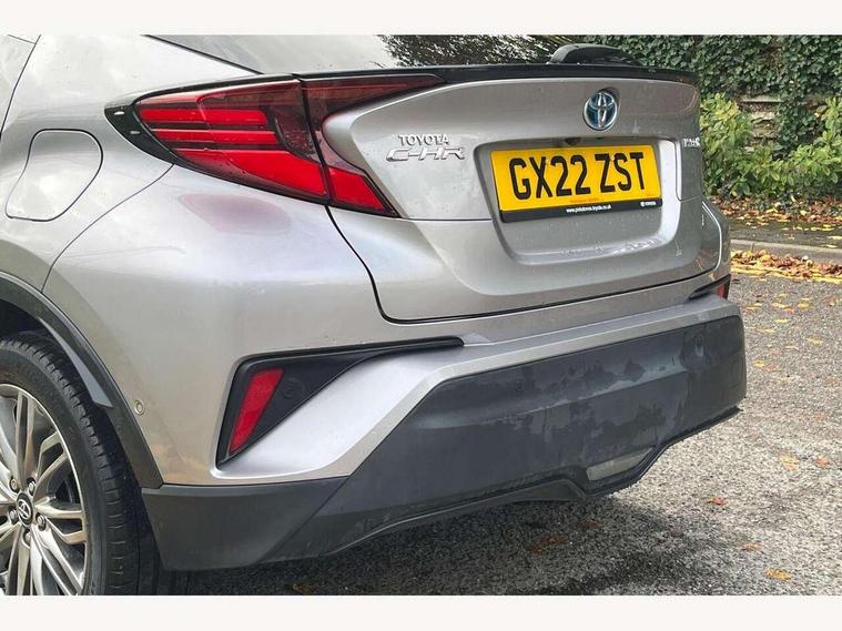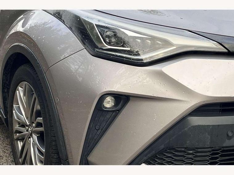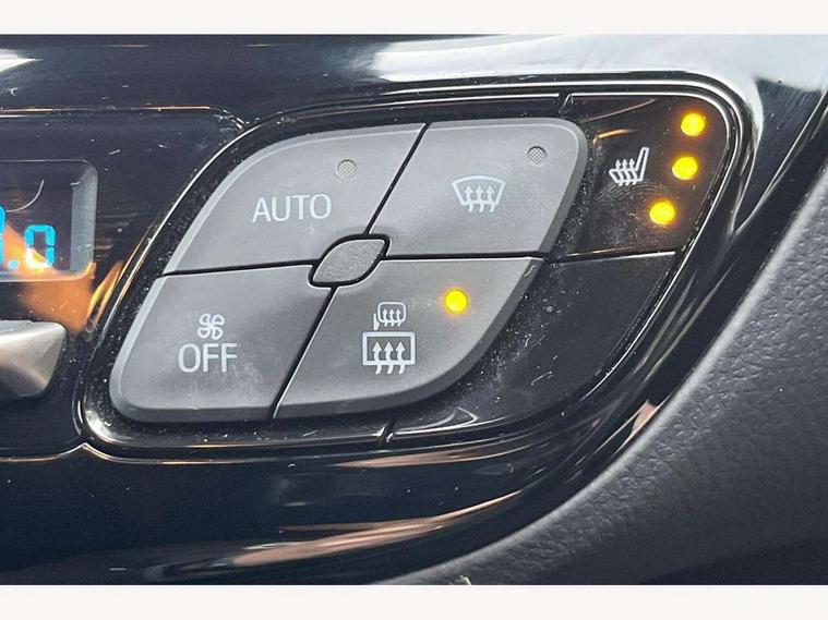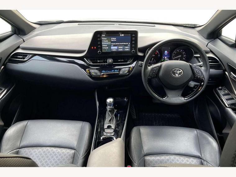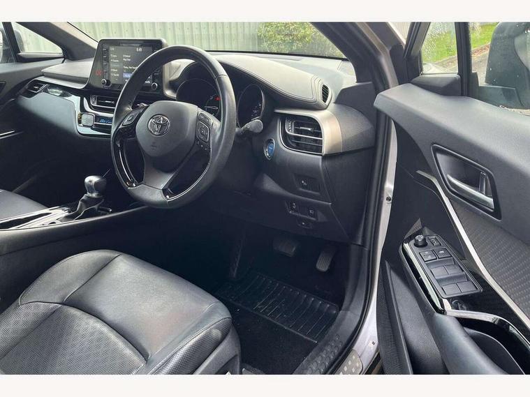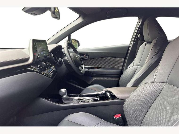 4.2" coloured TFT screen for multi-information display, Adaptive cruise control, Bluetooth connectivity, E-call, Electric power steering, Hybrid system indicator, Lane departure alert with steering control, Remote boot door release in cabin, Remote boot door release in key, Reversing camera, Road sign assist - RSA, Simple Intelligent parking assist, Touch 2 Go navigation system, Trip computer, Voice recognition, Vehicle Stability Control (VSC), 6 speakers, AM/FM radio, DAB Radio (Digital Audio Broadcasting), Toyota touch 2 multimedia system with 8" display, USB connector, Wi-fi connectivity, Adaptive front light system, Adaptive LED Headlights, Anti-jam protection on power windows, Auto high beam, Auto up and down function on all power windows, Automatic headlight levelling, Automatic headlights, Automatic headlights cut-off, Black and body coloured rear bumper, Black upper front grille, Body colour door handles, Body colour door mirrors, Body colour front spoiler lip, Body coloured front bumper, Boot door release with push button, Electric heated door mirrors, Follow me home headlights, Front and rear power windows, Honeycomb lower front grille, LED daytime running lights, LED fog lights, LED front light guide, LED High mounted stop light, LED rear brake lights, LED rear combination lights, Noise reduction layer on front windows and windscreen, Power adjustable door mirrors, Privacy glass, Rain sensor, Rear sequential indicators, Rear side wing doors, Rear spoiler, Rear tailgate, Rear window defogger, Rear window wiper, Shark fin antenna, UV-filter on driver and passenger windows, UV-filter on rear windows, 12v power outlet - front, 3 rear headrests, 3 seat bench in 2nd row, 3 spoke leather steering wheel, 60/40 split folding rear seat, Adjustable rear headrests, Adjustable speed limiter switch on steering wheel, Assist grips front and centre pillar, Audio and telephone switches on steering wheel, Black front door assist grips, Blue ambient lighting on front cup holders, Blue ambient lighting on front doors, Boot light, Chrome interior door handles, Driver and front passenger personal light, Driver and front passenger Whiplash Injury Lessening seats, Driver and passenger seatback pockets, Dual zone automatic air conditioning, Floor mats, Front cupholders, Front head restraints, Front sports seats, Glovebox with internal light, Hard tonneau cover, Heated driver and front passenger seats, Heated steering wheel, Hooks for luggage holding net, Humidifying Nanoe air purifier, Illuminated entry system, Isofix attachments on outer rear seats, Leather gearshift, Light on driver sun visor, Light on passenger sun visor, Manual telescopic steering wheel, Manual tilt steering wheel, Microphone on front personal light, Mirror on driver sun visor, Mirror on passenger sun visor, Multimedia switches on steering wheel, Pollen filter, Power adjustable lumbar support on driver seat, Power tilting cushion on driver seat, Shopping bag hooks, Single front passenger seat, Slow opening on lower glovebox, Voice recognition switch on steering wheel, Leather pack - C-HR, Tech with parking sensor pack - C-HR, 16 Disk front wheel brake, 3x3 point rear seatbelts, ABS+EBD+Brake assist, Electronic parking brake, Front and rear seatbelt reminder, Front passenger airbag on/off switch, Hill start assist control (HAC), Pre collision system with pedestrian detection, Pre-tensioners and force limiters, Rear door child safety locks, SRS Airbags - Driver + Front passenger, front side, front and rear curtain and driver's knee airbags, Toyota safety sense, Tyre pressure monitoring system, Acoustic vehicle alert system (AVAS), Glass-breaking alarm sensors, Immobiliser, Intrusion alarm, Intrusion sensor, Motion sensor alarm, Power door locks, Power passenger window lock, Remote central locking, Black lower dashboard, Dark brown upper dashboard, Piano black console, Silver deco line on upper dashboard, Tyre repair kit,