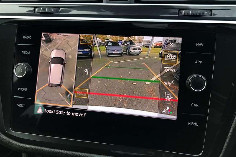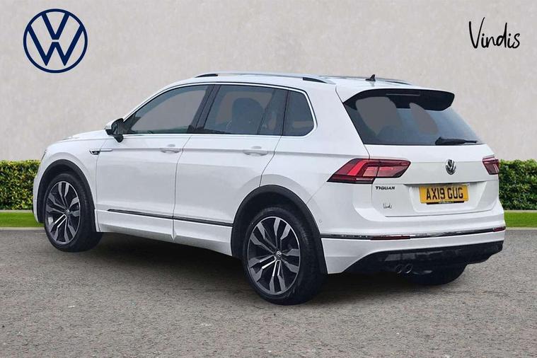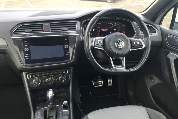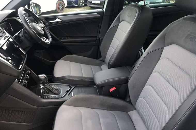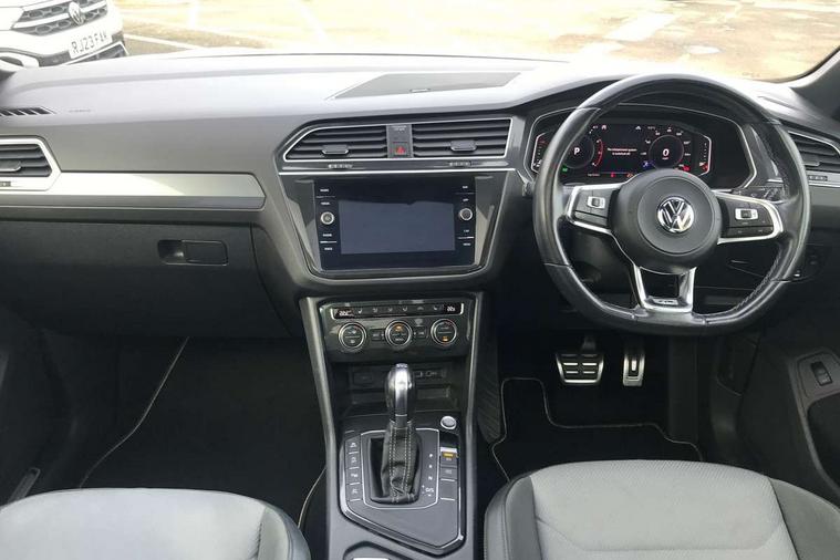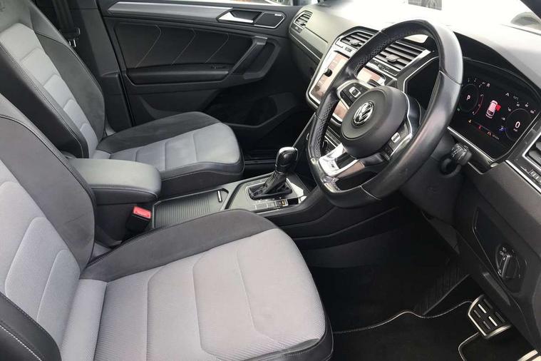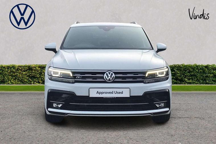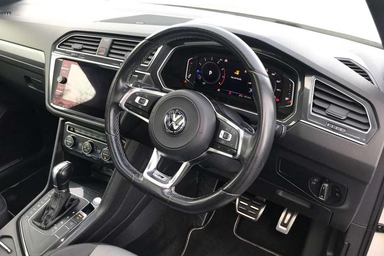 Active information display, Adaptive cruise control, App-Connect, Bluetooth phone integration system, Distance control assist, Driver profile selection, Fatigue detection system, Front assist, radar sensor controlled distance monitor, city emergency braking + predictive pedestrian protection, Instrument cluster, Lane assist, Low washer fluid warning light, Multifunction colour display, Outside temperature display, Progressive power assisted steering, Service interval indicator, Speed limiter, Warning lights, XDS electronic differential lock, 2x USB sockets in front, DAB Digital radio, MP3 compatible single CD player, SD card slot, 3D effect LED rear lights, Auto dimming interior mirror, Automatic activation of hazard warning lights, Body colour door handles, Body colour door mirrors, Body colour rear spoiler, Body colour side skirt, Body coloured bumpers, Chrome side window surrounds, Chrome trimmed radiator grille, Coming/leaving home lighting function, Dusk sensor + auto driving lights, Electric folding door mirrors, Electric heated + adjustable door mirrors, Electric panoramic sunroof with sunblind, Front and rear electric windows, Heated front washer nozzles, Heated rear window, LED headlights with dynamic light assist daytime running lights and cornering front fog lights, LED rear lights, Piano black rear diffuser, R Line body kit, R Line side sills, Rain sensor windscreen wipers, Rear windscreen washer and wiper with interval delay, Side skirts and rear bumper with chrome insert, Silver roof rails, Silver under body guard, Tinted windows (B pillar backwards), Windscreen wipers/ intermittent wipe + 4 position delay, 12V Accessory socket in centre console, 3 rear headrests, 3 zone climate control, 4 load lashing points, 40:20:40 split folding rear seats, Bag hook in luggage compartment, Black headlining, Driver + front passenger lumbar support, Foldable passenger seatback, Front + rear carpet mats, Front centre armrest with 12v socket, Front centre armrest with storage + rear 2 air vents + cupholders, Front seatback folding tables, Height/reach adjust steering wheel, Illuminated driver/passenger vanity mirrors, Illuminated scuff plates, Instrument lighting white adjustable panel illumination, Interior light with delay, Isofix Preparation 2 Rear child seats, Leather gear knob, Leather multifunction steering wheel with tiptronic control, Load through provision with 2 cupholders when folded, Lockable cooled glovebox, Luggage compartment lighting, Luggage compartment side storage, Map pockets on front seats, Passenger seat height adjuster, Rear cupholders, Removable luggage cover, Sliding/reclining rear seats, Stainless steel pedals, Storage compartment in driver's door, Storage compartment in passenger's door, Storage compartment in rear doors, Storage tray on dashboard, Sunglasses storage, Unique R Line door sill protectors, Variable boot floor, Ambient lighting pack - Tiguan, 3 rear 3 point seatbelts, ABS+EBD+Brake assist, Active bonnet, Active pedestrian safety system, Curtain airbags, Driver/Front Passenger airbags, Driver/Passenger whiplash optimised head restraints, Drivers knee airbag, DTC - Drag torque control, Electronic parking brake with auto hold, ESP with EDL + ASR, First aid kit, Front and rear brake disc, Front assist including city emergency braking, Front side airbags, Front ventilated brake discs, Head airbag system, Height adjustable front 3 point seatbelts + pretensioners, Hill hold control, Passenger airbag deactivate switch, Passenger knee airbag, Pre crash system, Rear side airbags, Seatbelt warning lamp and buzzer, Two tone horn, Warning triangle, Alarm with interior protection, Electronic engine immobiliser, Remote central locking with 2 remote folding keys, Aluminium decorative inserts, Chrome door trim inserts, 20" Suzuka alloy wheels + anti theft wheel bolts, Steel space saver spare wheel,