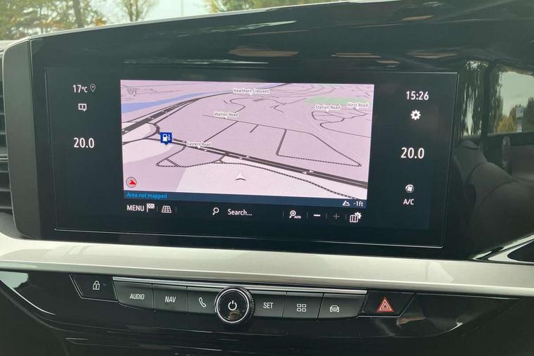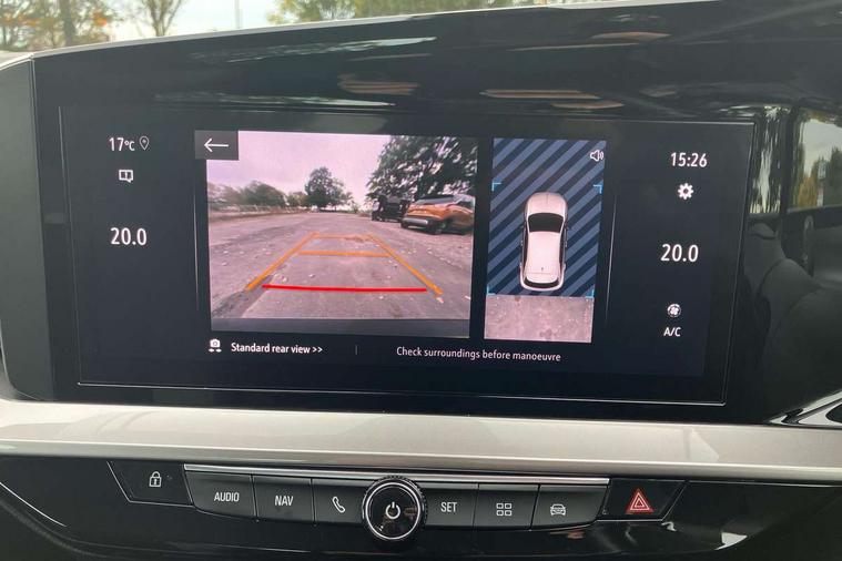 Automatic adaptive cruise control, Driver drowsiness alert system, Engine start/stop button, Front and rear parking distance sensors, Front camera system, Lane positioning assist, Lights on audible warning, Multi function trip computer, Panoramic rear view camera, Power assisted speed sensitive steering, Side blind spot alert and flank guard, Smartphone integration compatible with Apple CarPlay and Android Auto, Speed sign recognition, Start/stop system, Vauxhall connect, 8 speed automatic transmission, Chassis drive line front wheel drive, Front chassis equipment, Rear chassis equipment, Standard chassis suspension system ride handling, Bluetooth A2DP audio streaming, Flexible Roof Mounted Radio Aerial, Front USB connection, Mobile phone portal - bluetooth connect, vehicle microphone, handsfree calls, SMS read out and reply, phone book access, Multimedia Navi pro infotainment with satellite nav, 10" colour touchscreen, 6 speakers, DAB radio, 12" instrument panel, Apple carplay/Android auto, Steering wheel mounted controls, Two rear USB sockets, Adaptive brake lights, Automatic lighting control with tunnel detection, Automatically dimming anti dazzle rear view mirror, Black door mirror housings, Black rear spoiler, Body colour door handles, Body colour front and rear bumpers, Chrome effect skid plates, Chrome effect upper window moulding, Electrically adjustable, heated and folding door mirrors, Electrically operated front and rear windows with safety auto reverse and one touch up/down facility, Hazard warning lights, Heated rear window+rear wash/wipe, High beam assist, LED daytime running lights, LED front fog lamps, LED side repeat indicators, LED tail lights, Manual headlamp level control, Rear foglight, Rear wiper, Reversing light, Solar heat absorbing windscreen and windows, Two speed rain-sensitive windscreen wipers with variable intermittent wipe, Windscreen and side window demist vents, 12V Accessory socket, 3 spoke flat bottomed leather steering wheel with satin chrome bezel, 4 speed fan with illuminated controls, 6 way manual adjustable driver fore/aft, up/down with reclining seatback, 6 way manual adjustable front passenger fore/aft, up/down with reclining seatback, Air recirculation system, Cabin particulate filter - removes dust, airborne particles and pollen, Centre console with two cup holders at front and one in rear, Chrome effect interior door handles, Door pockets with two litre capacity, Driver and passenger seat pocket, Driver and passenger sun visors with vanity mirror, Electronic climate control (ECC), Fabric/leather upholstery with jet black fabric side bolsters, Four adjustable facia vents, Four load restraint lashing eyes, Front centre armrest with storage, Front map reading lights, Front seat back storage pockets, Fully carpeted load area, Heated front seats, Height adjustable front/rear head restraints, Illuminated load area, Interior courtesy light, Interior tailgate handle, Luggage compartment cover, Luggage compartment lighting, Reach + rake adjustable steering column, Twin gas assisted tailgate struts, 2x Isofix child seat fitting on outer rear seats, 3x3 point rear seat belts, Anti-lock braking system (ABS), Automatic emergency city braking, Child proof locks on rear doors, Cornering brake control, Deactivation switch for front passenger front and side impact airbags, Drag torque control, Driver and front passenger airbags, front seat side impact airbags, full size curtain airbags, Electronic brake force distribution, Electronic Stability Programme (ESP), Emergency brake assist, Forward collision alert at all speed, Hill start assist, Inertia reel lap and diagonal seatbelts for all seats, Seatbelt unfastened audible warning and warning light, Straight line stability control, Traction control, Tyre pressure monitoring system, Electronically protected audio equipment, Freewheeling door locks, Immobiliser, Key left in ignition audible warning, Keyless entry and start, Locking wheel nuts, Remote control central locking, Remote control ultrasonic security alarm system, Visible vehicle identification number, Atlantis black trim inserts of front doors, Black facia with silver trim insert, Instrument panel bar in Light Gravel, 17" bi colour alloy wheels,
