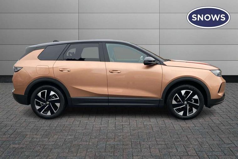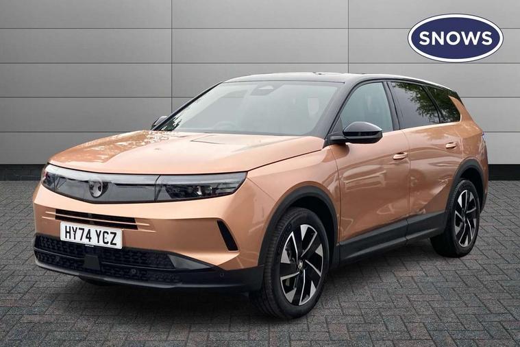 10" digital instrument cluster, 16" multimedia navigation with wireless Apple Carplay/Android auto, 360 degree surround camera, Anticipated intelligent speed adaptation, Central facia display with digital clock, outside air temperature and audio information, Curve speed adaptation, Digital fuel gauge with low fuel level warning light, Digital rev counter, Digital speedometer, Digital water temperature gauge with warning light, Drive mode selector (Eco, Normal, Sport), Driver information - Total mileage, service indicator, oil life, Electric power steering, Front and rear parking sensors, In-crash braking, Intelli-HUD (Extended heads up display), IntelliDrive 2.0 - Semi autonomous lane change assist with lane positioning assist, rear cross traffic alert and side long range blind spot detection, Lights on audible warning, Multi function trip computer - Trip odometer, vehicle range, average speed and fuel economy, instantaneous fuel economy and driving time, Power tailgate, Speed sign recognition, Start/stop system, Vauxhall connect including Emergency call (SOS e-call) and Breakdown call (b-call), Wireless charger for mobile devices, Anti-roll bars, Compound crank rear suspension with coil springs and gas pressure dampers, Independent decoupled MacPherson strut front suspension with gas pressure dampers and coil springs, Stability control, 2 rear USB-C sockets, AM/FM and DAB radio, Premium focal Hifi sound system includes 10 speakers and subwoofer, Radio controls on steering wheel, Acoustic windscreen, Auto headlights, Automatic headlight beam levelling, Black door mirrors, Black grained wheel arch claddings, Body colour door handles, Dark tinted rear windows, Electrically defrosting driver and passenger door mirrors, Electrochromic frameless rear view mirror, Front illuminated griffin, Front wiper system spraying directly from wipers, Grained lower door claddings, Heated windscreen, High gloss black front and rear bumpers, High gloss black roof spoiler, Illuminated rear Vauxhall, IntelliLux LED headlights with 3D illuminated vizor, welcome and farewell animation, 11 driving modes and adaptive high beam assist, Intermittent rear window wash/wipe, LED 3rd brake light, LED daytime running lights, LED tail lights, Magic wash, Panoramic opening glass roof, Power folding door mirrors with memory function and reverse mode, Power front and rear windows, Rain sensor windscreen wipers, Rear side wing doors, Rear wipers with camera cleaning, Two speed windscreen wipers with variable intermittent wipe, Welcome lighting, 10 way manual adjustable heated front seats with AGR approved with pneumatic lumbar support, cushion nose extension and power tilt, 2 cupholders with slider, 3 12V plugs, 3 bench rear seats in 2nd row, 3 spoke leather effect steering wheel with dimpling, 7 colour ambient lighting, Automatic air conditioning, Centre console armrest, Chrome effect interior door handles, Clean cabin system, Cooled glove box and central console storage with LED light, Dashboard and door panels polychromatic ambient lighting, Dual zone electronic climate control, Front door storage with 1.5 litre capacity, Front seat back storage pockets, Fully carpeted luggage area, Heated steering wheel, Height adjustable headrests, Illuminated vanity mirrors, Intelli air, Paddle shifts, Pixel storage, Rear armrest, Rear centre seat head restraint, Rear clothes hooks on B pillar trims, Single passenger seat, Sunglasses Box, Touch sensitive front and rear reading lights, Anti-lock braking system (ABS), Automatic emergency braking system, Child proof locks on rear doors, Deactivation switch for front passenger front and side impact airbags, Deflation detection system, Driver airbag, Dual seatbelt pretensioners on front seats, EBD - Electronic brakeforce distribution, Electronic parking brake, Front and rear ventilated discs, Front passenger airbag, Front seat side impact airbags, Full-size curtain airbags for driver and front passenger, Hill assist control, Hydraulic Brake Assist (HBA), Inertia reel lap and diagonal seatbelts for all seats, Load limiters on outer rear seatbelt retractors, Pretensioners on outer rear seatbelt retractors, Rear 3 point ISOFIX, Smart seatbelt reminder for front and rear seats, Tyre pressure monitoring system, Central locking, Deadlocking system, Electronically protected audio equipment, Engine deadlock immobiliser, Keyless entry and start, Locking wheel nuts, Remote security alarm system, Mistral dark ambience, 19" Diamond cut alloy wheels, Tyre repair kit,