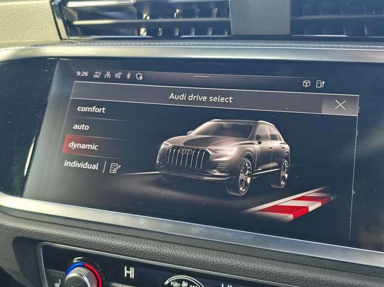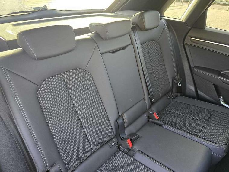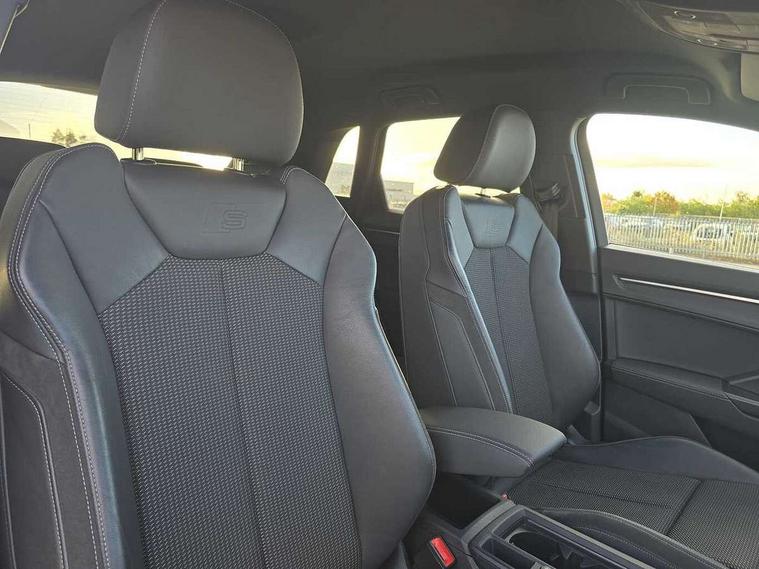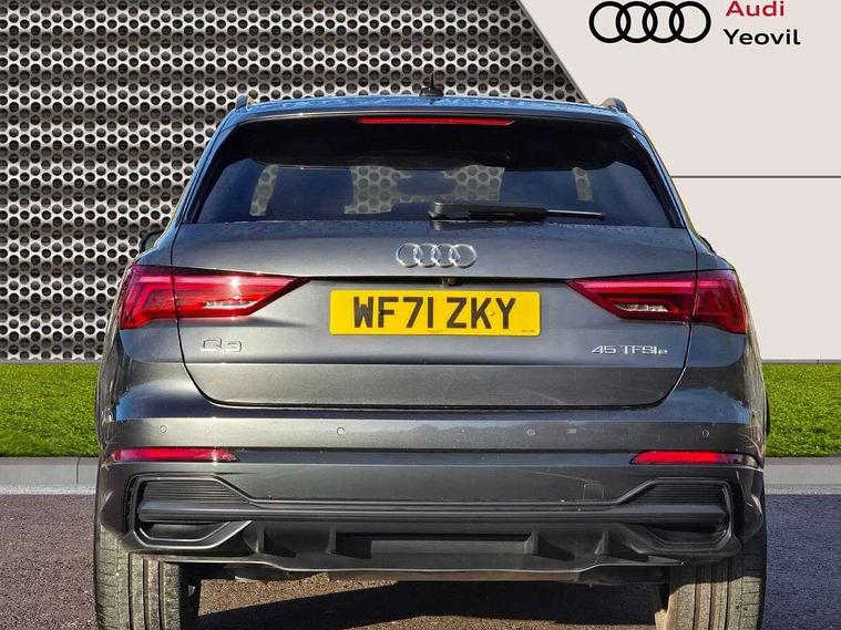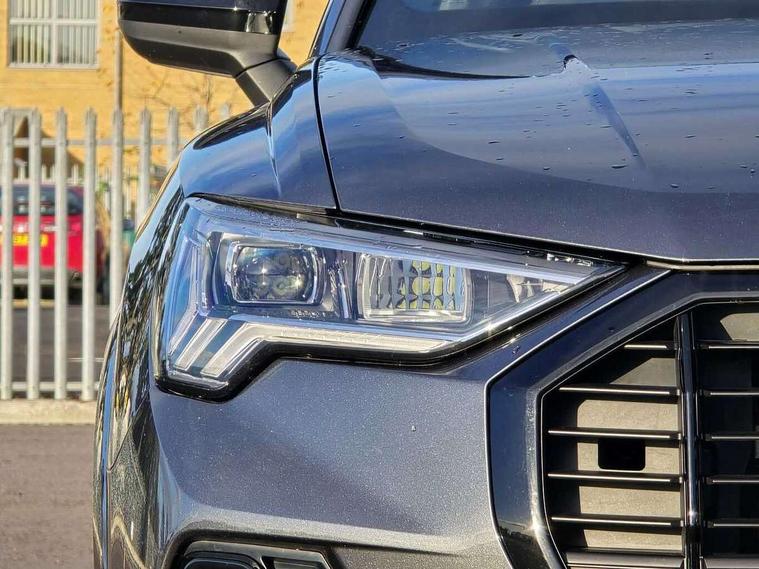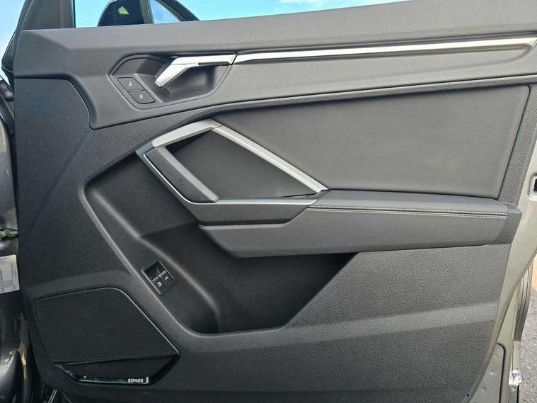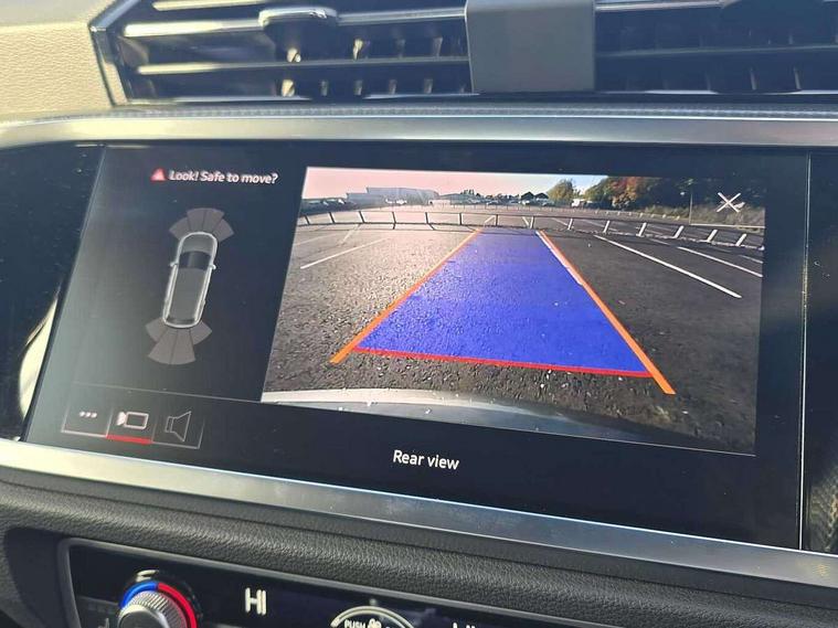 Amazon alexa Integration, Audi connect safety and service (e-call), Audi drive select, Audi lane departure warning, Audi Virtual Cockpit - 10.25" display, Bluetooth interface, Camera based traffic sign recognition, MMI Navigation Plus with high resolution 10.1 inch touchscreen colour display, Power operated tailgate, Progressive steering, Service interval indicator, Smartphone interface includes wireless Apple carplay/Android Auto, Start stop system with recuperation, Voice control system with natural language interaction, 3 pin 10 amp domestic charging cable, Type 2 mode 3 32 amp charging cable, Type 2 socket for AC charging, 2 USB-C ports with charge and data functions, 6 passive loudspeakers, DAB digital radio module, Acoustic windscreen, Auto dimming frameless rear view mirror, Black roof rails, Electrically folding, adjustable and heated door mirrors with integrated LED side indicators and kerb view function for passenger side, Front and rear electric windows, Front fog lights, Grille vertical bars in aluminium silver/Matt, High gloss black finish B and C pillars, LED headlights with LED daytime running lights and dynamic rear indicator, LED rear lights, Privacy glass dark tinted rear and rear-side windows (from B-pillar backwards), Rain and light sensors, Rear diffuser strip in matt titanium black, S line bumpers in contrasting Manhattan grey, 12V socket in rear centre console, 40:20:40 folding with manual adjustment for 60:40 forwards/backwards position and backrest angle, Adjustable rear seat bench/backrest with centre armrest and cupholder, Black cloth headlining, Dual zone electronic climate control, Front and rear black floor mats with contrast stitching in rock grey, Front and rear headrests, Front and rear roof module including reading lights, Front centre armrest, Glove compartment lighting, Height and reach adjustable steering wheel, Illuminated door sill trims with S logo, ISOFIX child seat mounting for front passenger with airbag deactivation and outer rear seat including top tether attachment point for outer rear seats, Luggage compartment light, Manual front seats with height adjustment, Perforated leather gearknob, Stainless steel luggage compartment sill finisher, Stainless steel pedals, Black styling pack - Q3, Non smoking pack - Q3, 3x3 point rear seatbelts, 6 airbags - Driver, front passenger, curtain and side windows, Audi pre-sense front with pedestrain and cyclist recognition, Electrically operated child locks on rear doors, Electromechanical parking brake, Electronic stabilisation control including ABS, ASR and EDL, Hill descent control, Hill hold assist, Pre sense basic, Seatbelt monitoring, Tyre pressure warning, Warning triangle and first aid kit, Anti theft alarm, Anti theft wheel bolts, Remote central locking, Detail dashboard around MMI touch colour display in glass look, black with surround in aluminium look, Leatherette door armrest, Piano black inlay,